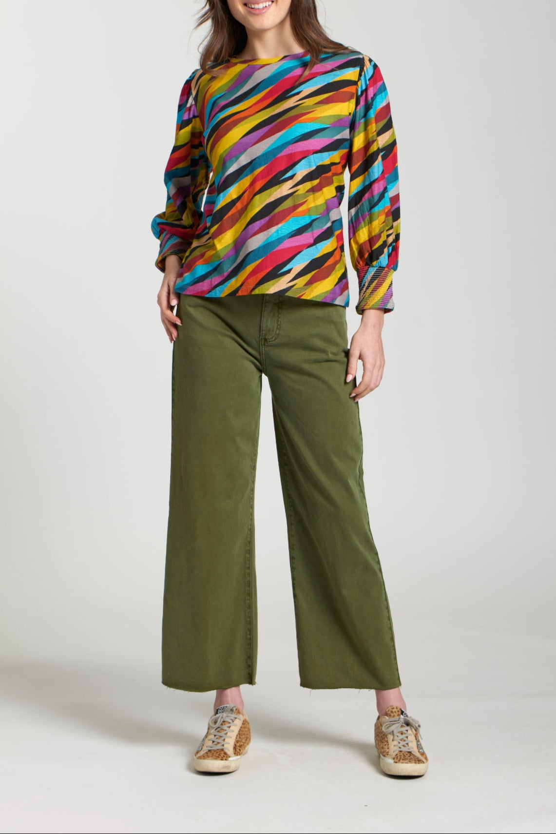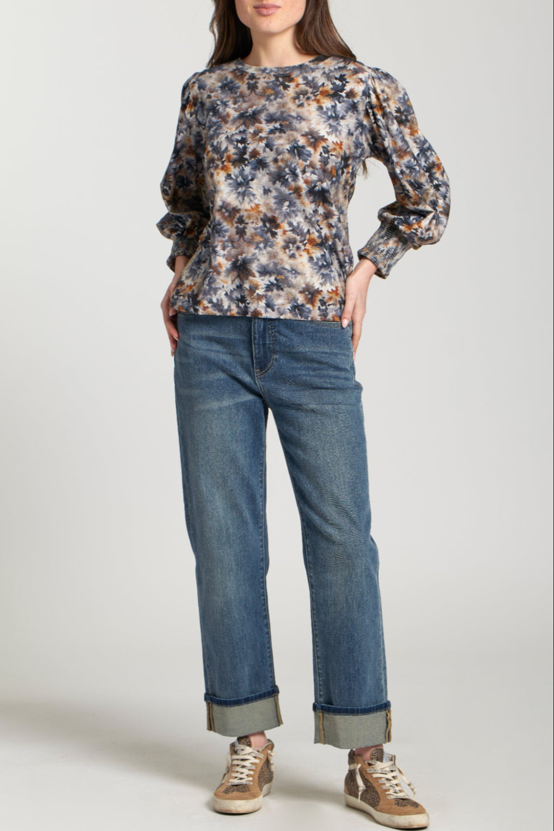 Add a touch of boho charm to your wardrobe with this Peasant Sleeve Tee with Smocked Cuff. Designed with soft, flowy fabric, this tee features relaxed peasant sleeves that create a graceful silhouette. The smocked cuffs offer a comfortable, snug fit while adding texture and subtle detail to the sleeves. Perfect for pairing with jeans, skirts, or shorts, this versatile tee effortlessly blends comfort and style for a laid-back, feminine look.
