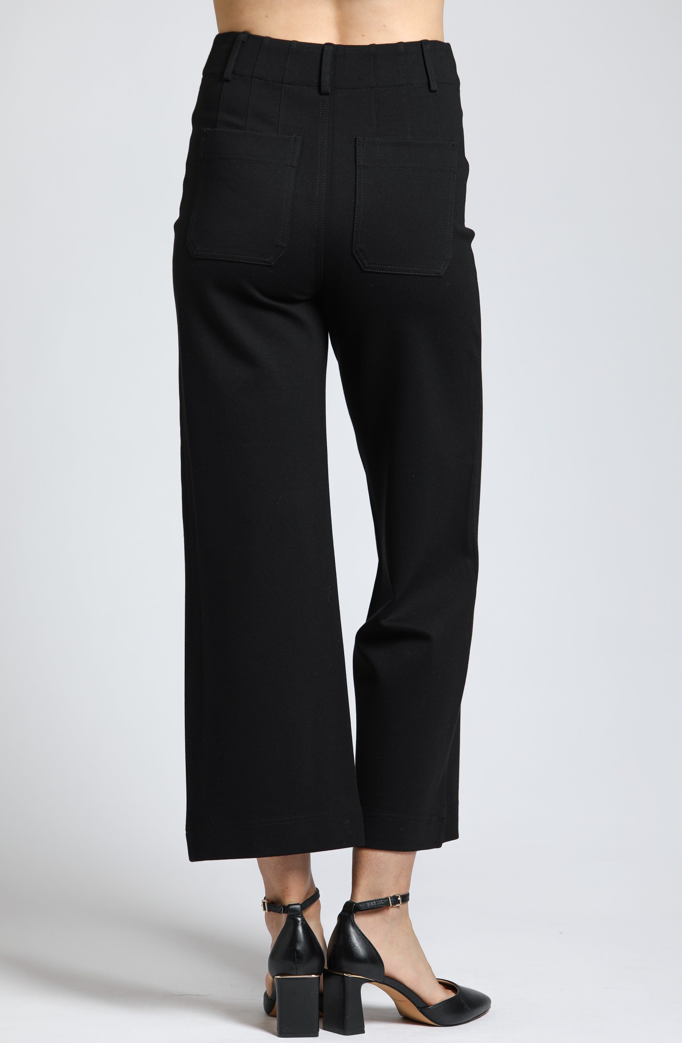 Ponte Cropped Wide Leg Pant With Patch Pocket - Black
