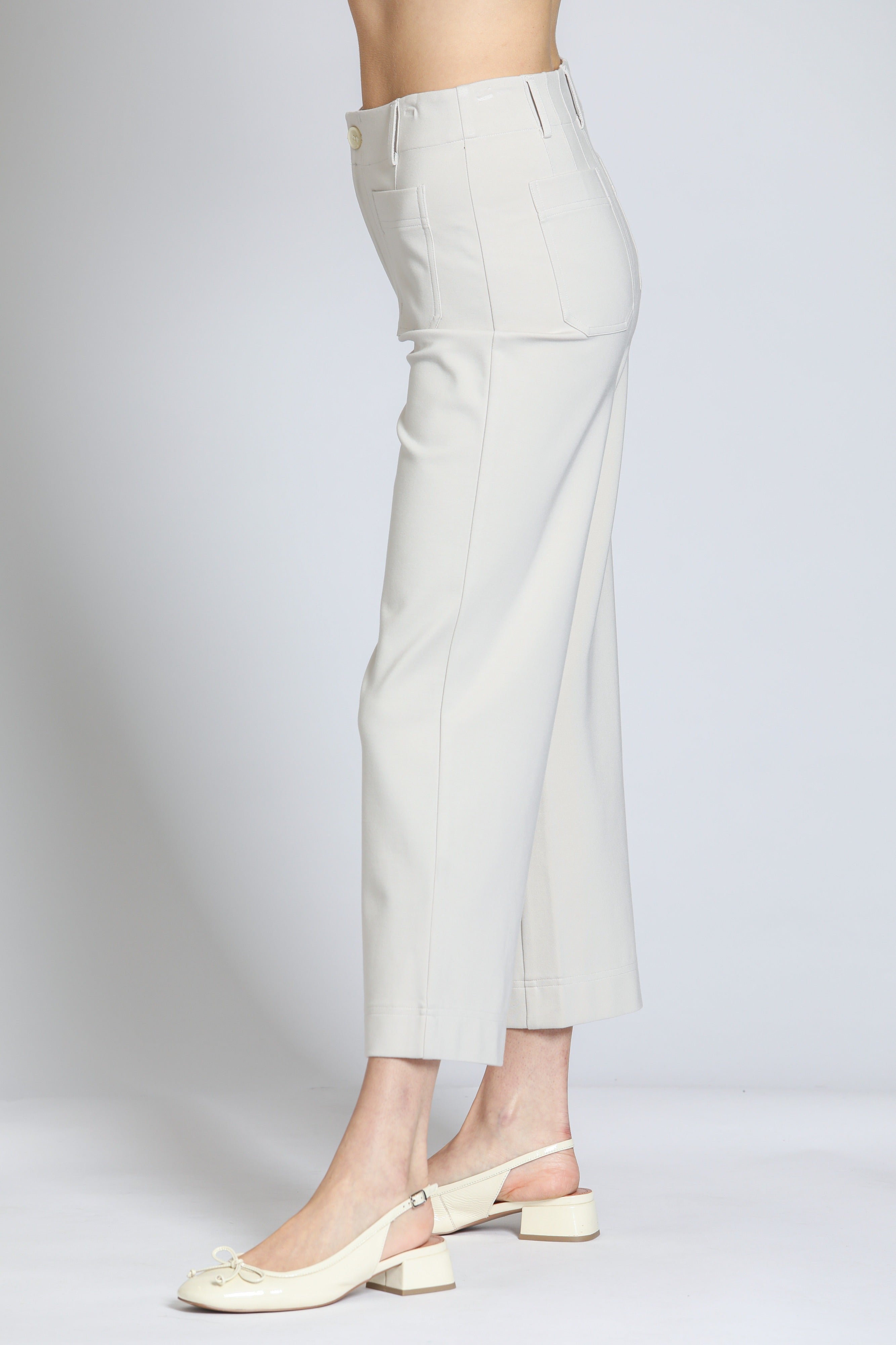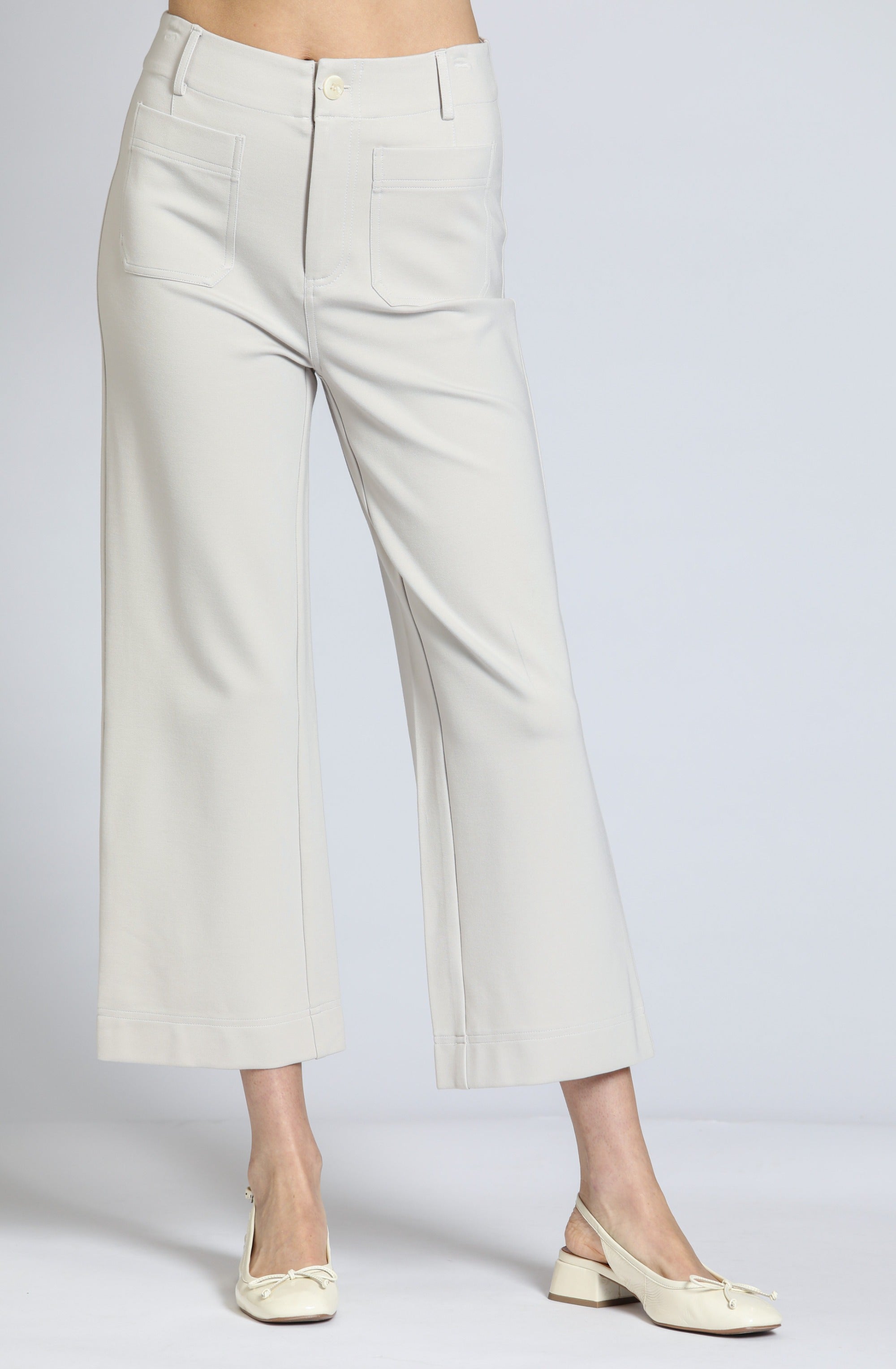 Ponte Cropped Wide Leg Pant With Patch Pocket - Champagne