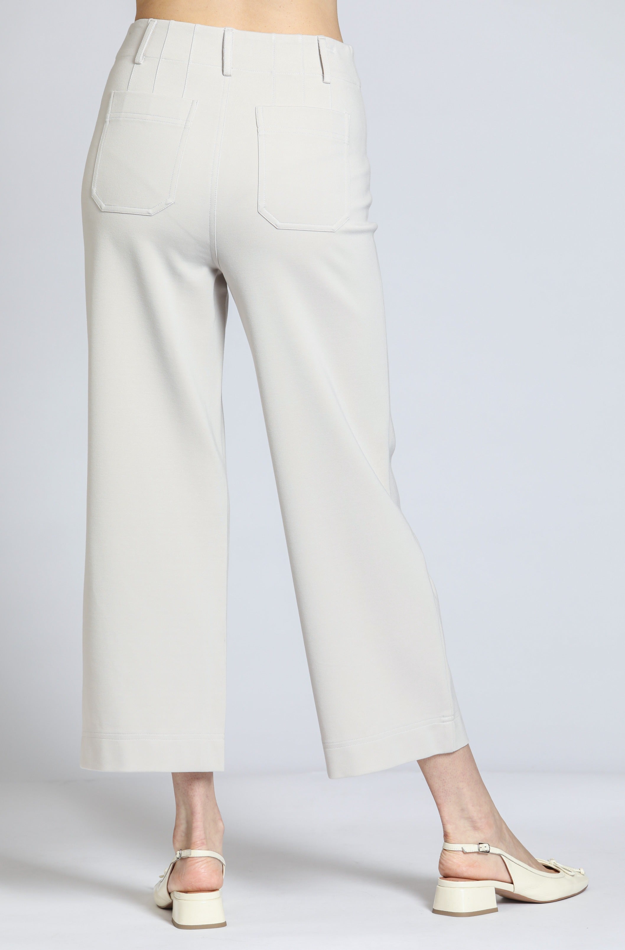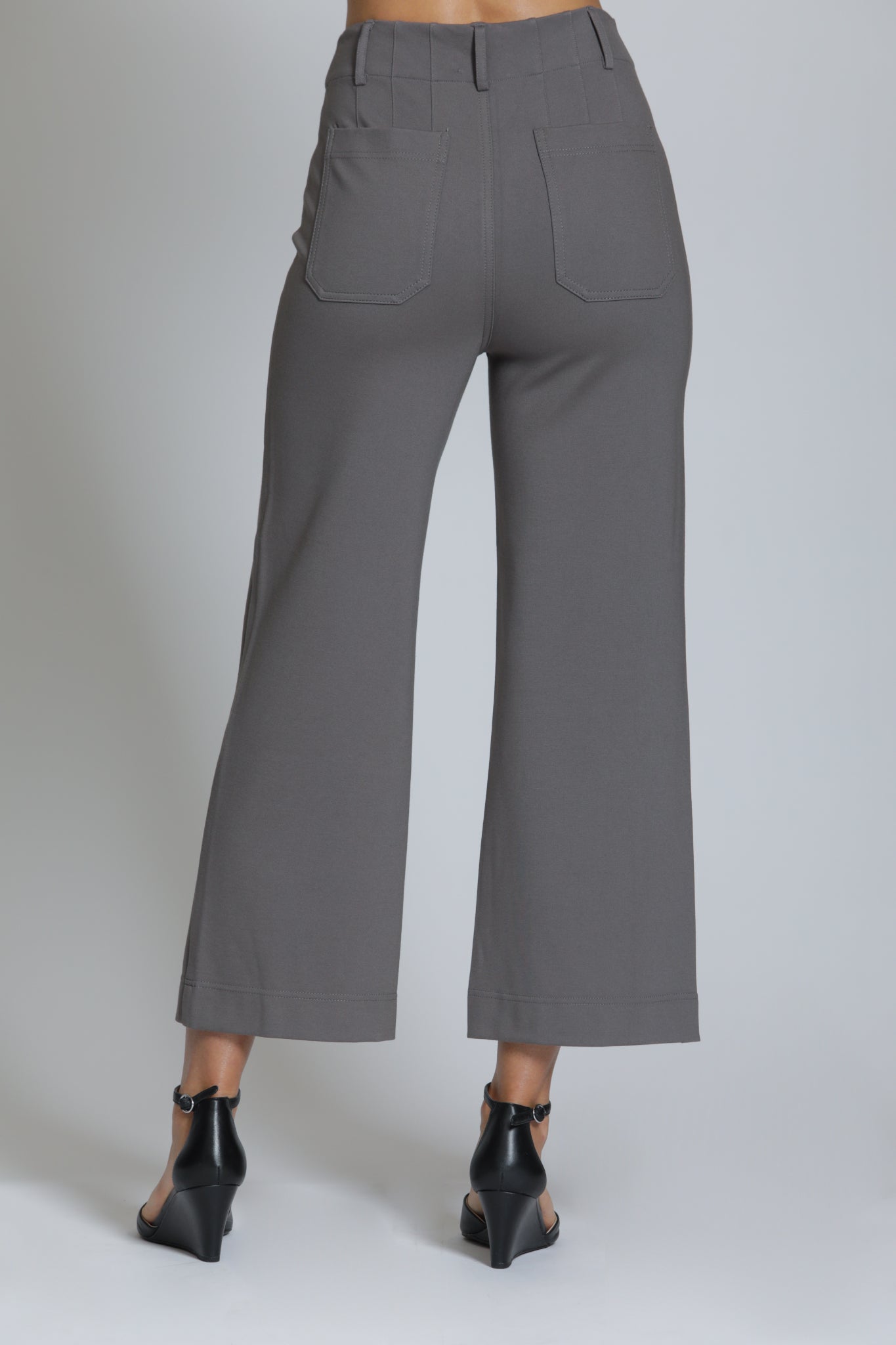 Ponte Cropped Wide Leg Pant With Patch Pocket - Pebble