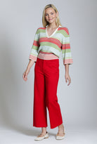 Ponte Cropped Wide Leg Pant With Patch Pocket - Red