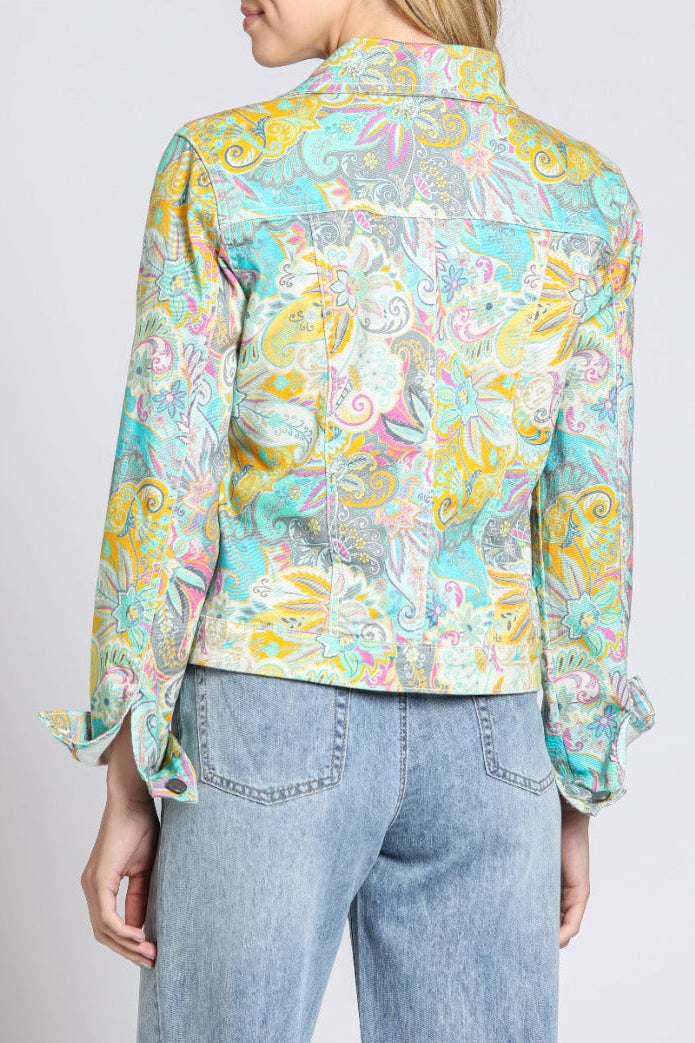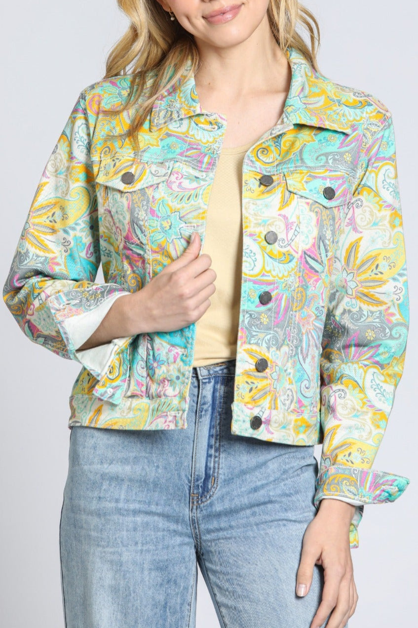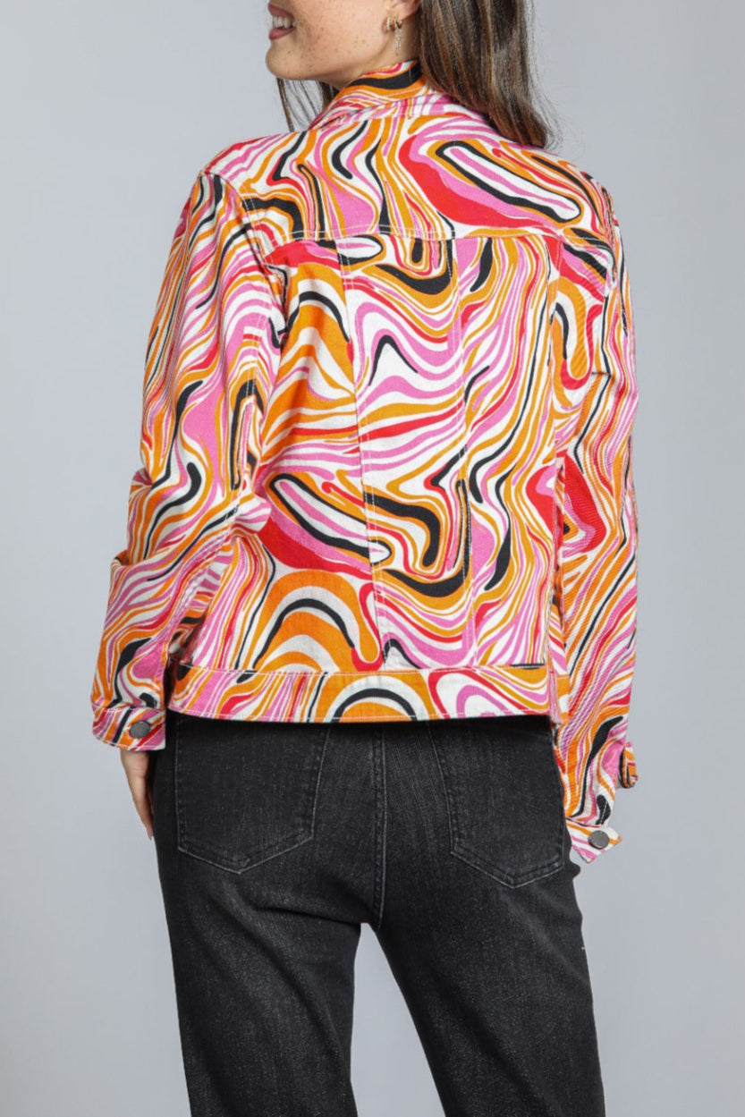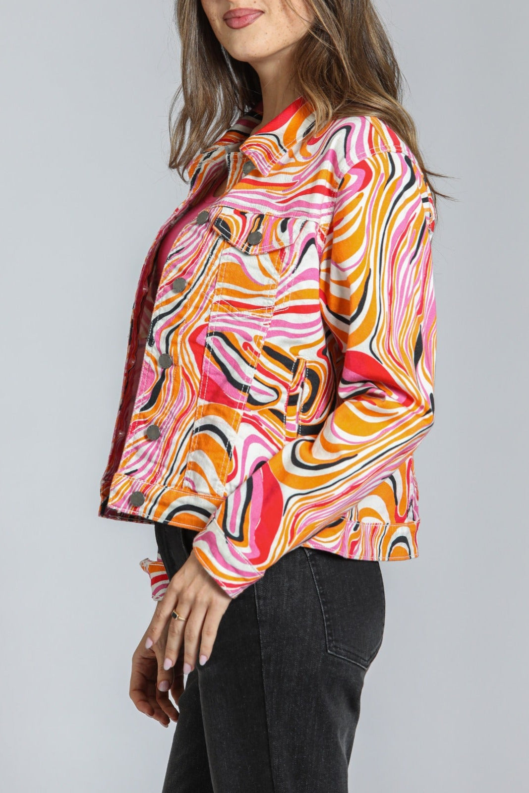 This ain't your average denim jacket. It's a classic silhouette reimagined with a mesmerizing multicolor print that takes denim to a whole new level. Made with soft, comfy denim, it's the perfect way to add a touch of artistic flair to your everyday outfit.