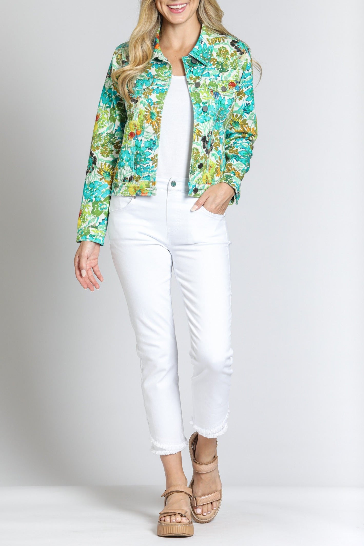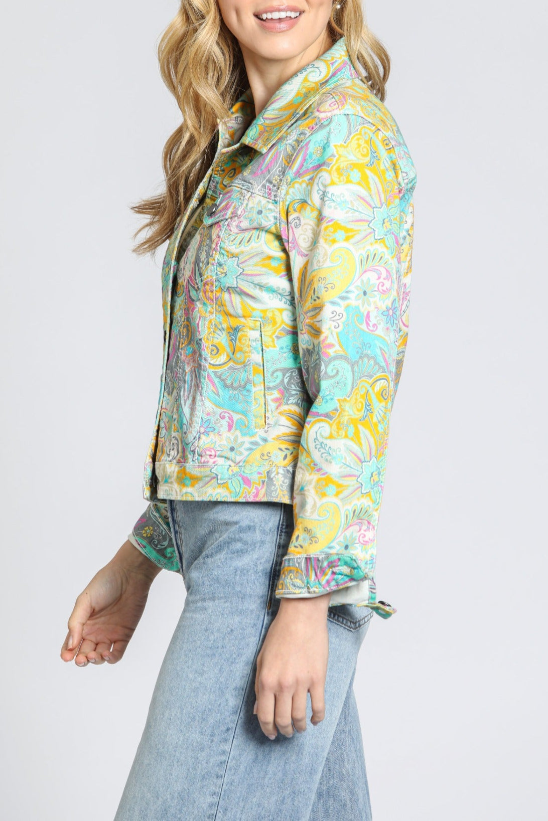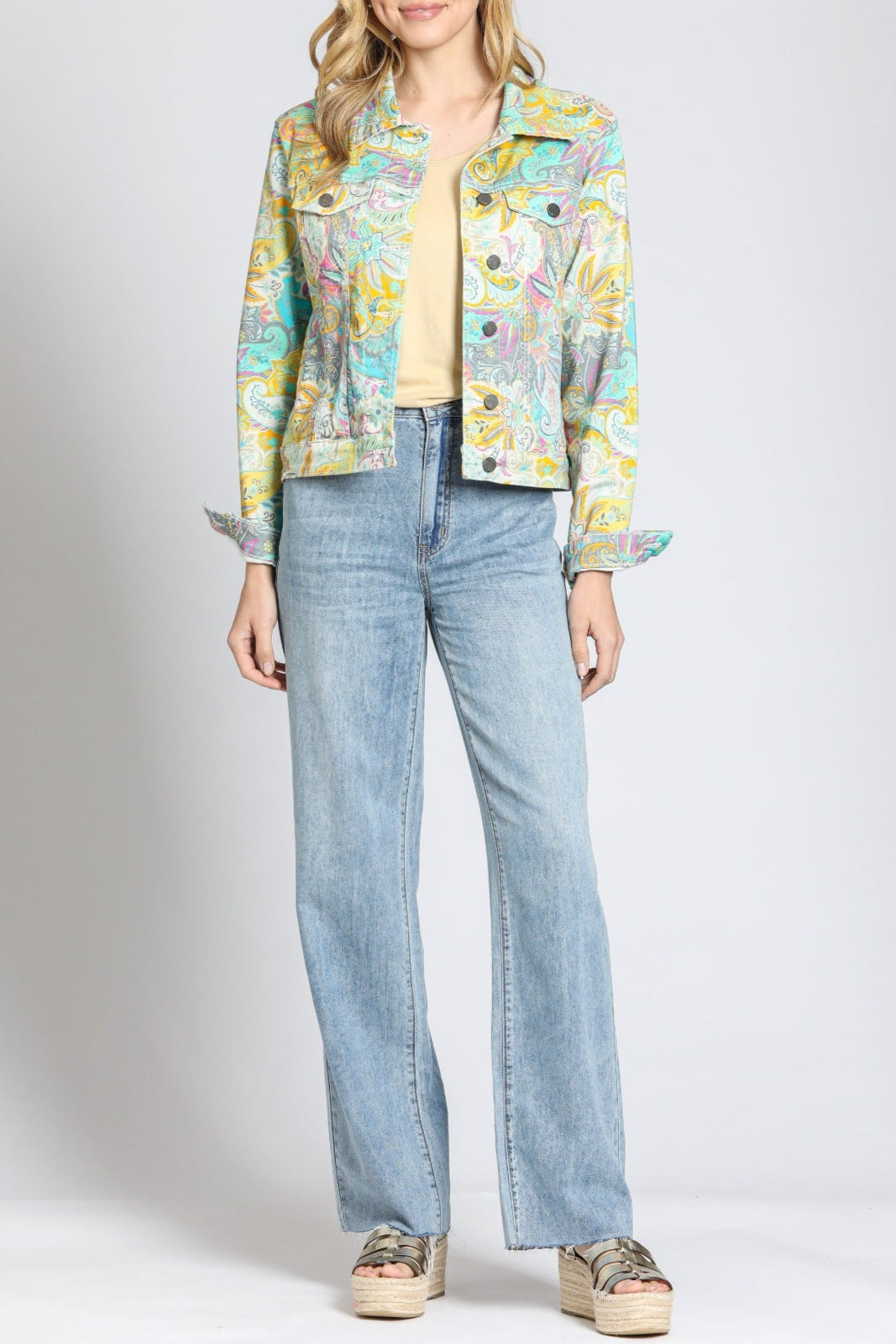 This ain't your average denim jacket. It's a classic silhouette reimagined with a mesmerizing multicolor print that takes denim to a whole new level. Made with soft, comfy denim, it's the perfect way to add a touch of artistic flair to your everyday outfit.