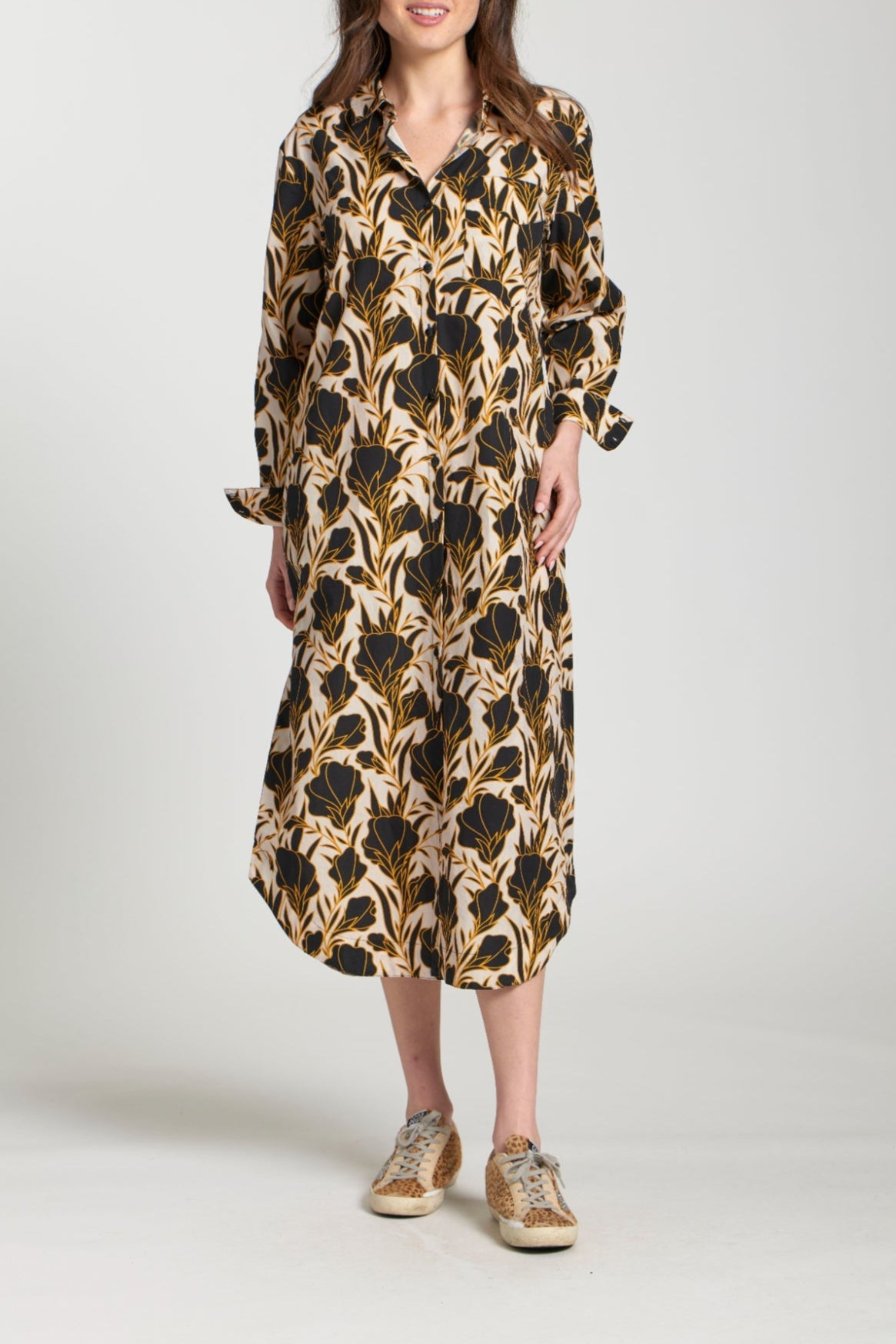 Make a bold statement with the Printed Shirt Dress, a perfect blend of style and comfort. Featuring eye-catching prints and a classic button-down silhouette, this dress offers a polished yet playful look. The lightweight fabric and relaxed fit make it ideal for any occasion, from casual outings to semi-formal events. Pair it with sneakers for a laid-back vibe or heels for a more refined finish.