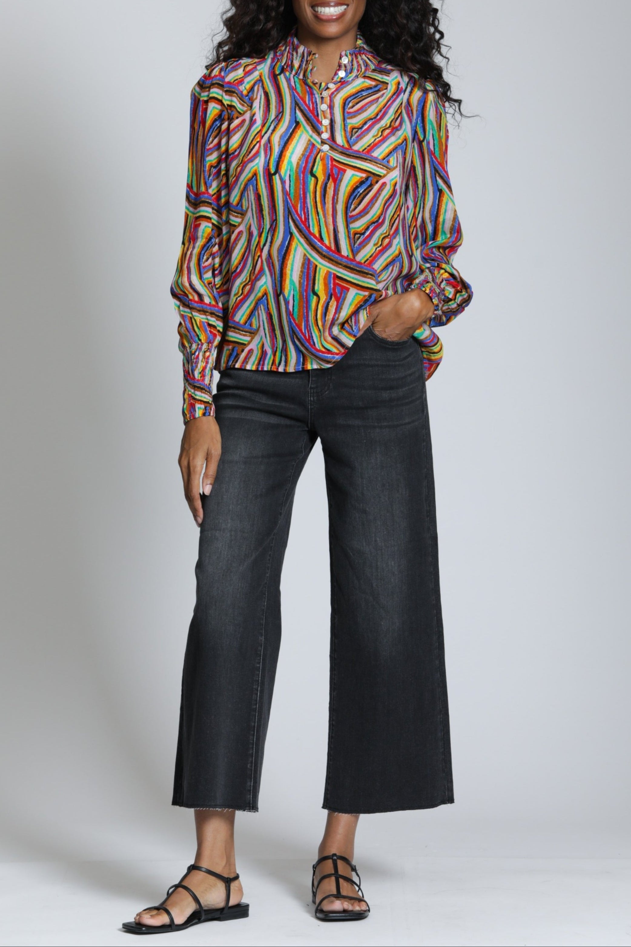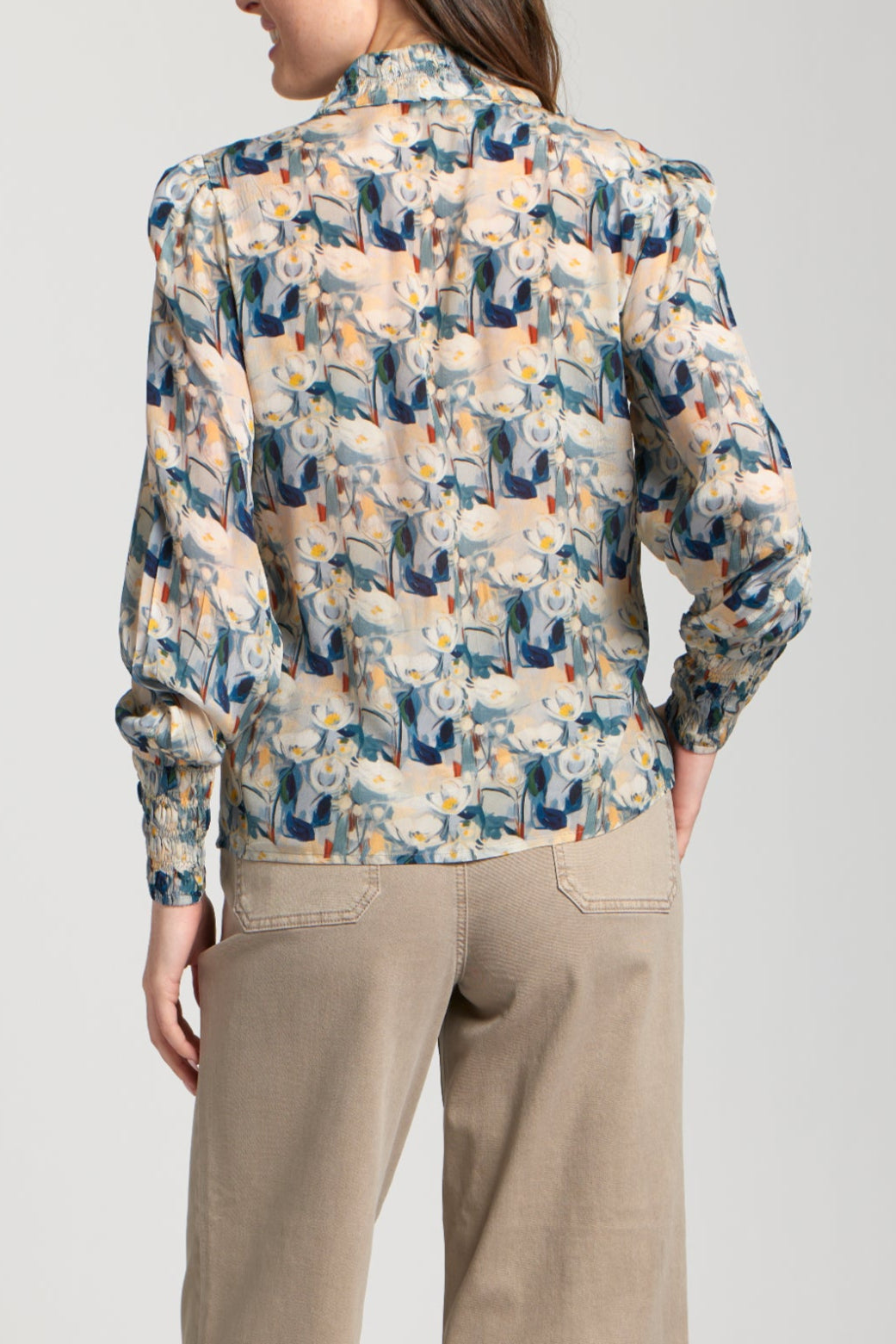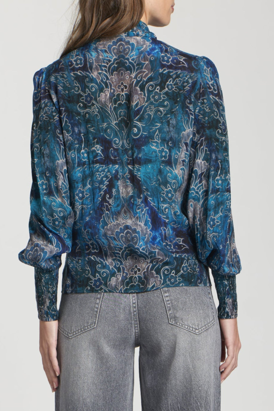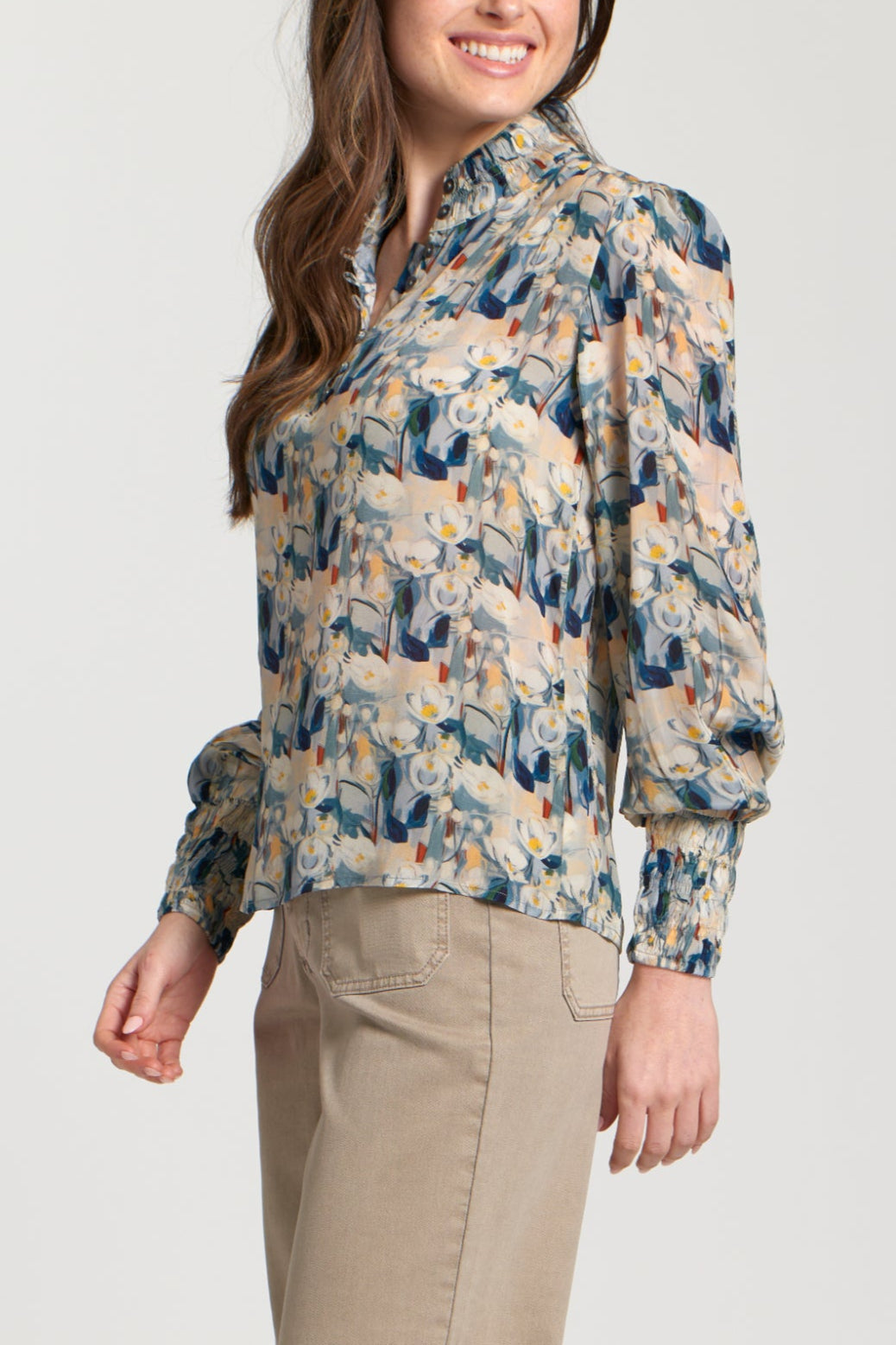 This stunner's got all the feathery feel with a statement Print, plus on-trend puffed sleeves and rushing that'll cinch you in for a dreamy silhouette. Made from a cloud-soft blend, it's a comfort that turns heads. This top is the perfect companion for an eye-catching look that's comfy and oh-so-trendy!