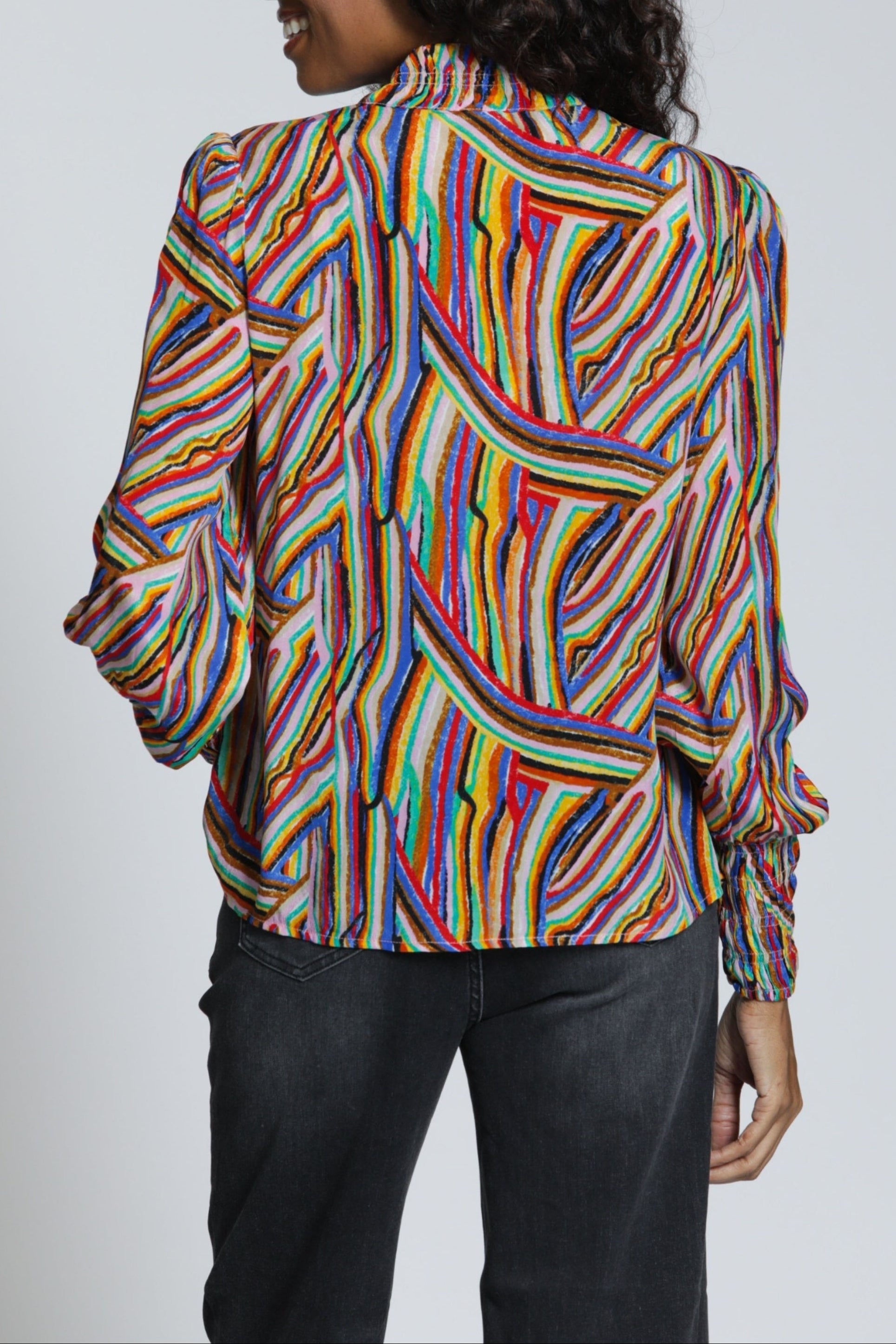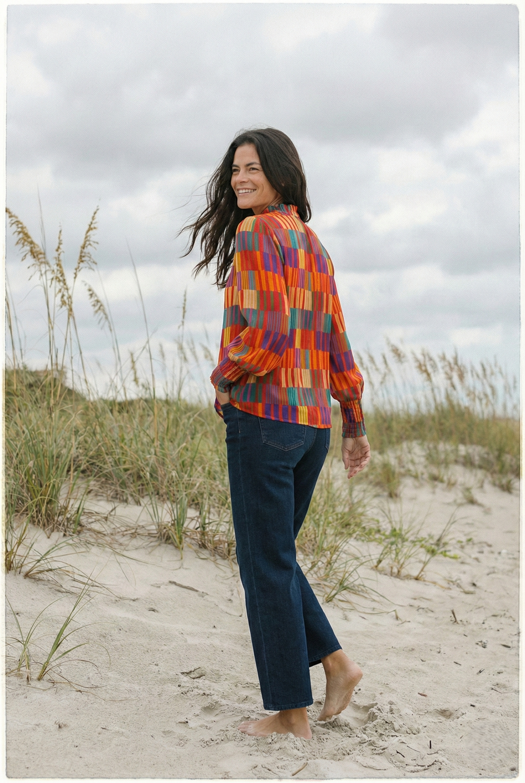 This stunner's got all the feathery feel with a statement Print, plus on-trend puffed sleeves and rushing that'll cinch you in for a dreamy silhouette. Made from a cloud-soft blend, it's a comfort that turns heads. This top is the perfect companion for an eye-catching look that's comfy and oh-so-trendy!
