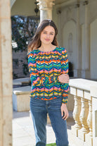 Make a statement with this striking pullover, featuring a print that elevates your everyday look. The design is a captivating fusion of shapes and colors, sure to grab attention wherever you go. Crafted with exceptional quality, Effortlessly transition from a dressed-up evening to a casual day out with this versatile piece that will own a stylish tag in your wardrobe.