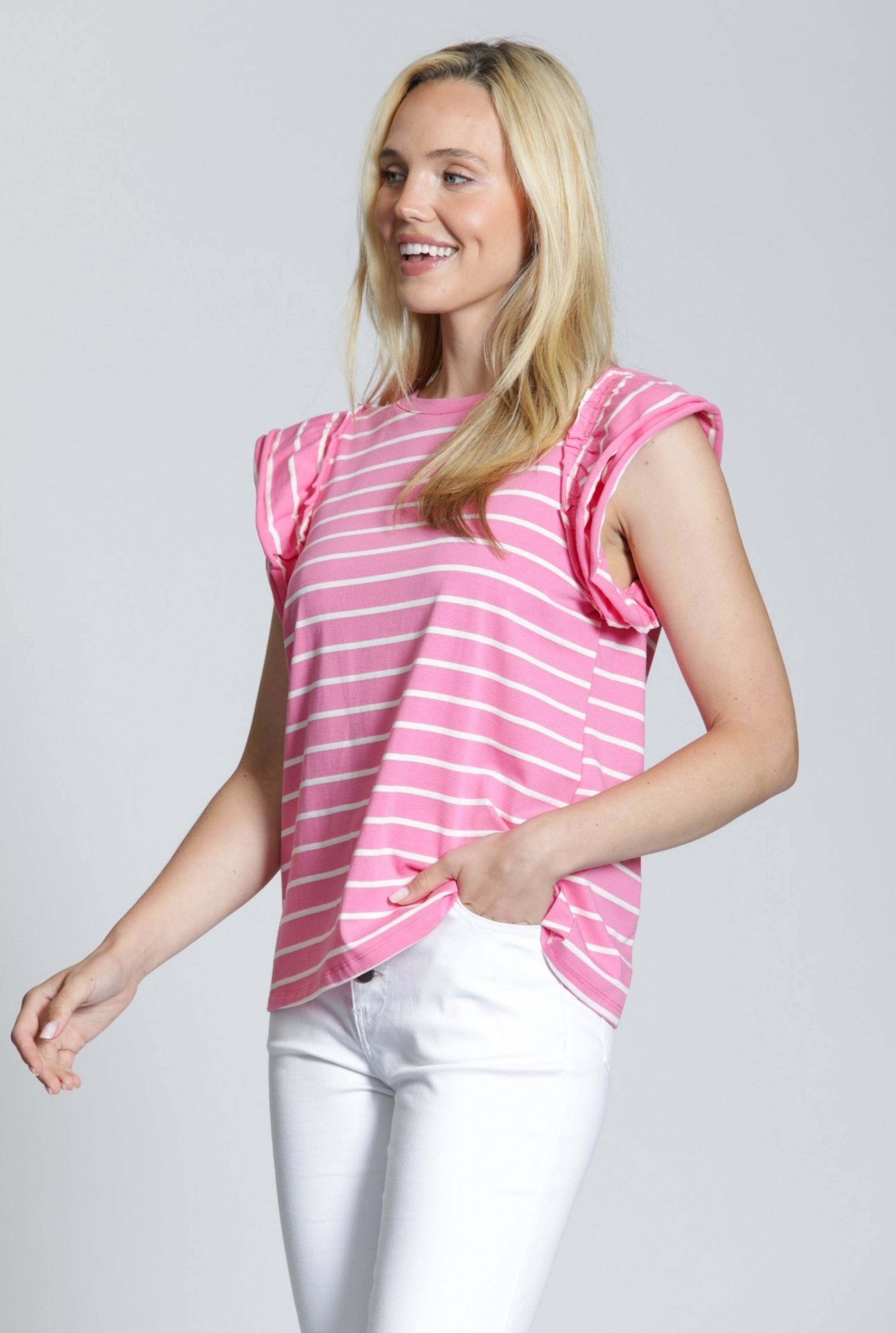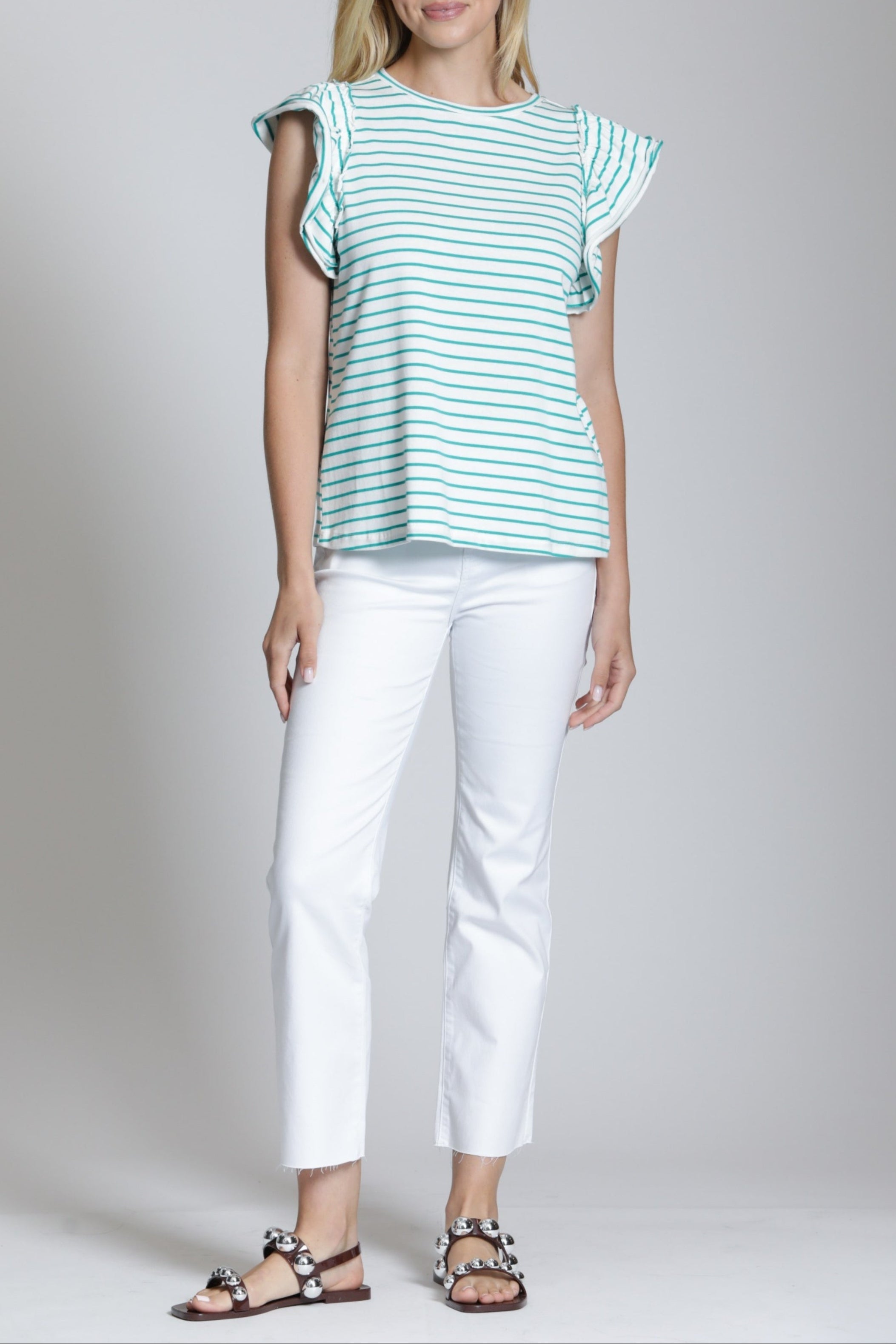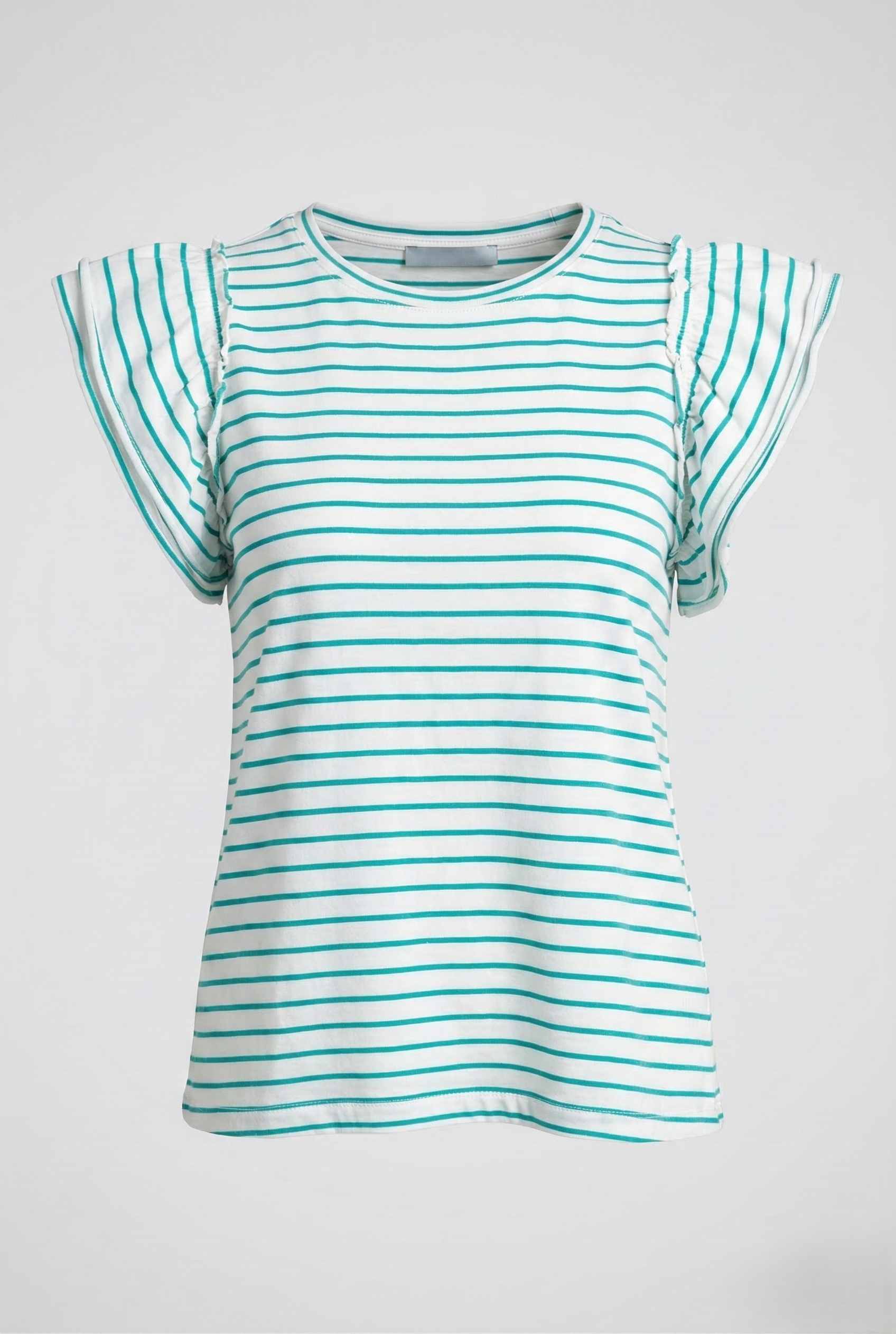 Raw-hem ruffles put a pretty frame on this stripe slub-cotton T-shirt that's a fresh alternative to your go-to stack of crewnecks.