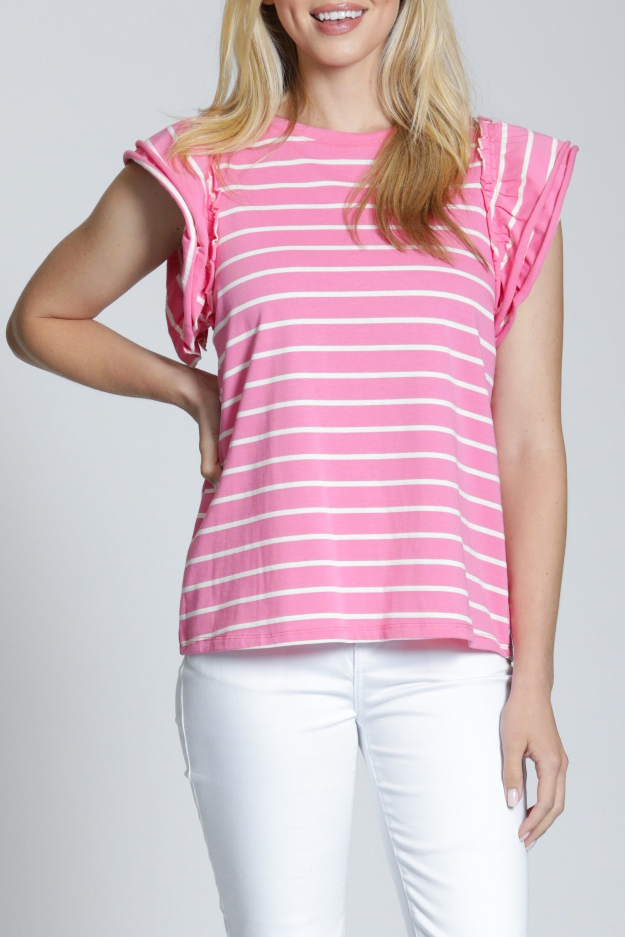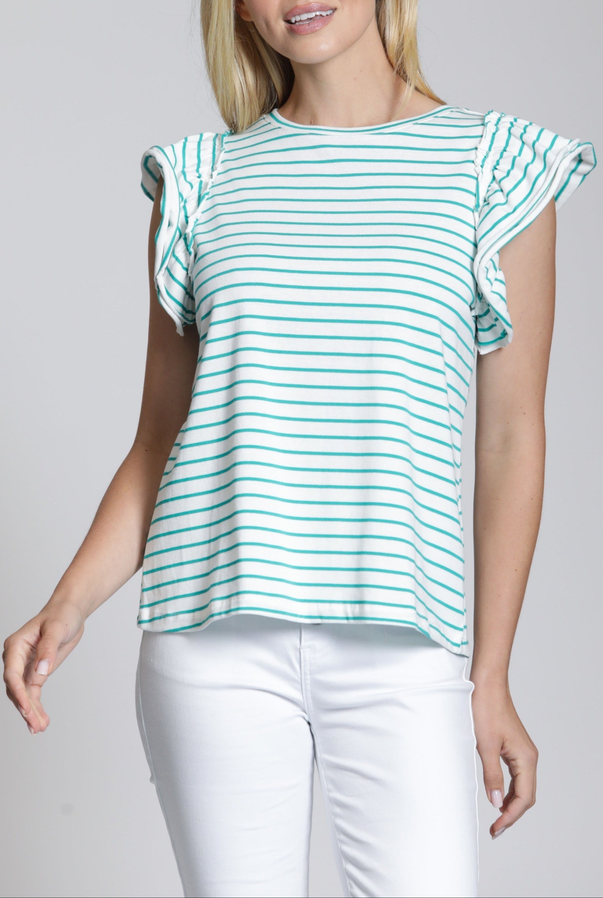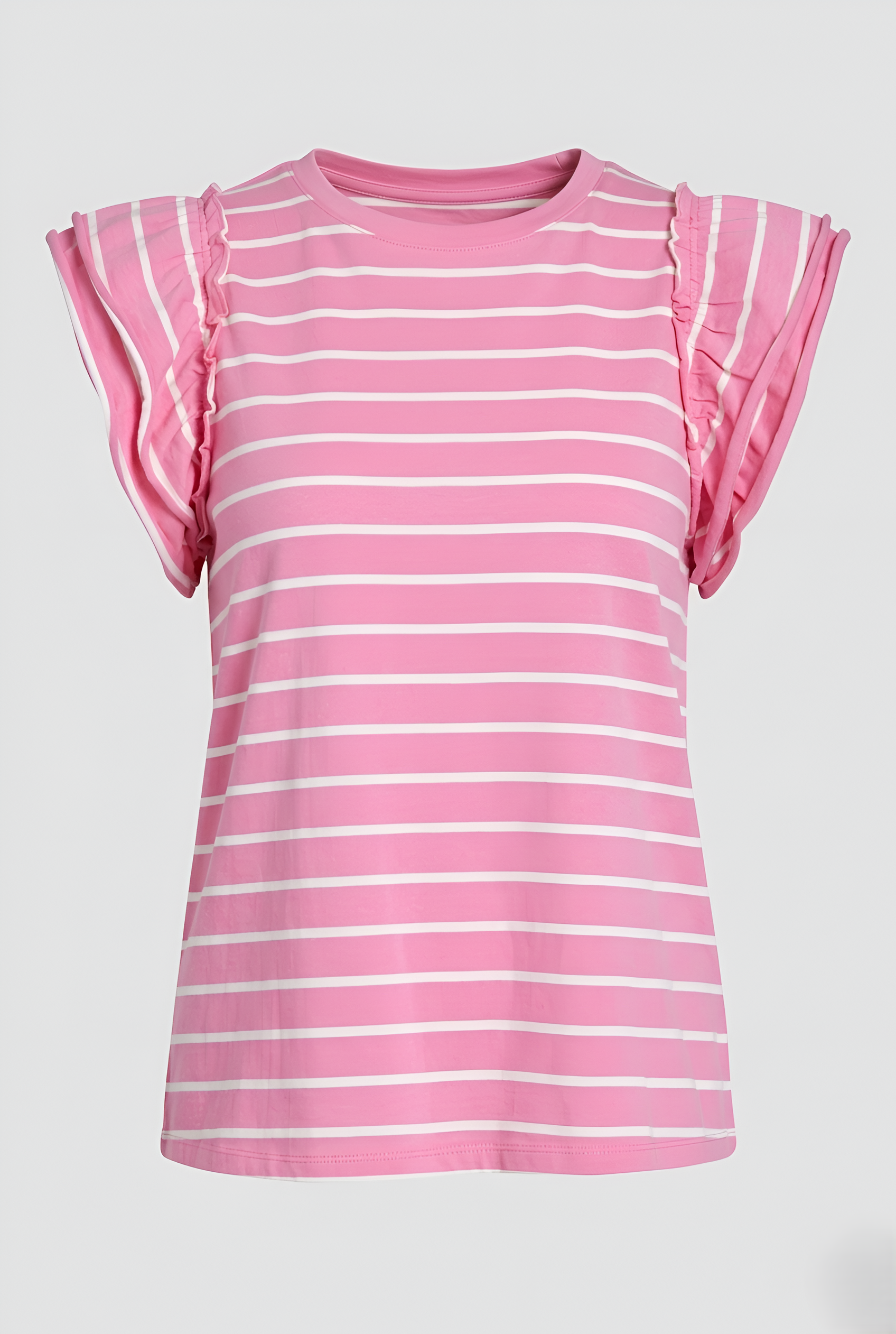 Raw-hem ruffles put a pretty frame on this stripe slub-cotton T-shirt that's a fresh alternative to your go-to stack of crewnecks.