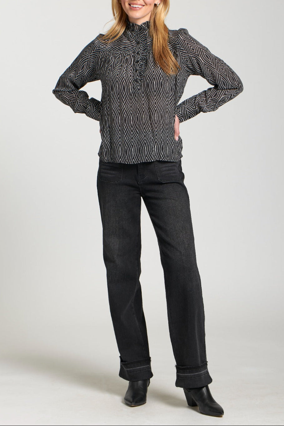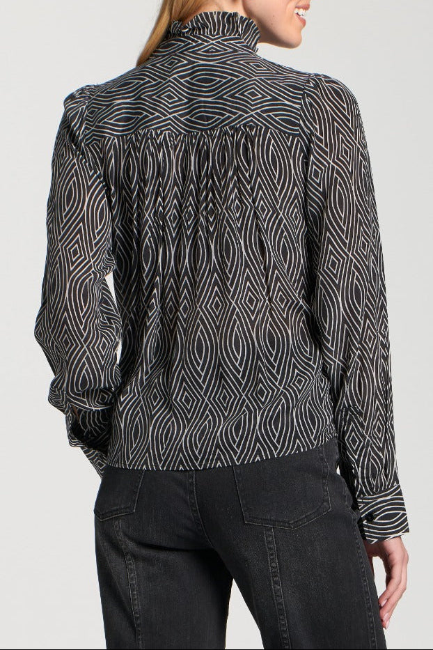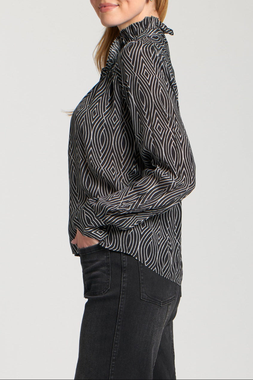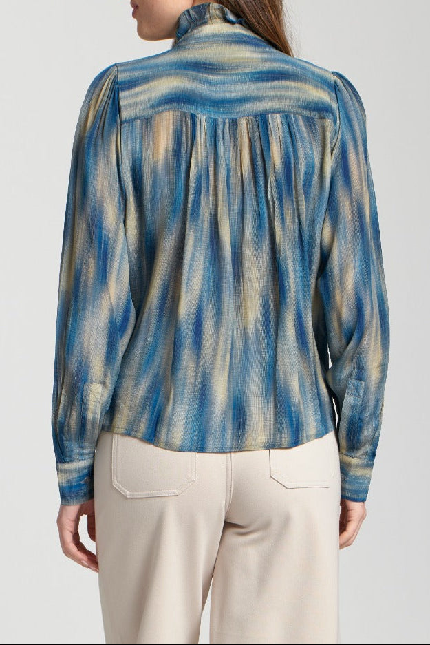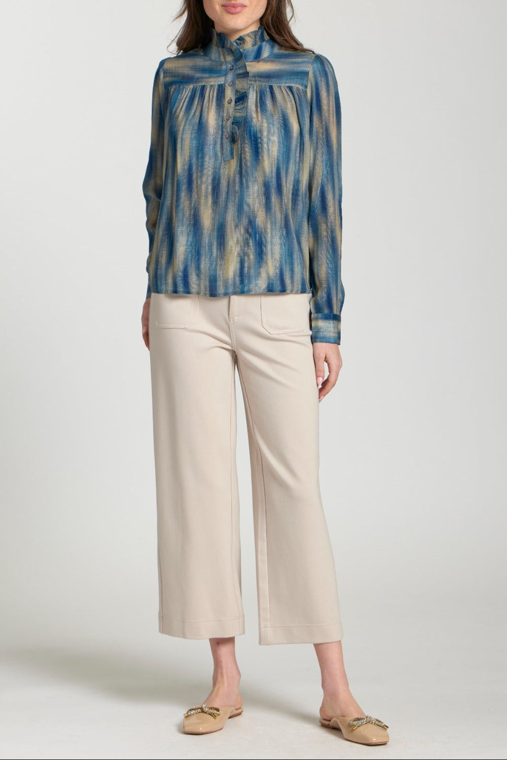 Add a touch of charm and color to your wardrobe with our Ruffle Half Placket Blouse. Featuring a vibrant all-over floral print, this blouse is designed to brighten up any outfit. The ruffled stand collar and half button placket add a feminine, elevated detail, while the long sleeves with buttoned cuffs offer a polished finish.