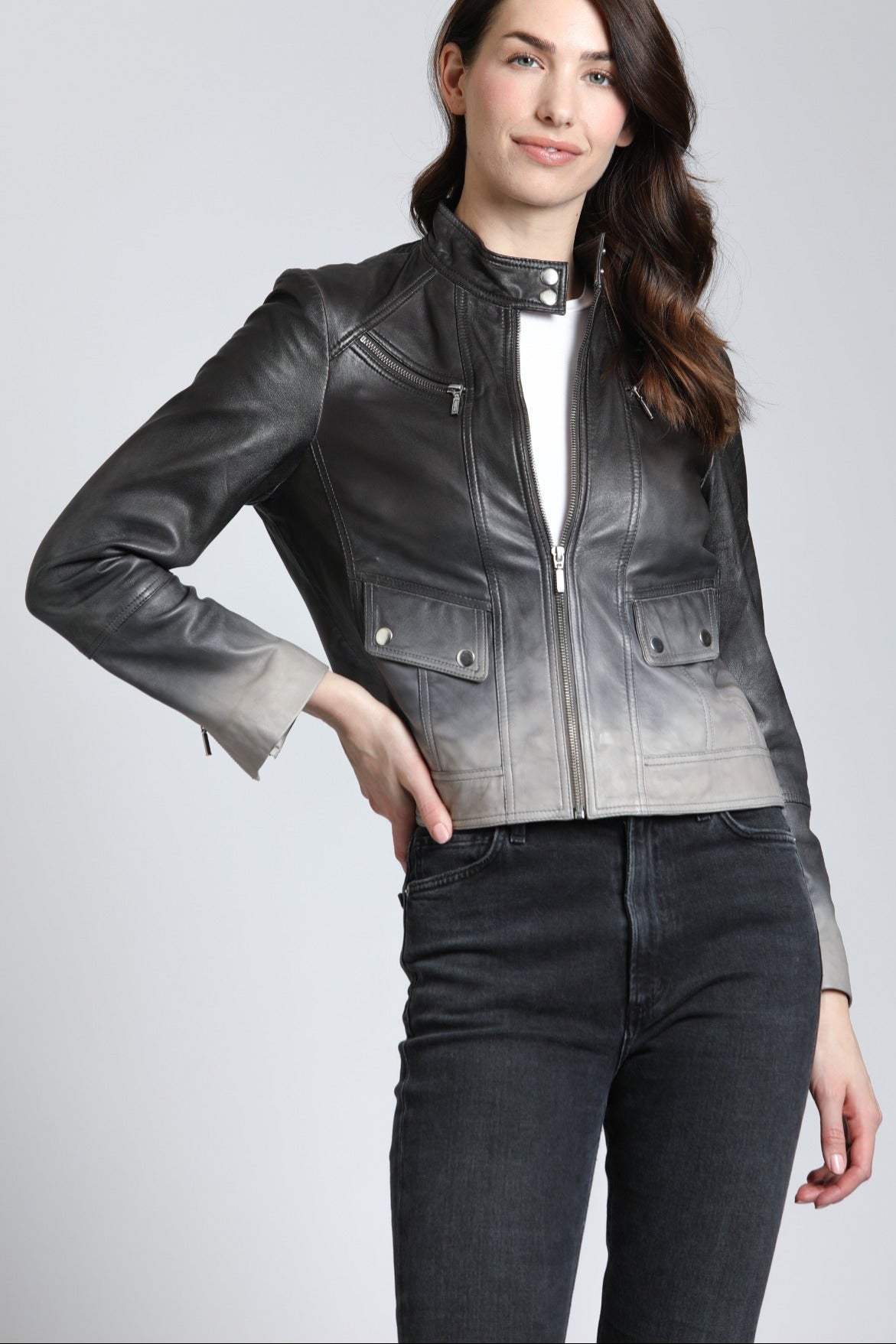Make a statement with the Shades of Gray Dip-Dyed Leather Jacket, a bold fusion of edgy style and artisanal craftsmanship. Featuring a unique dip-dyed gradient effect, this jacket blends deep, moody tones for a striking ombré finish. Crafted from premium leather, it offers a sleek, tailored fit with a soft, supple feel. Perfect for layering, this versatile piece adds effortless sophistication to any outfit.