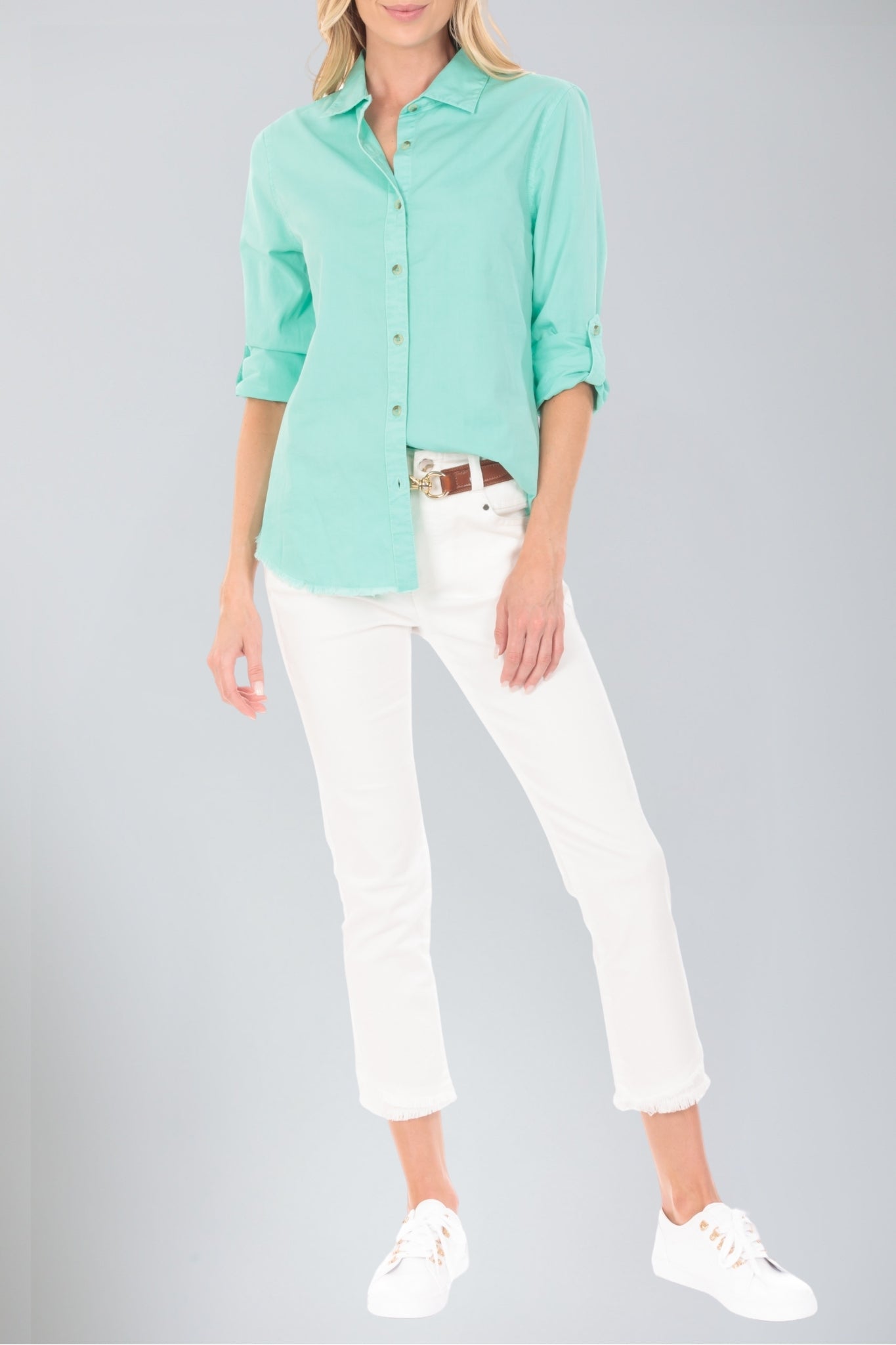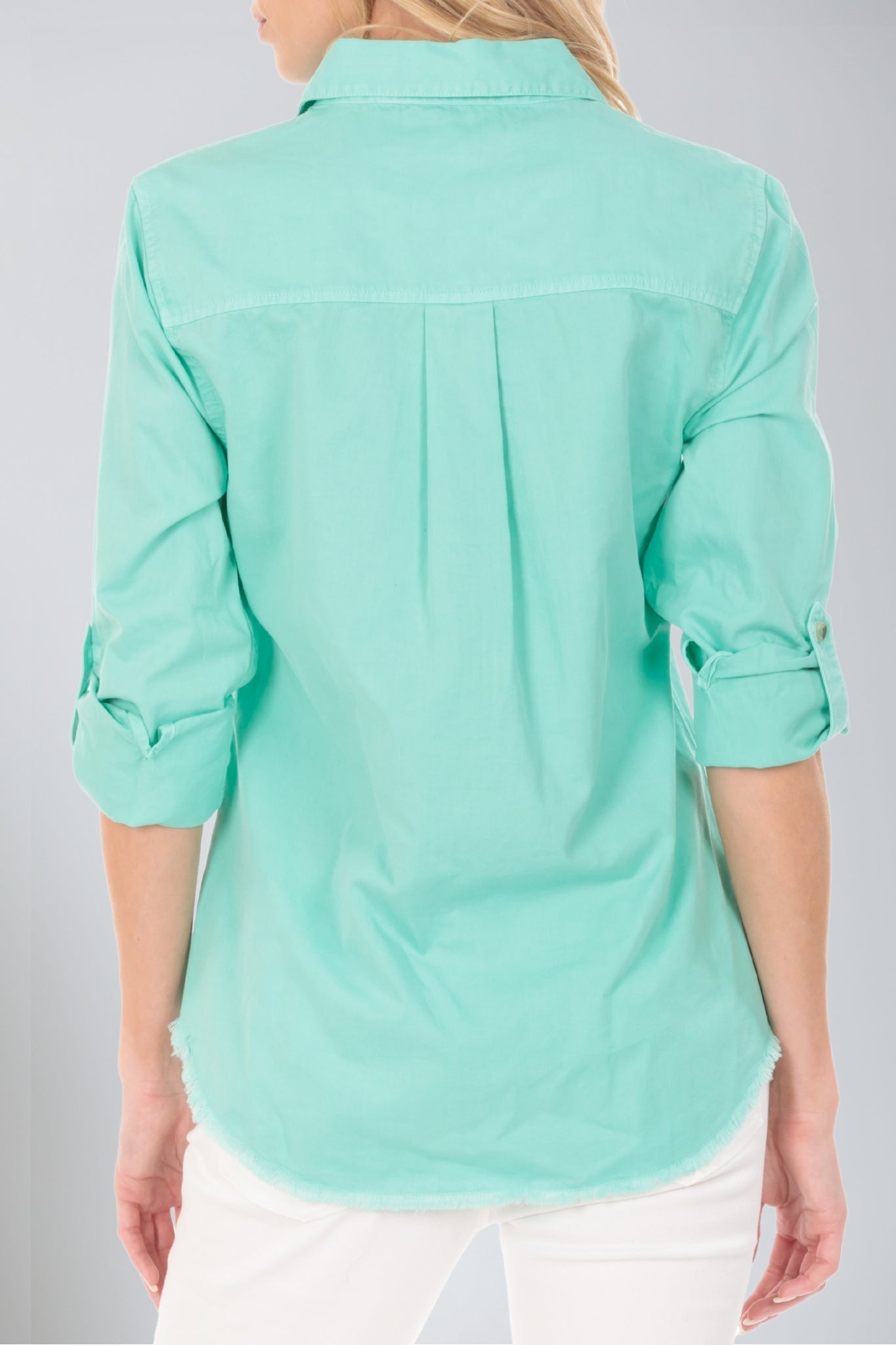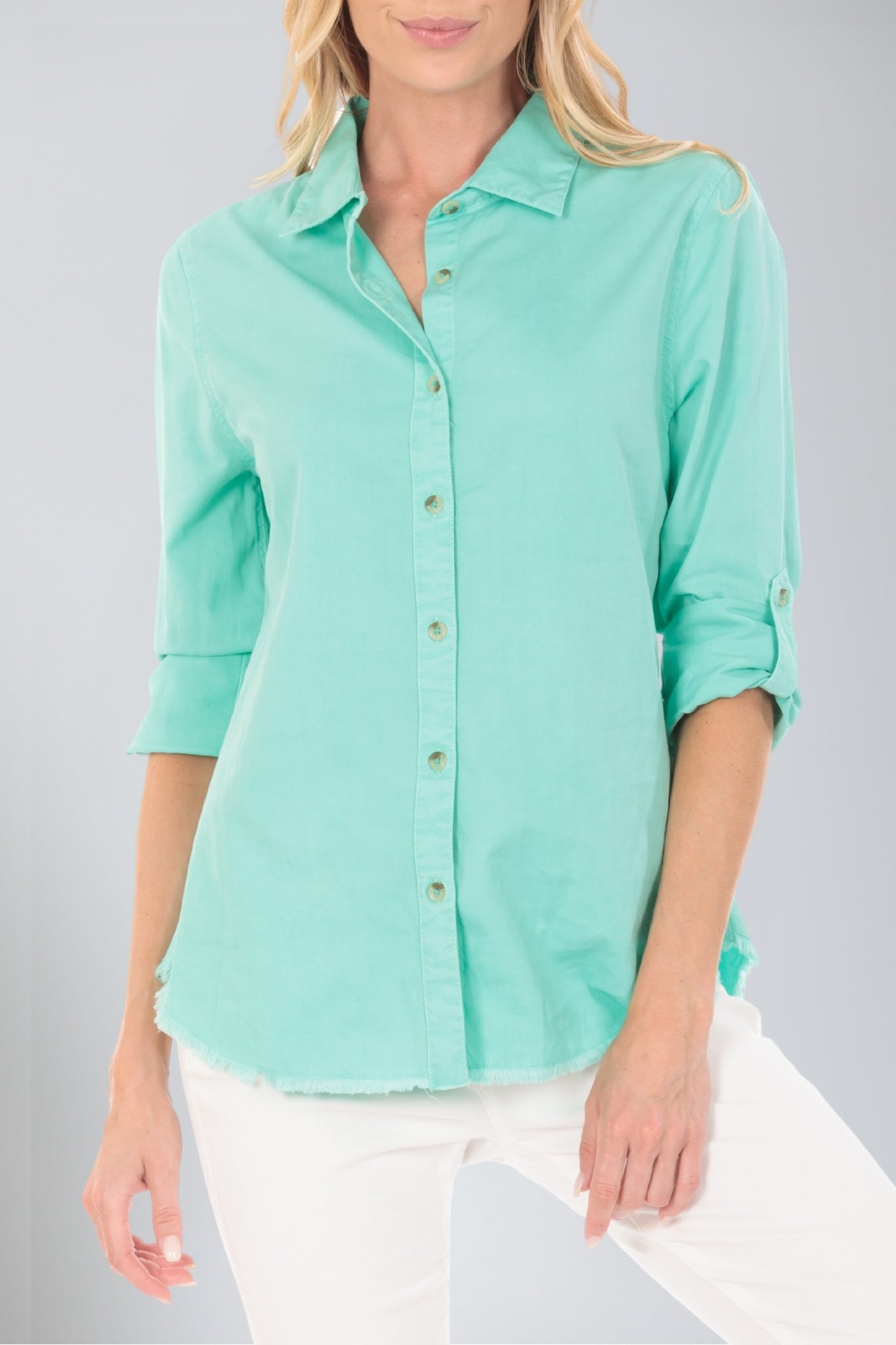 The "Shirt With Frayed Hem" offers a perfect blend of sophistication and casual flair. This shirt features a classic silhouette enhanced by a frayed hem for a subtle, edgy touch. Made from soft, breathable fabric, it provides all-day comfort while maintaining a polished look. The versatile design transitions effortlessly from work to weekend, pairing beautifully with jeans, trousers, or skirts. Whether layered or worn on its own, this shirt adds a modern twist to your wardrobe essentials.