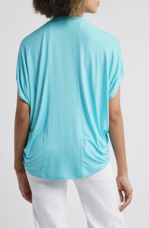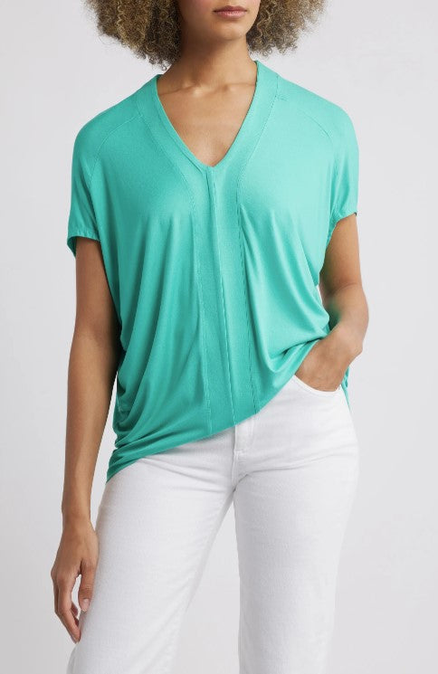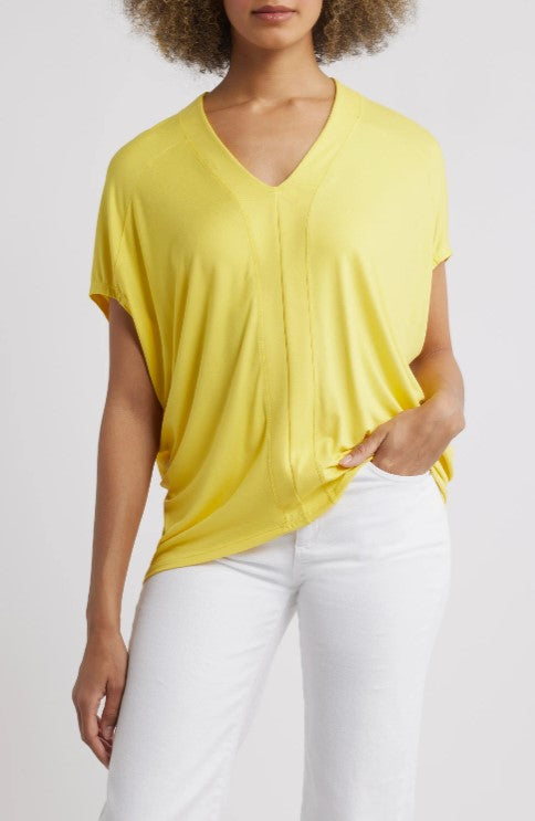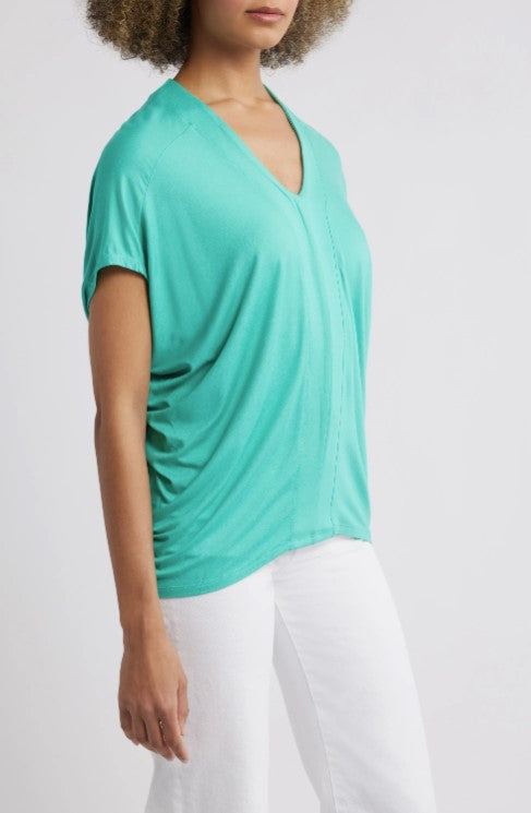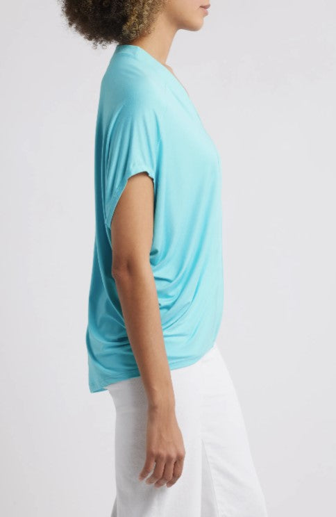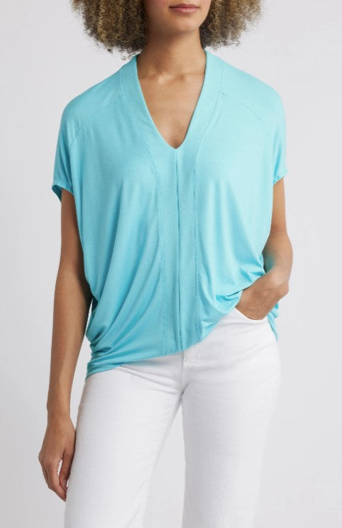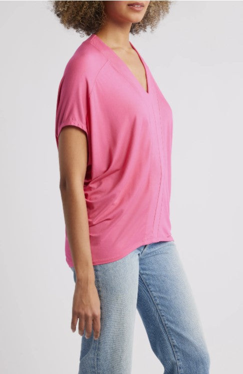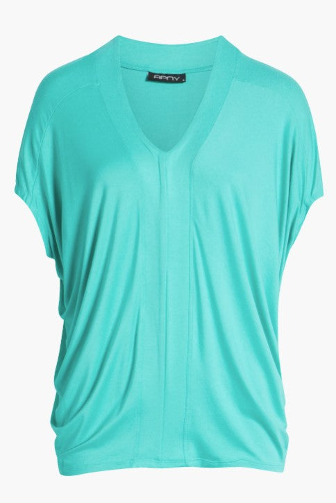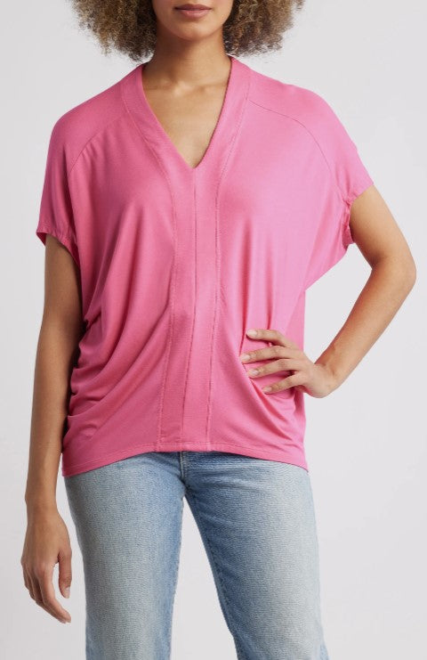 Enjoy the weekends in style with this short-sleeved Dolman T-shirt for women. It has a flattering V-neckline, a little bit of stretch and a high-low hem that goes with everything - your favorite pair of jeans, shorts, or a skirt. Let your inner fashionista roam free in this beautiful tunic.