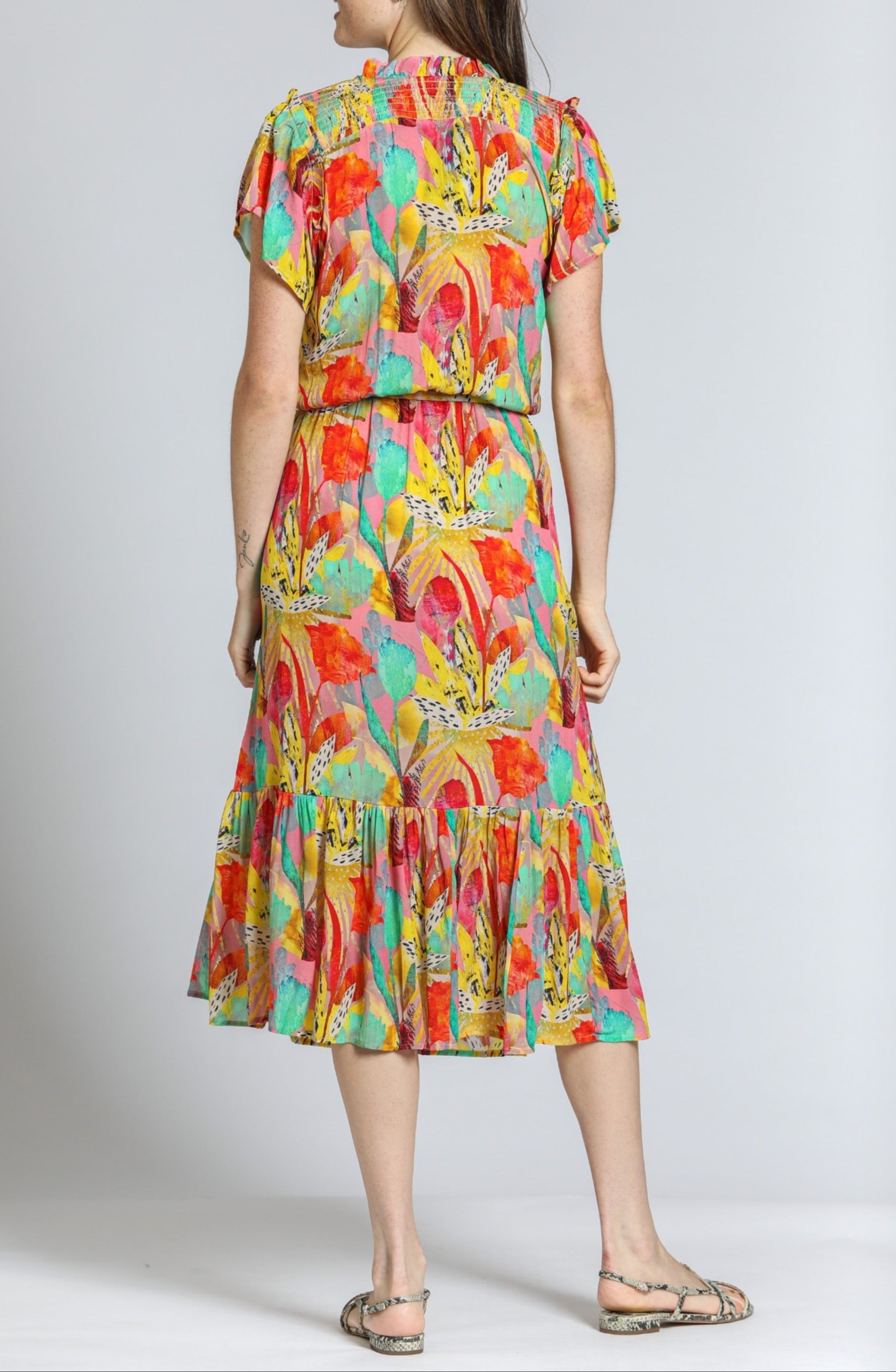 Elevate your wardrobe with our Short Sleeve Dress with Smocked Shoulder Detail, a perfect blend of elegance and comfort. Designed in a flattering midi length, this dress offers a timeless silhouette that effortlessly transitions from day to night. The delicate smocked shoulder detail adds a touch of texture and charm, while the short sleeves provide a breezy, relaxed fit. Whether you're heading to brunch, a casual outing, or a special event, this versatile dress pairs beautifully with sandals, heels, or sneakers. Chic, effortless, and on-trend—this dress is a must-have for any fashion-forward wardrobe!