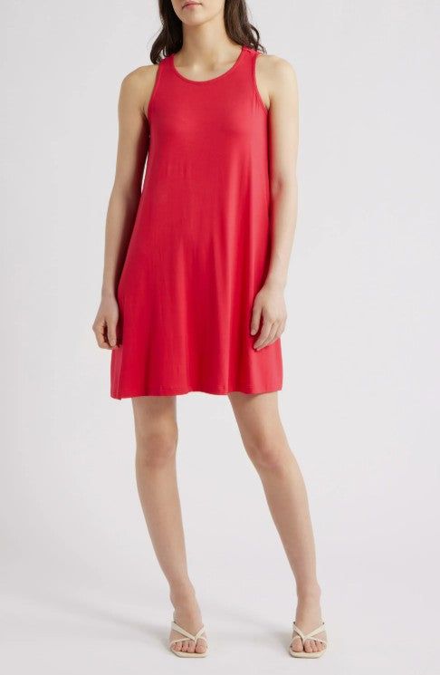 When a sporty dress is this stylish, it's guaranteed to be a wardrobe favorite . We love the scoop neckline, the racerback, flattering fit, invisible pockets, and the flow of the dress while our soft stretch knit keeps things effortless and comfy all day long.