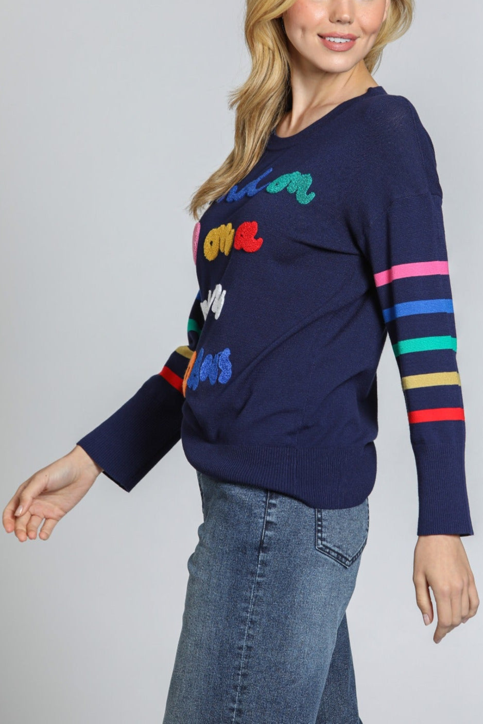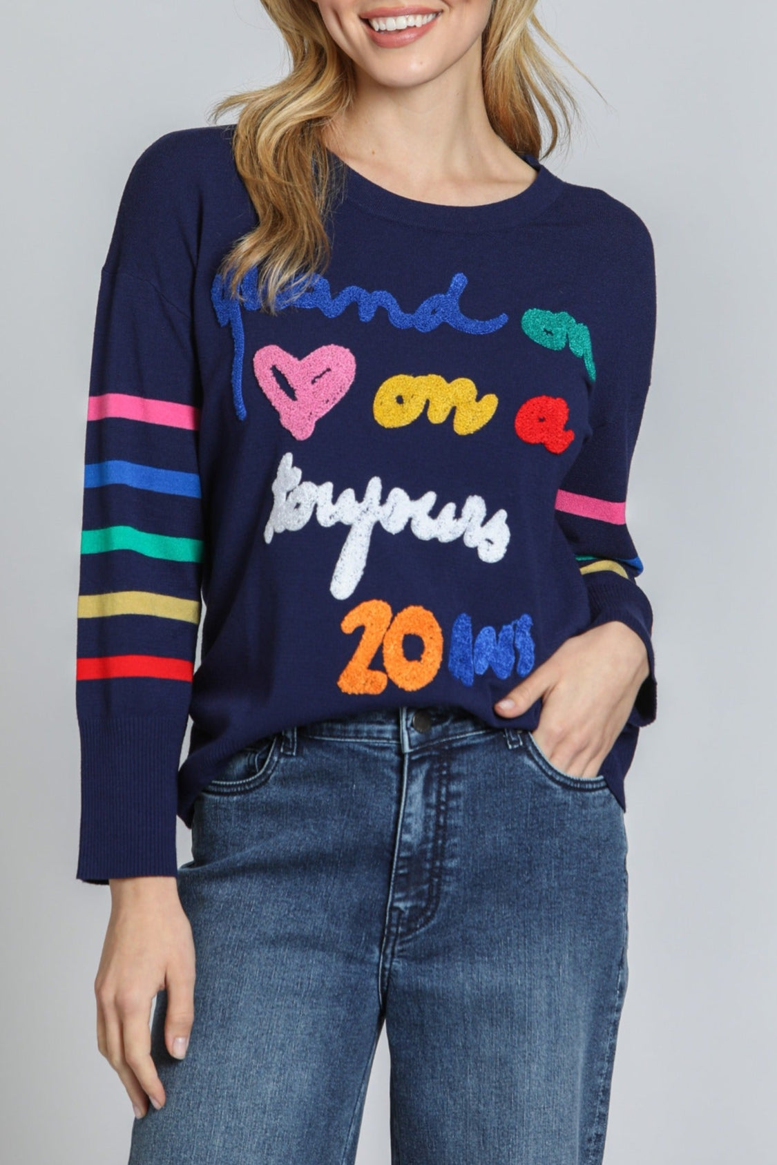 Make a statement with the Slogan Sweater—bold, cozy, and effortlessly stylish. Featuring eye-catching typography and a variety of empowering, playful, or motivational slogans, this sweater adds a personal touch to any outfit. Crafted from soft, high-quality fabric, it offers all-day comfort while keeping you warm in cooler weather. The relaxed fit and versatile design make it perfect for pairing with jeans, skirts, or layered over dresses for a trendy, laid-back look. Whether you're expressing your personality or making a statement, this sweater is your go-to for making an impression.