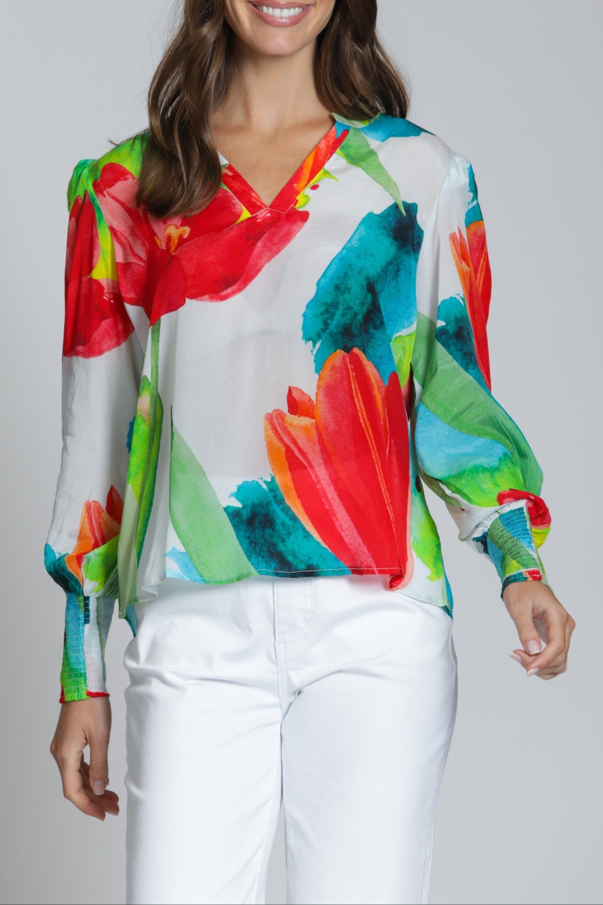 The Split Neck Top with Smocked Cuffs is a perfect blend of elegance and comfort. Designed with a flattering split neckline, this top adds a touch of sophistication to any outfit. The smocked cuffs create a subtle billowing effect on the sleeves, adding texture and a chic, feminine touch. Made from soft, breathable fabric, it drapes beautifully on the body, making it an effortless choice for both casual and dressy occasions. Pair it with jeans for a relaxed look or tuck it into a skirt for a polished ensemble.