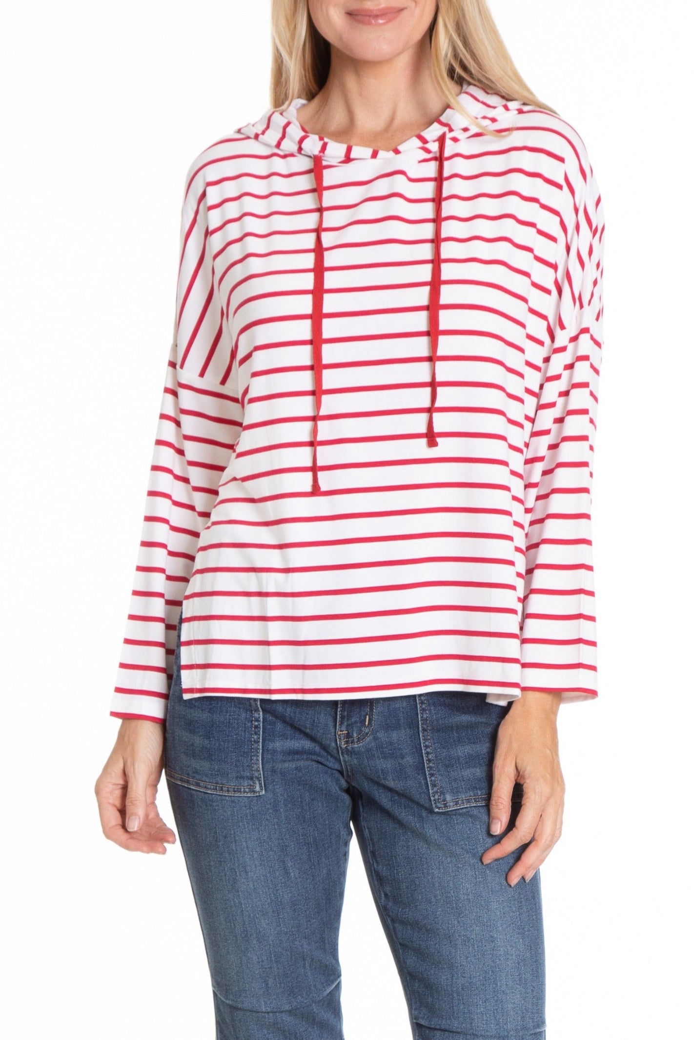 Stripe Hoodie With Side Slits