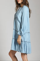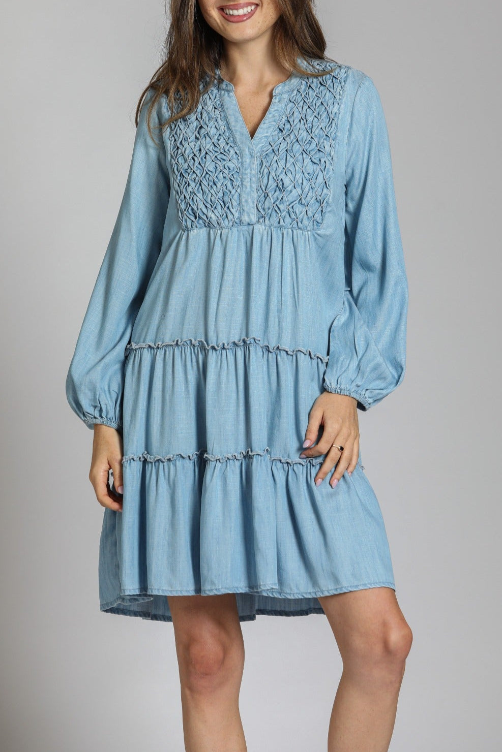 In search of a dress that does it all? Look no further than our Tencel Dress dipped in the hue of paradise. Crafted from luxuriously soft Tencel, this dress offers unparalleled comfort without compromising style. The versatile denim blue hue pairs effortlessly with your favorite accessories, making it perfect for any occasion. The subtle smoked tuck detail adds a touch of sophistication, elevating your look from casual to chic.