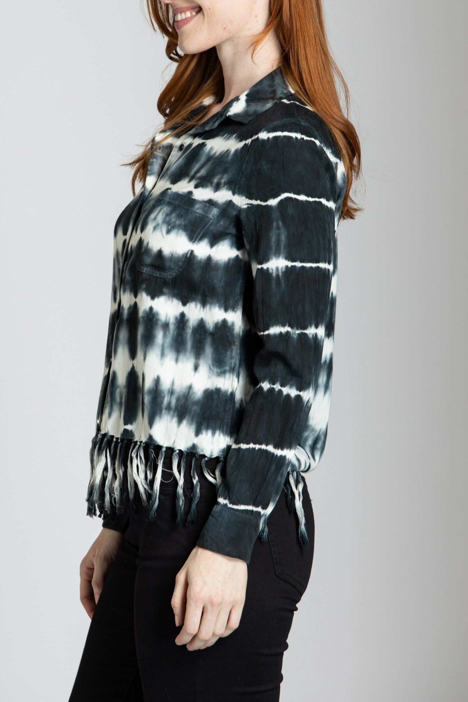 Elevate your wardrobe with the Tencel Shirt featuring a stylish tassel fringe hem. Made from soft, breathable Tencel fabric, this shirt offers a perfect blend of comfort and sophistication. The relaxed silhouette and unique fringe detail add a touch of boho-chic flair, making it a versatile choice for casual outings or dressed-up occasions. Pair it with your favorite jeans or skirts for a modern, effortlessly cool look.