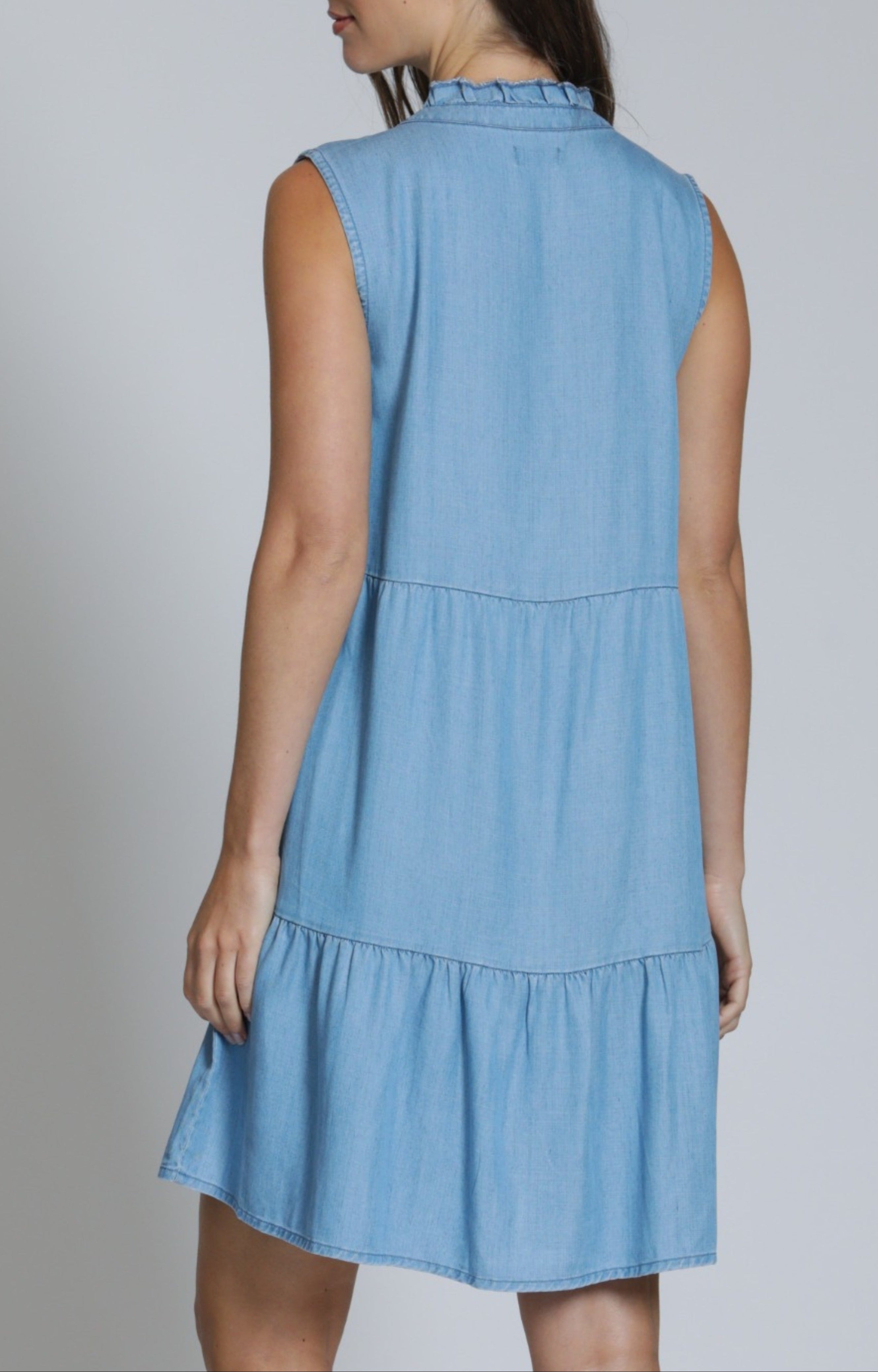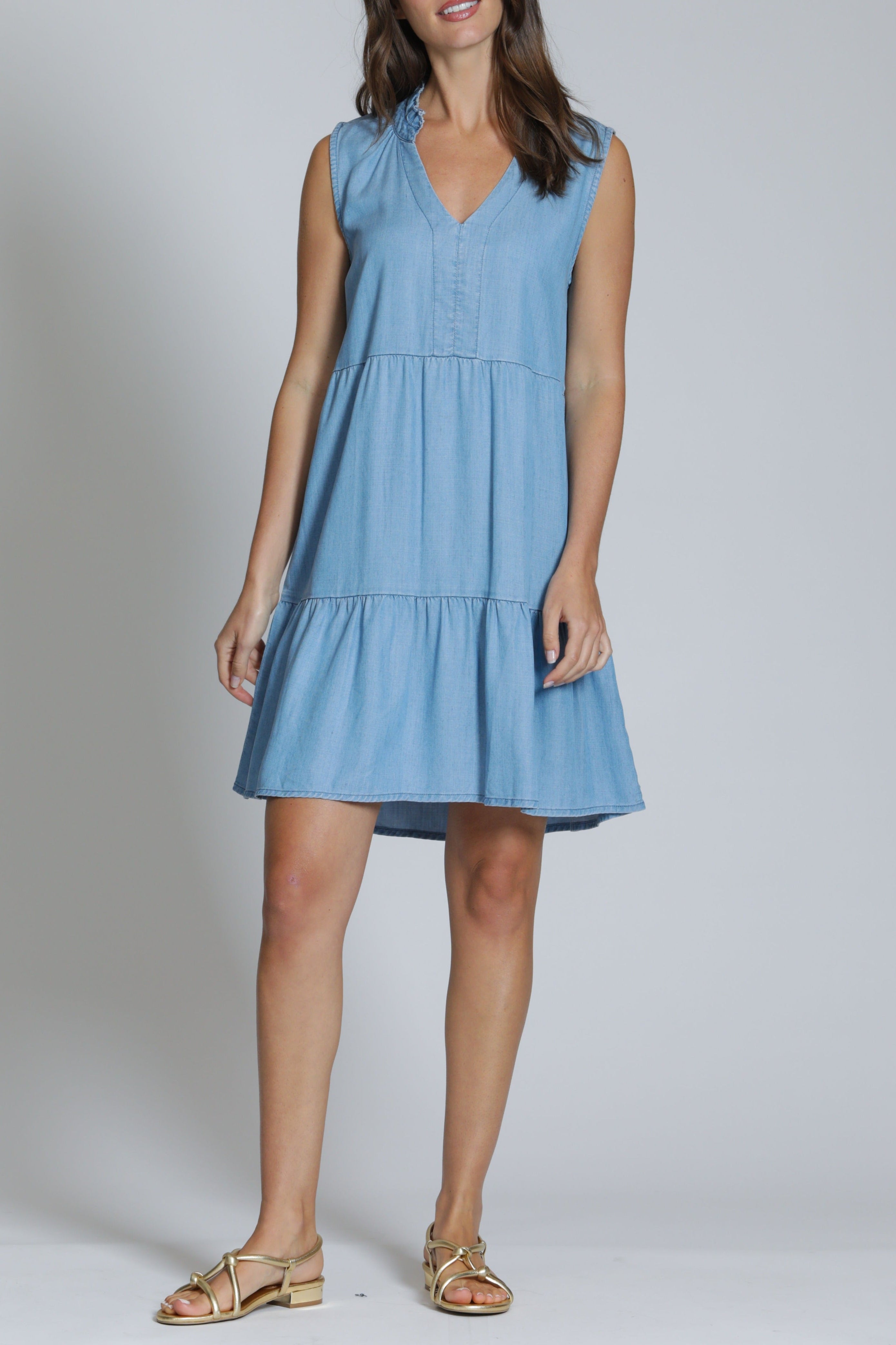 Tencel Sleeveless Dress With Split Neck