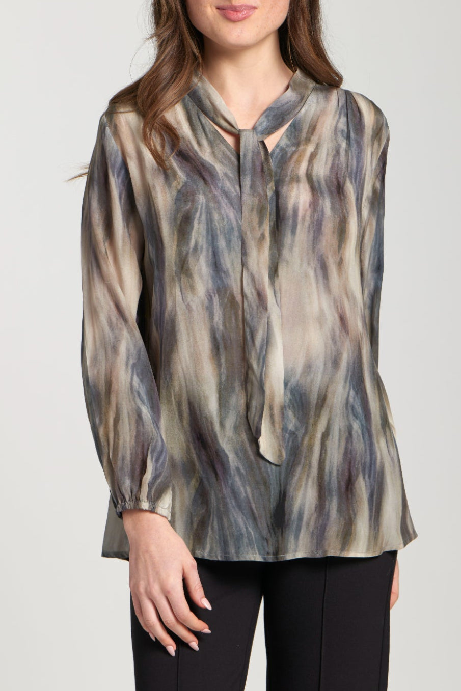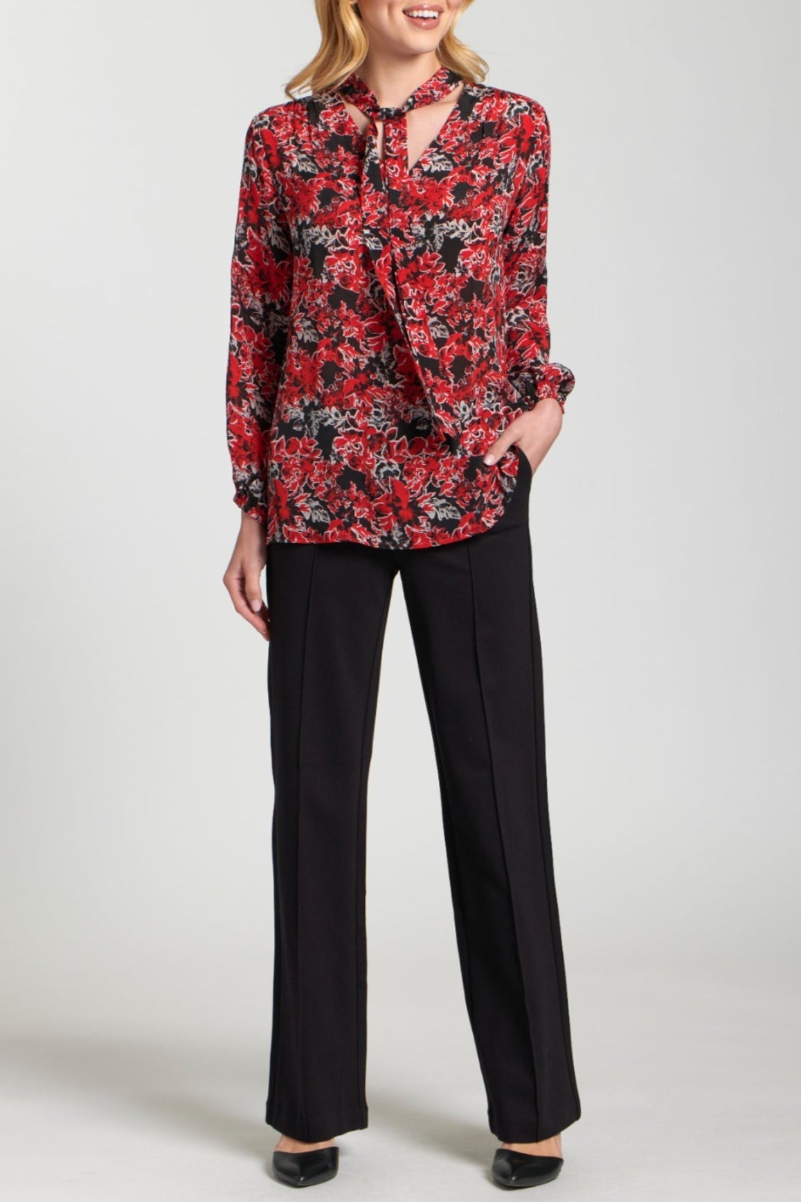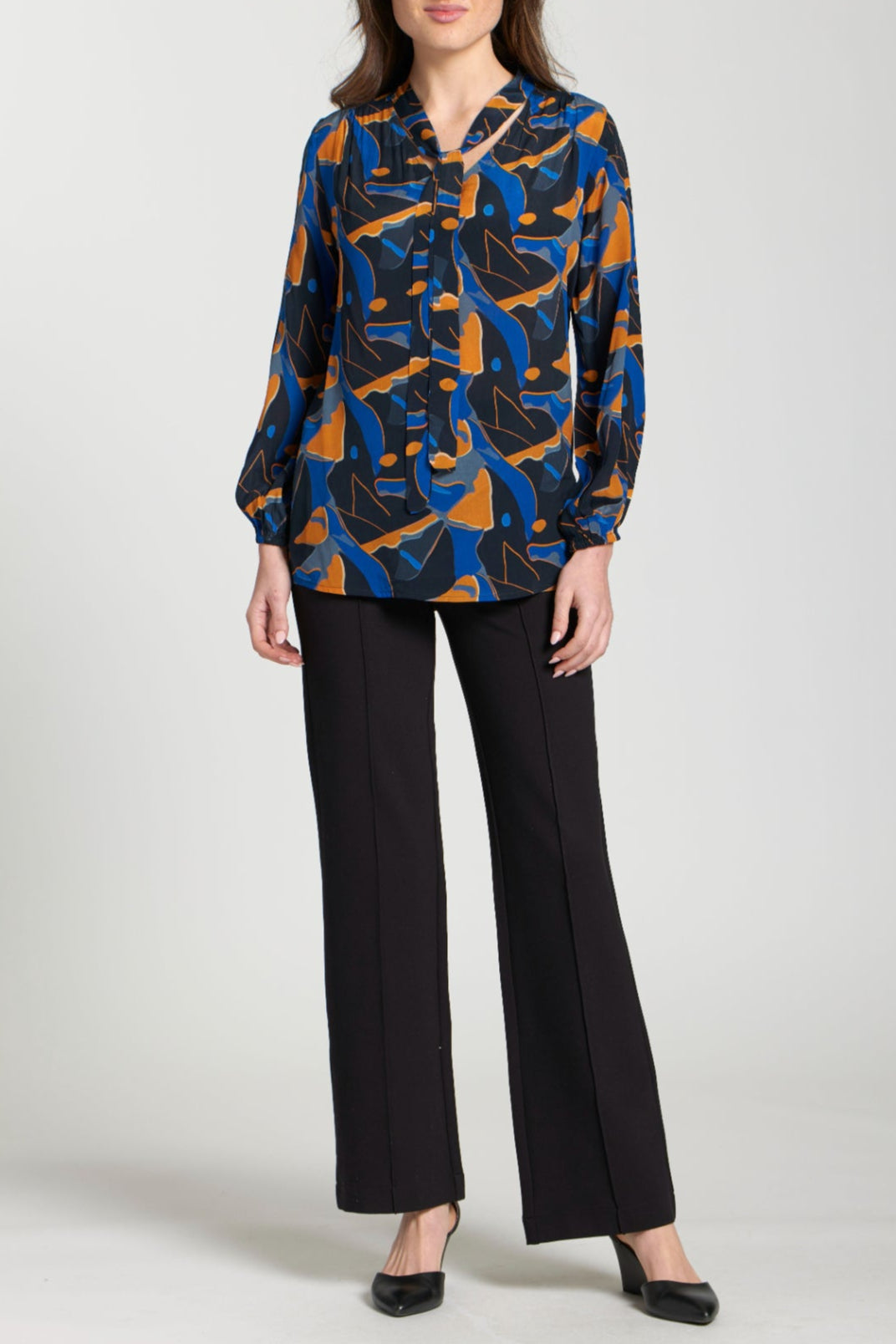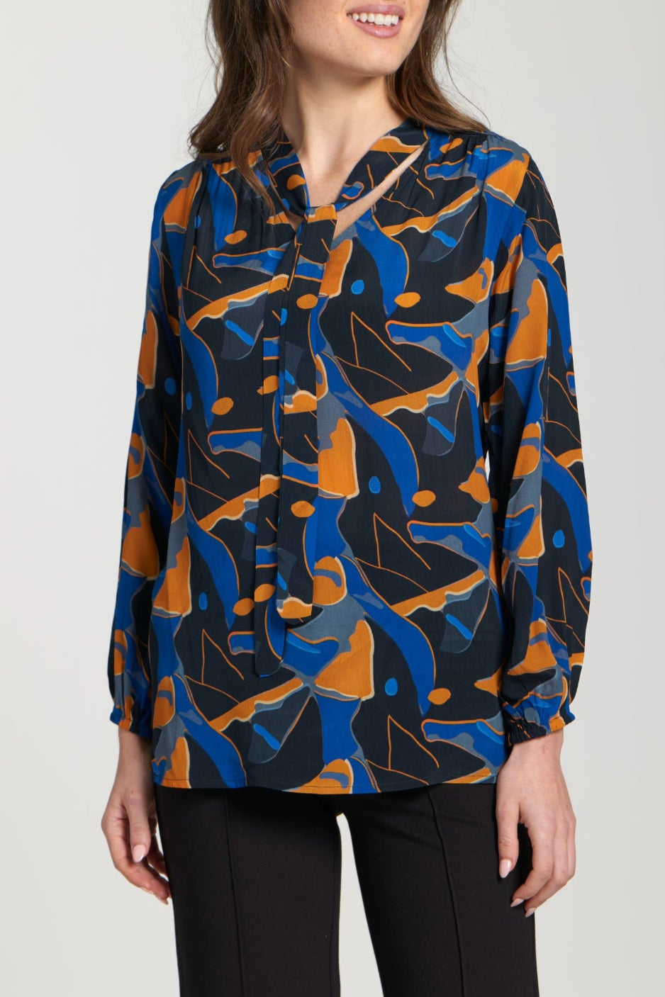Elevate your wardrobe with this sophisticated Tie-Neck Blouse, a versatile piece defined by its elegant neck detail and vibrant, all-over patterning. This long-sleeve top offers a polished look suitable for the office, evening events, or smart-casual occasions. The signature tie-neck can be styled in a chic bow or left open for a relaxed v-neckline, offering customizable flair. Crafted from a soft, lightweight fabric, this essential blouse drapes beautifully and provides a comfortable yet refined fit.