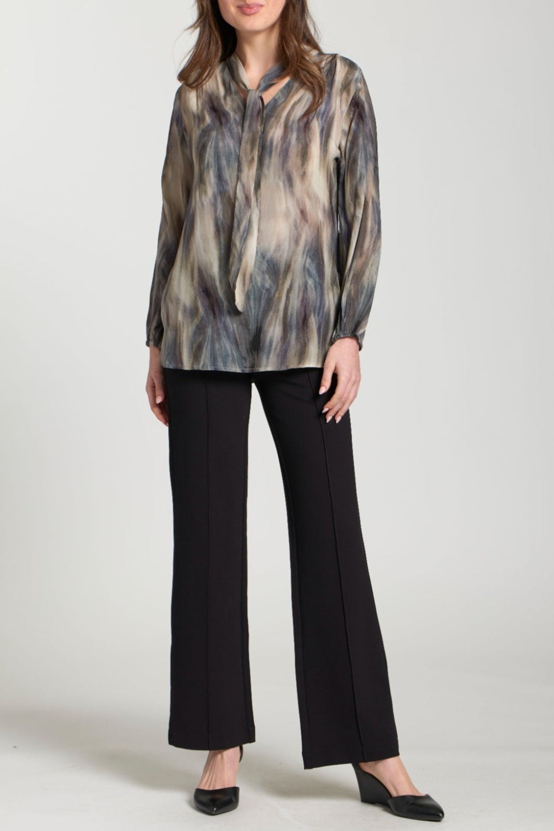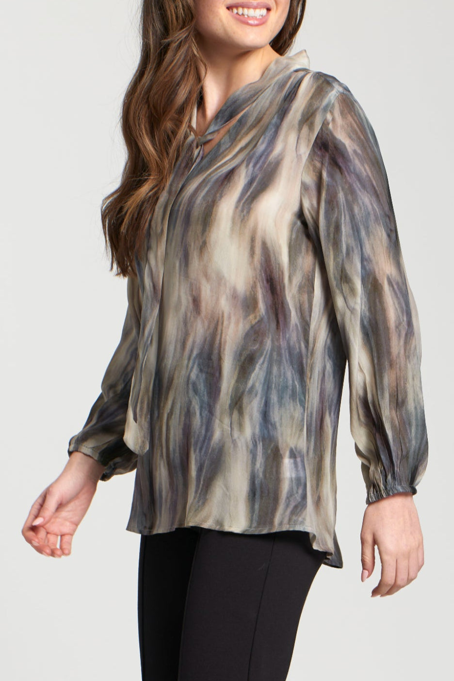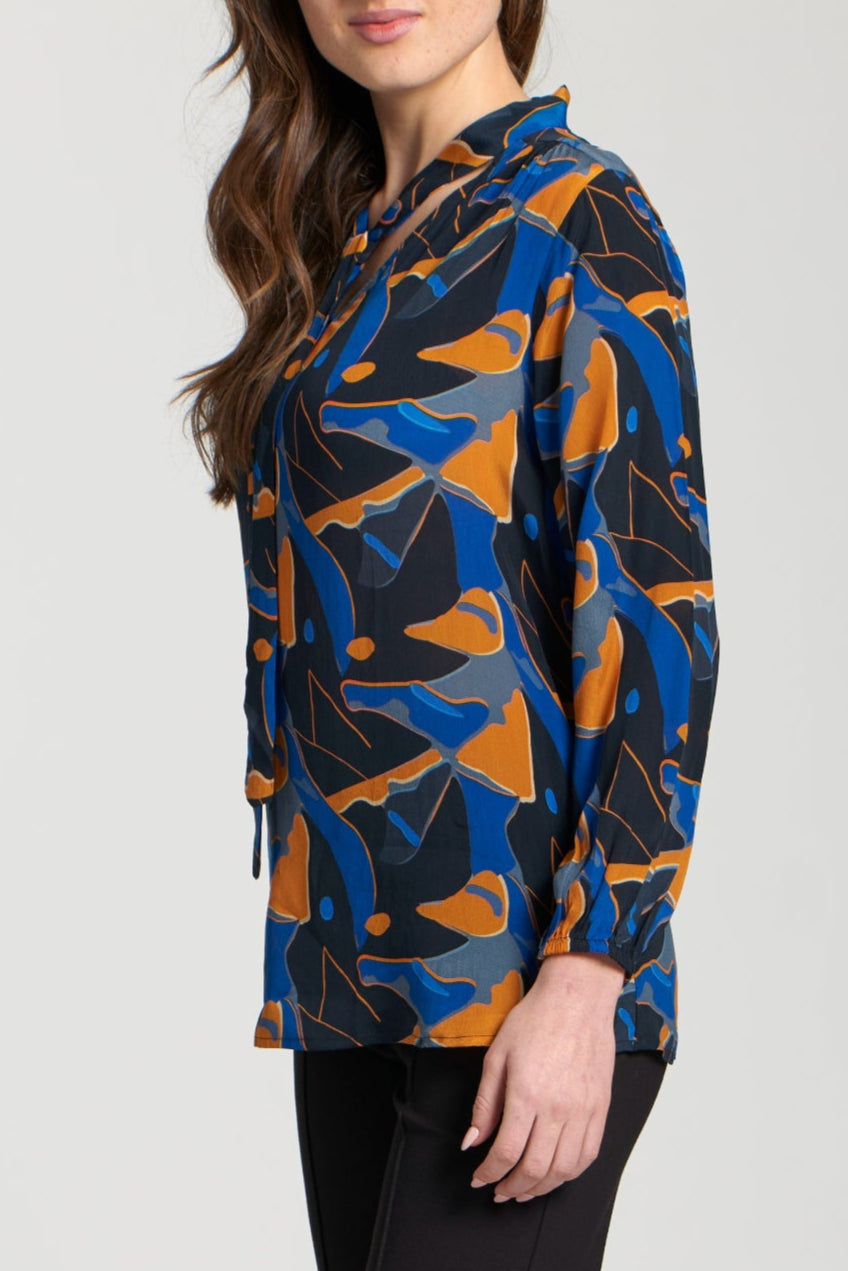 Elevate your wardrobe with this sophisticated Tie-Neck Blouse, a versatile piece defined by its elegant neck detail and vibrant, all-over patterning. This long-sleeve top offers a polished look suitable for the office, evening events, or smart-casual occasions. The signature tie-neck can be styled in a chic bow or left open for a relaxed v-neckline, offering customizable flair. Crafted from a soft, lightweight fabric, this essential blouse drapes beautifully and provides a comfortable yet refined fit.