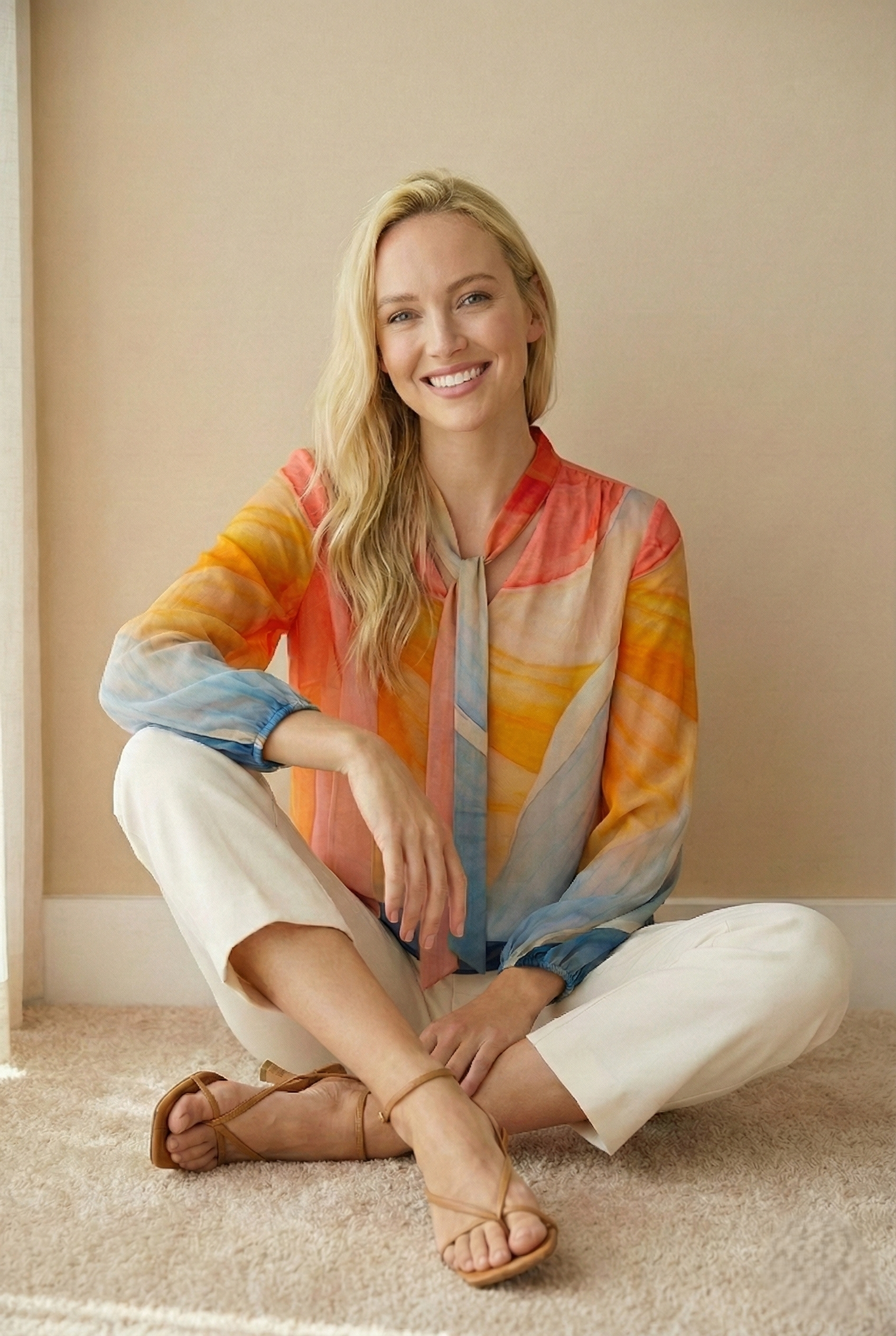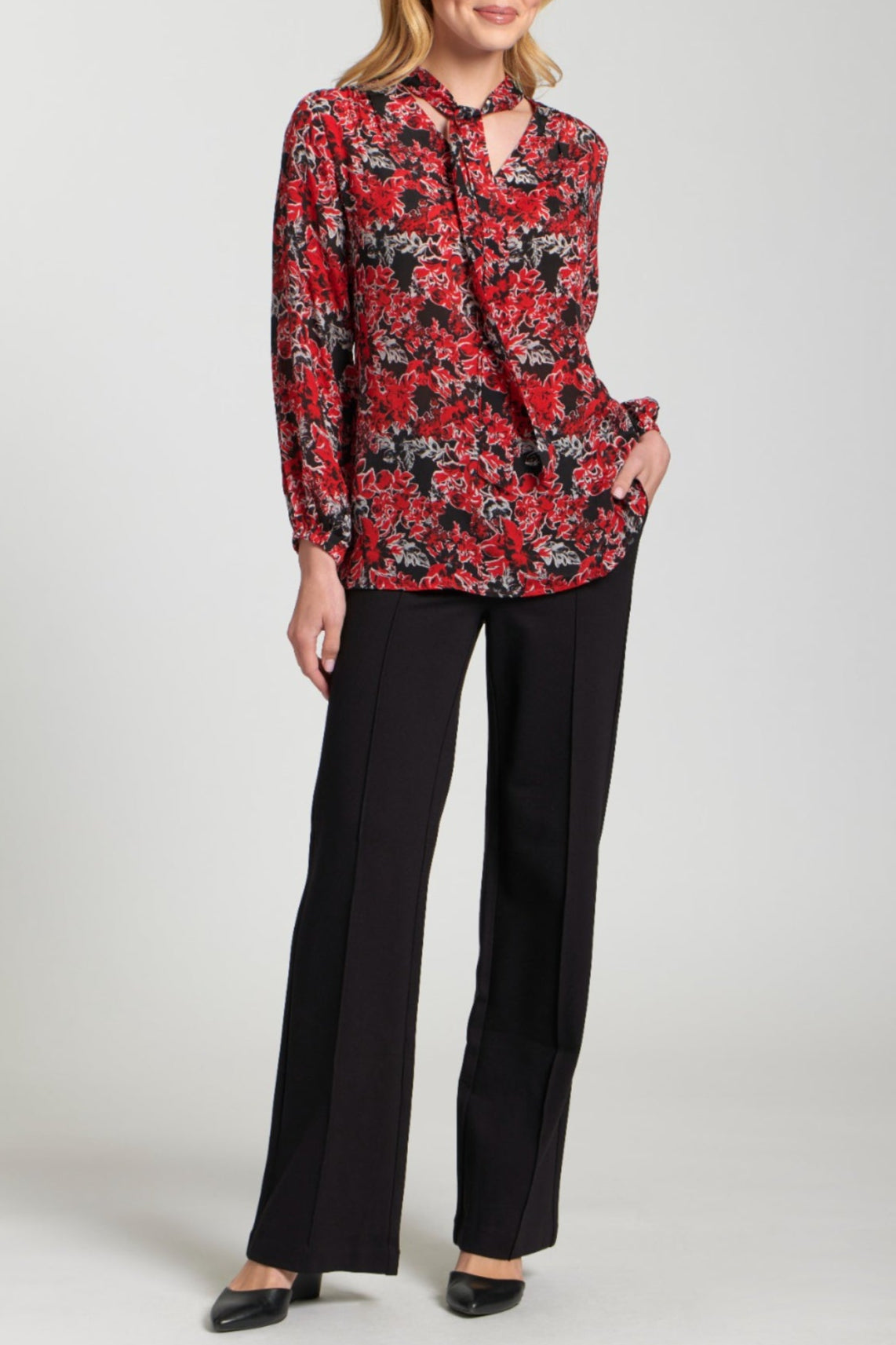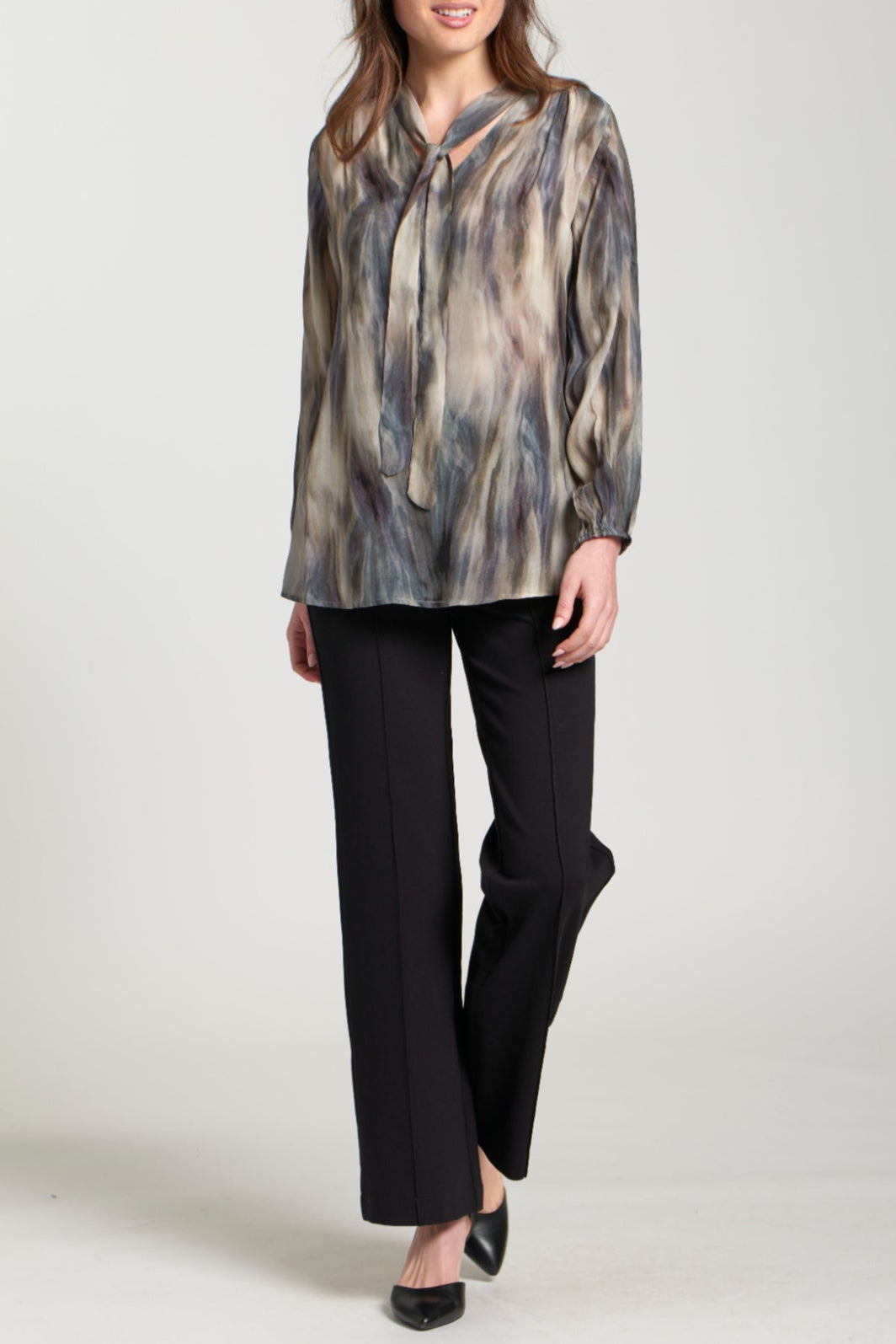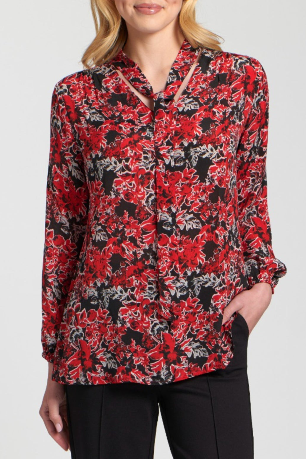 Elevate your wardrobe with this sophisticated Tie-Neck Blouse, a versatile piece defined by its elegant neck detail and vibrant, all-over patterning. This long-sleeve top offers a polished look suitable for the office, evening events, or smart-casual occasions. The signature tie-neck can be styled in a chic bow or left open for a relaxed v-neckline, offering customizable flair. Crafted from a soft, lightweight fabric, this essential blouse drapes beautifully and provides a comfortable yet refined fit.