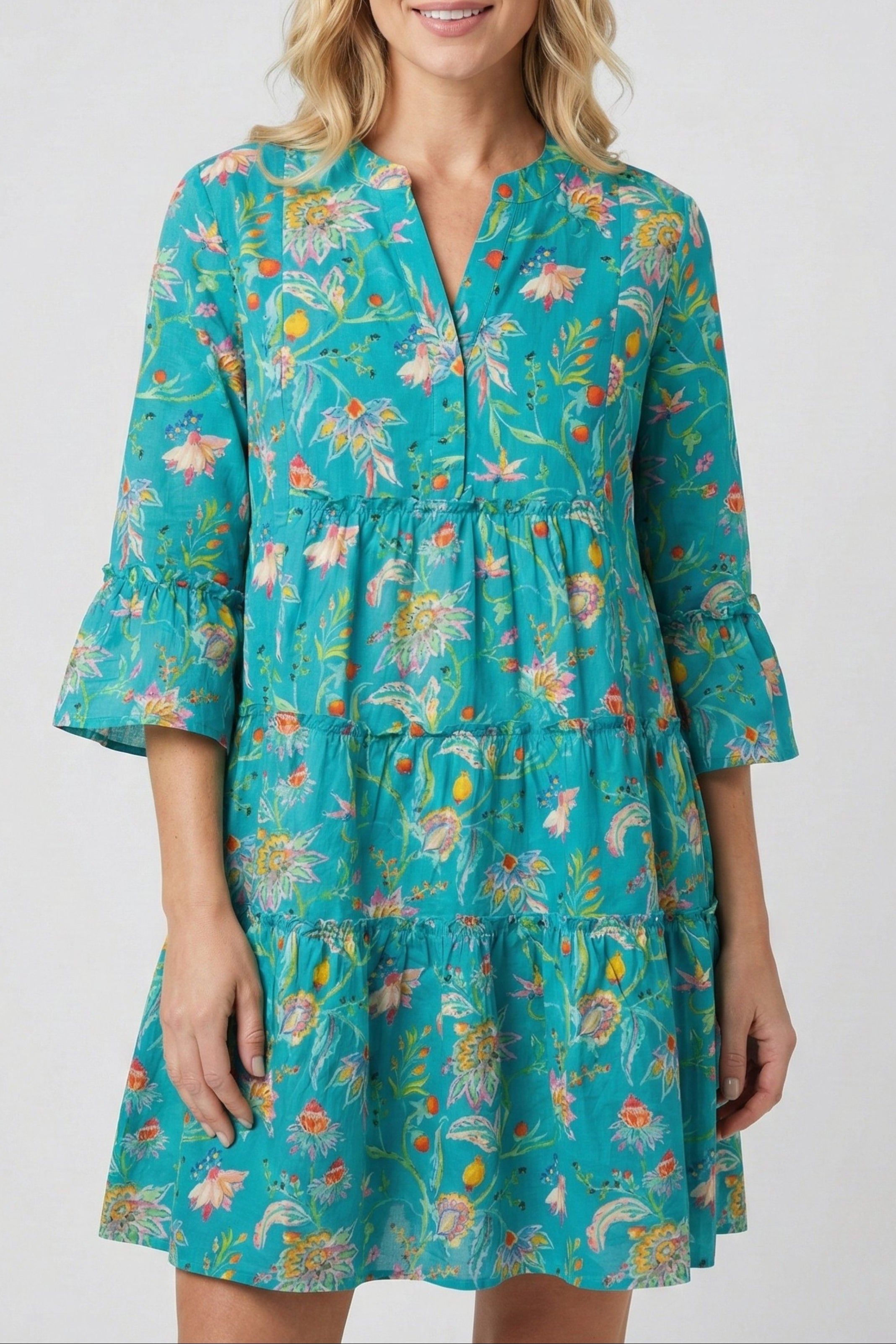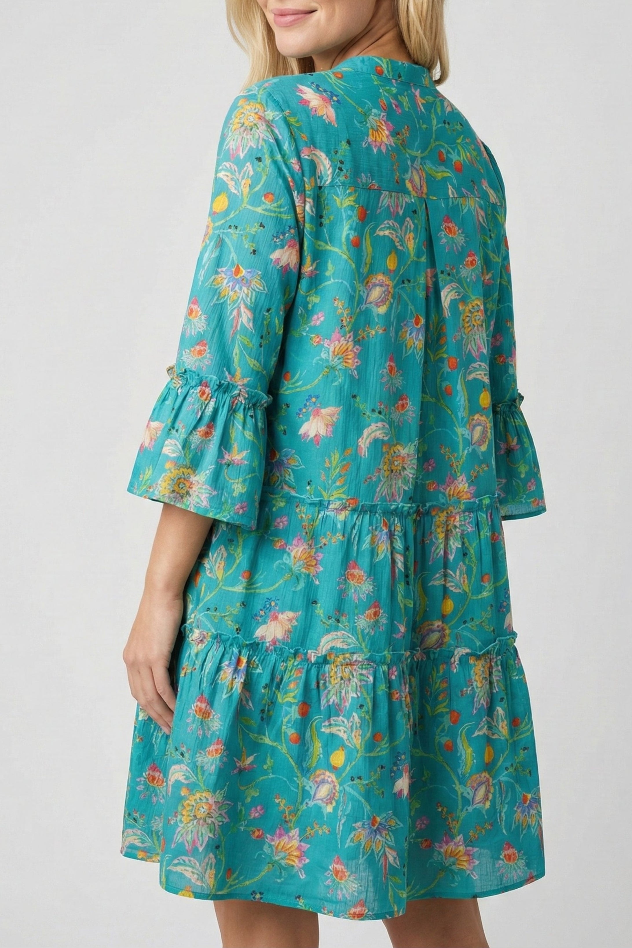 Step into springtime elegance with our Tiered Tunic Dress with Flounce Sleeve! Embrace the season's freshness and flair with this flowy, feminine silhouette. The tiered design adds playful movement, while the flounce sleeves exude a touch of romance. Whether you're attending a garden soiree or enjoying a sunny brunch, this dress promises to turn heads and capture the essence of the season's blossoming beauty.