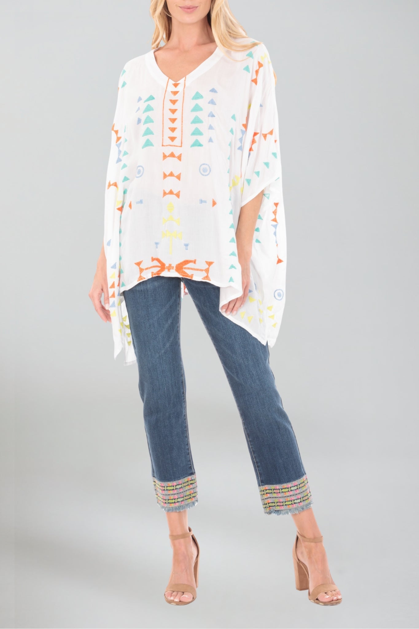 Our V-neck Poncho Tunic is a modern twist on a classic, a tunic featuring a stylish body and a stunning, detailed embroidery pattern. Curating an effortless look while maintaining a feminine vibe is an easy feat with this tunic. Pair it over fitted slacks for a stylish, understated outfit, or add your favorite pair of skinny jeans to create a casual look.