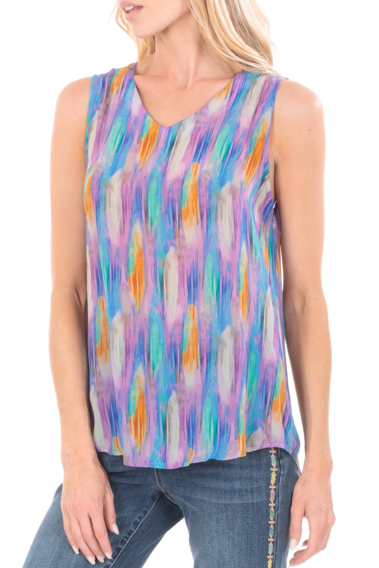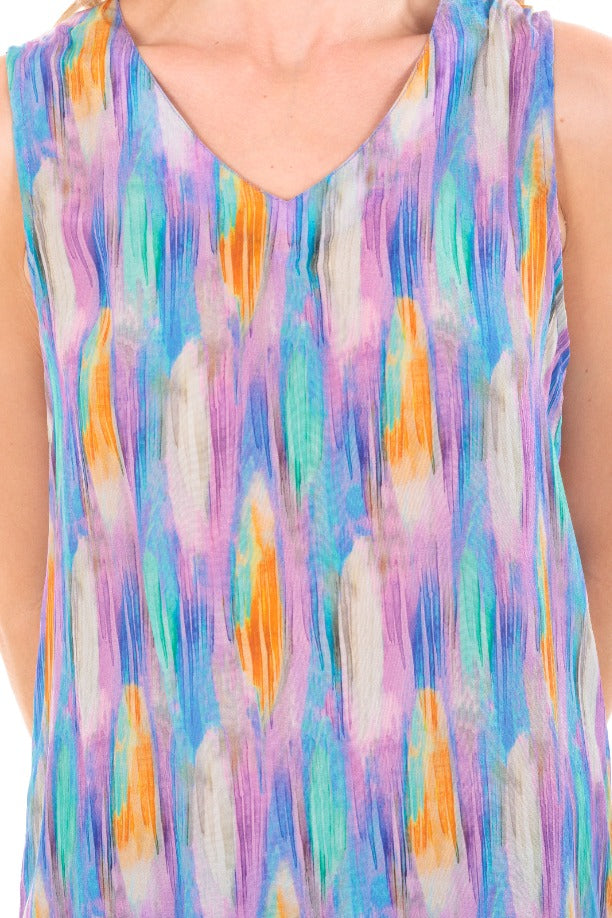 The deep V-neck keeps things cool and flirty, while the relaxed fit drapes beautifully for effortless style. Whether you're crushing weekend vibes or bringing the party to brunch, this colorful tank top is your ticket to a summer full of sunshine and compliments!