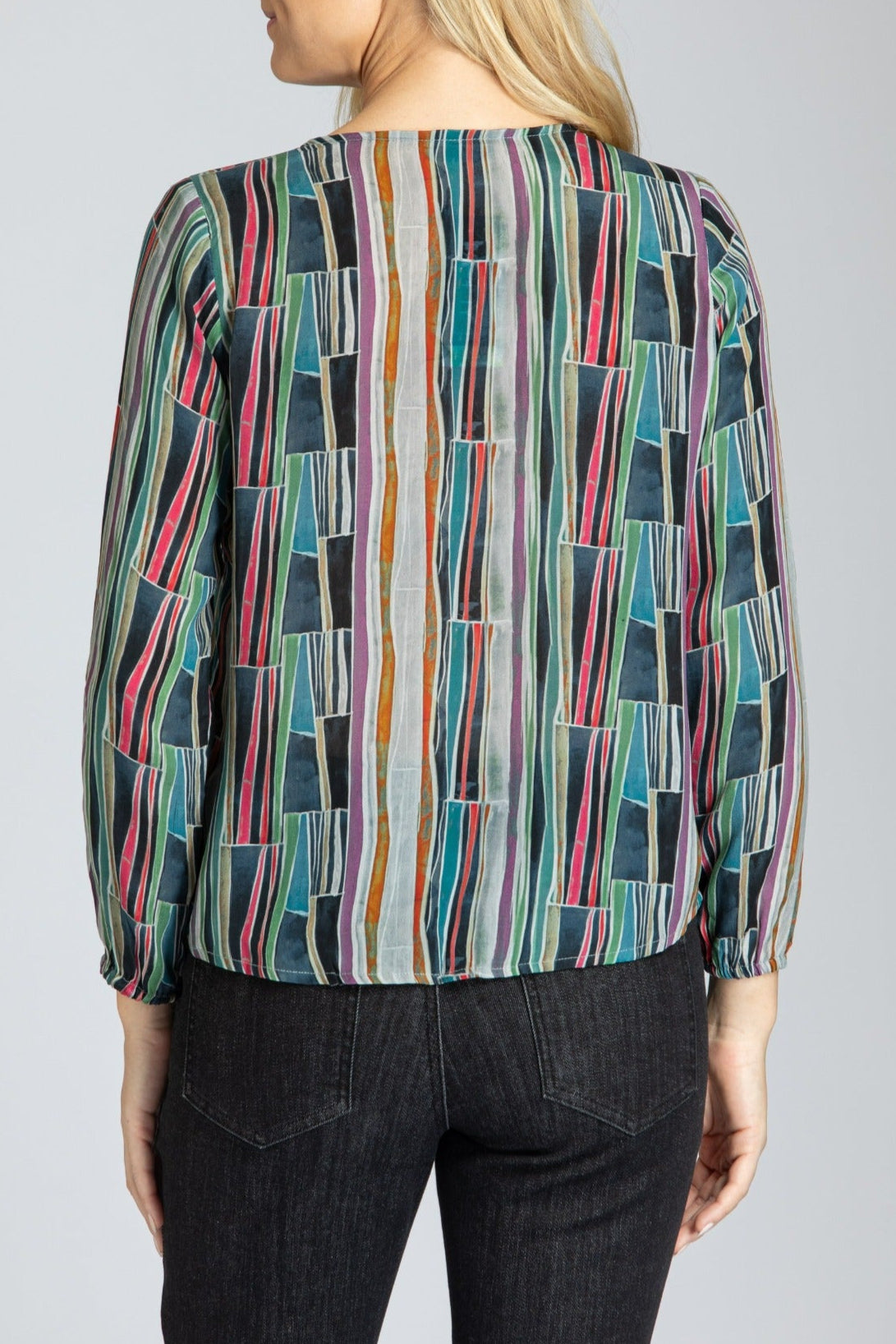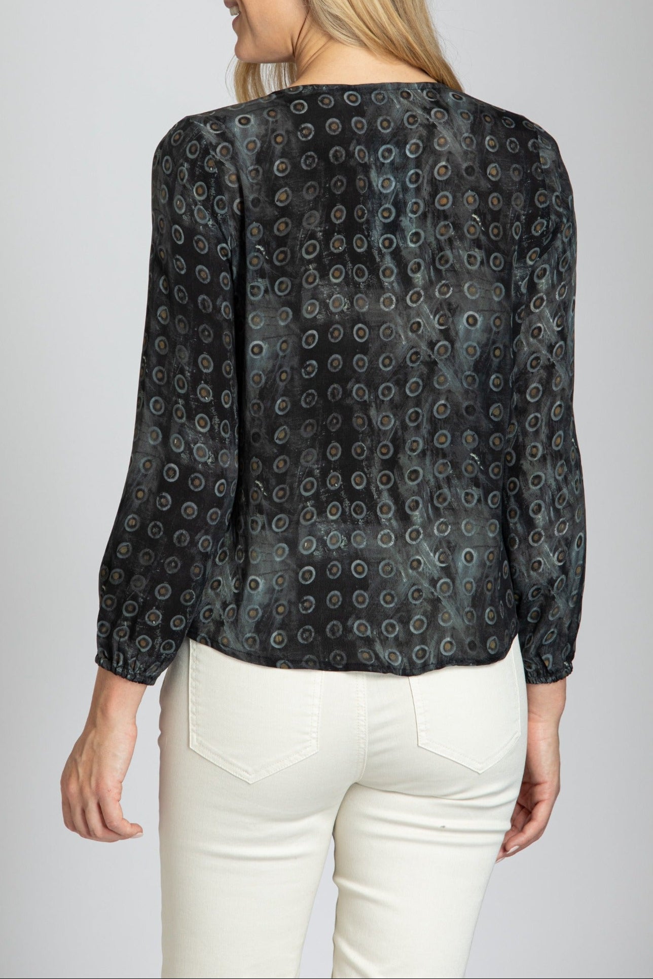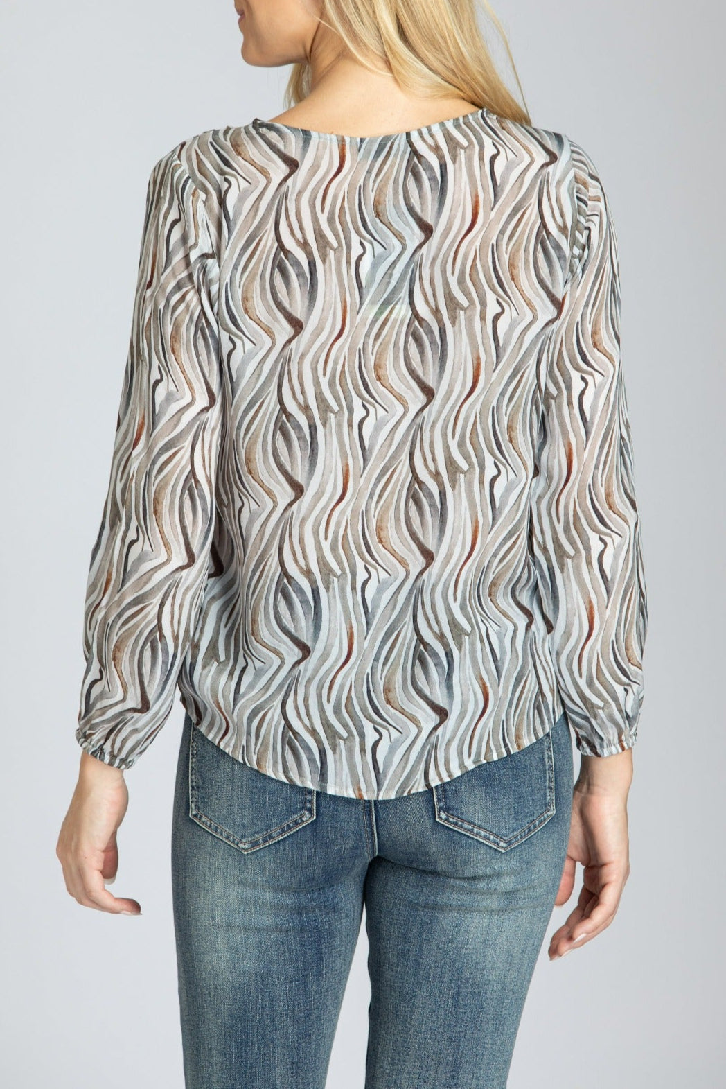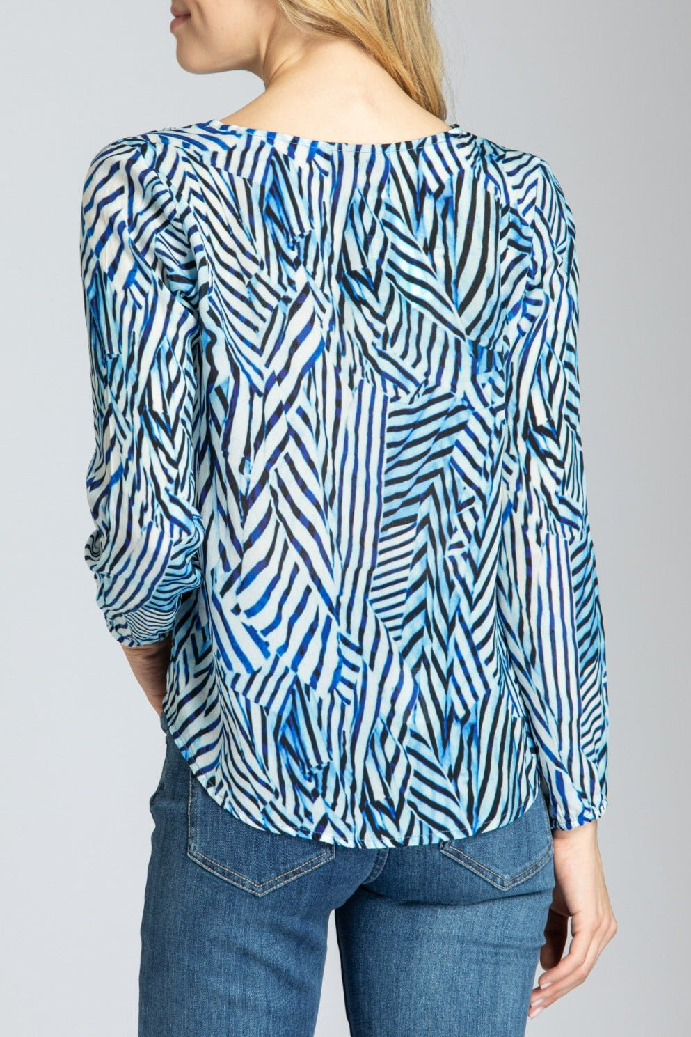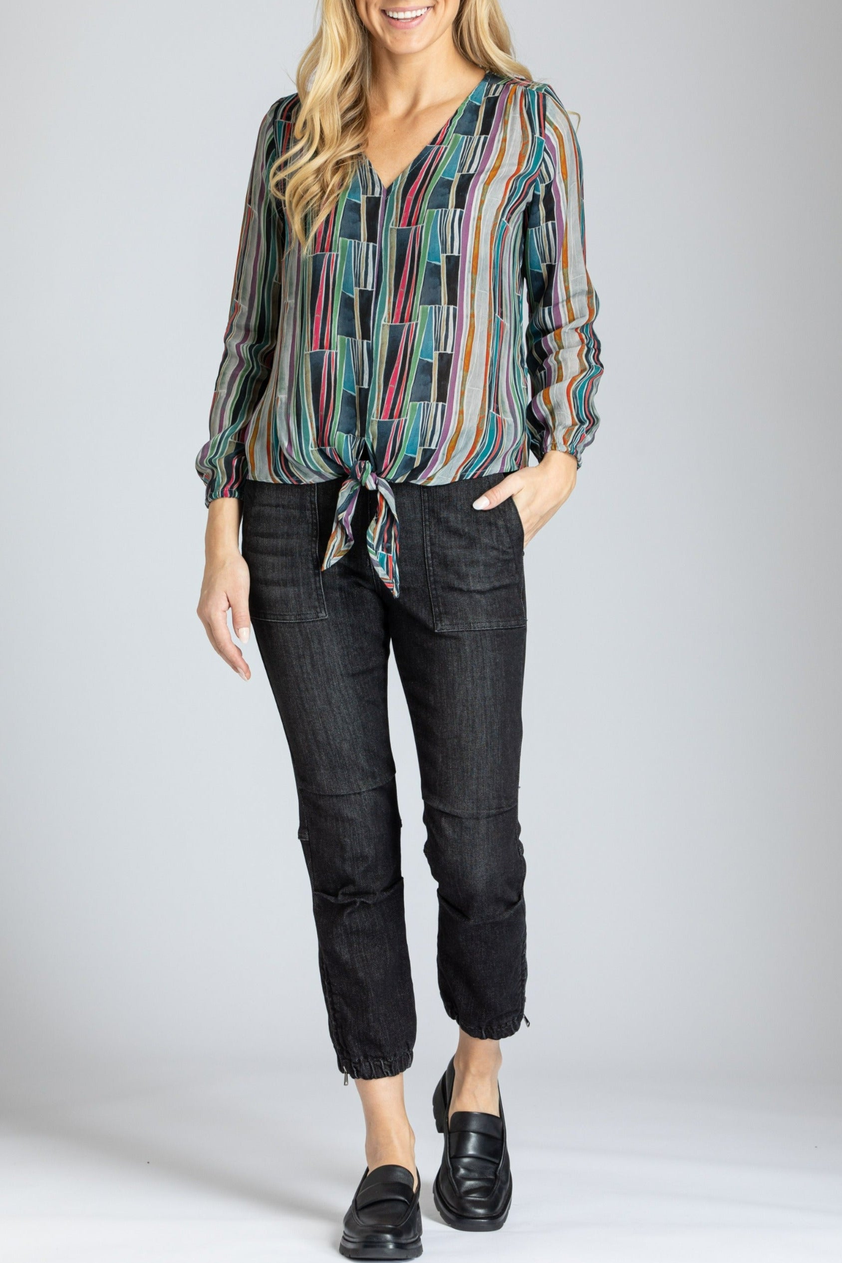 This versatile tie-front creates visual interest with our beautiful prints that draw interest to the front closure. The button down look and v-neck help create a flattering silhouette. This top is a timeless piece that will look chic with a pair of skinny jeans, but you can also dress it down with shorts.