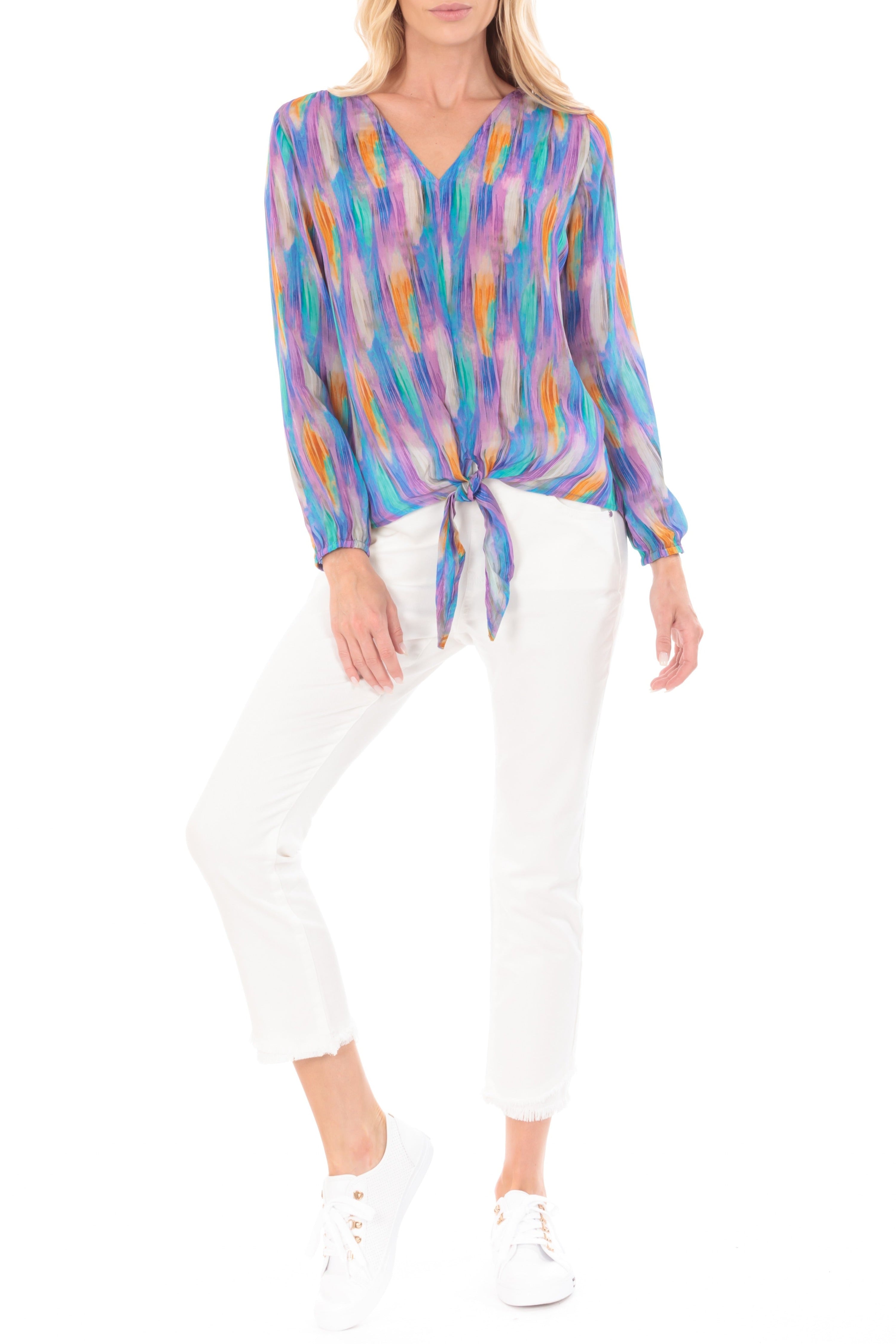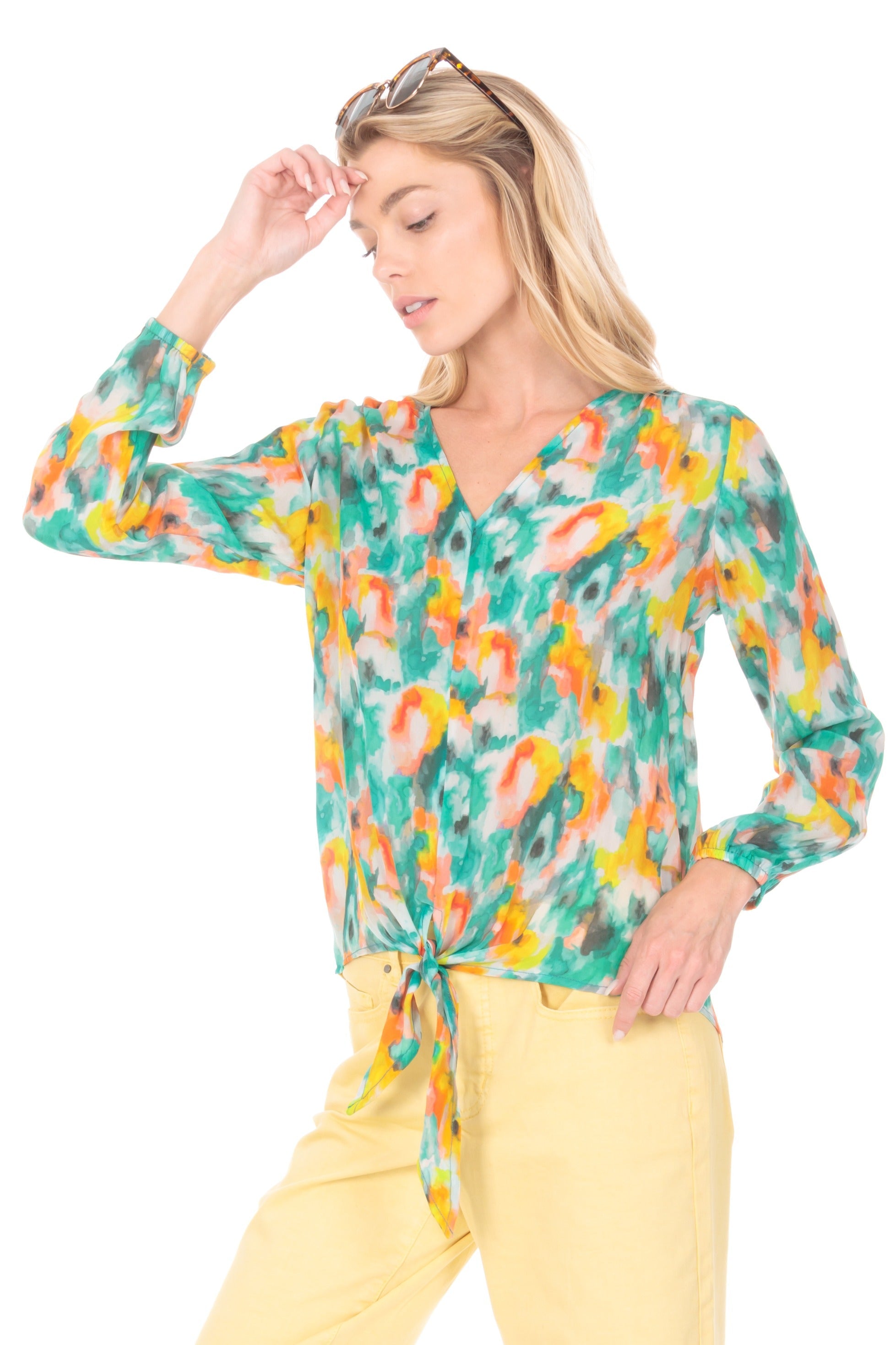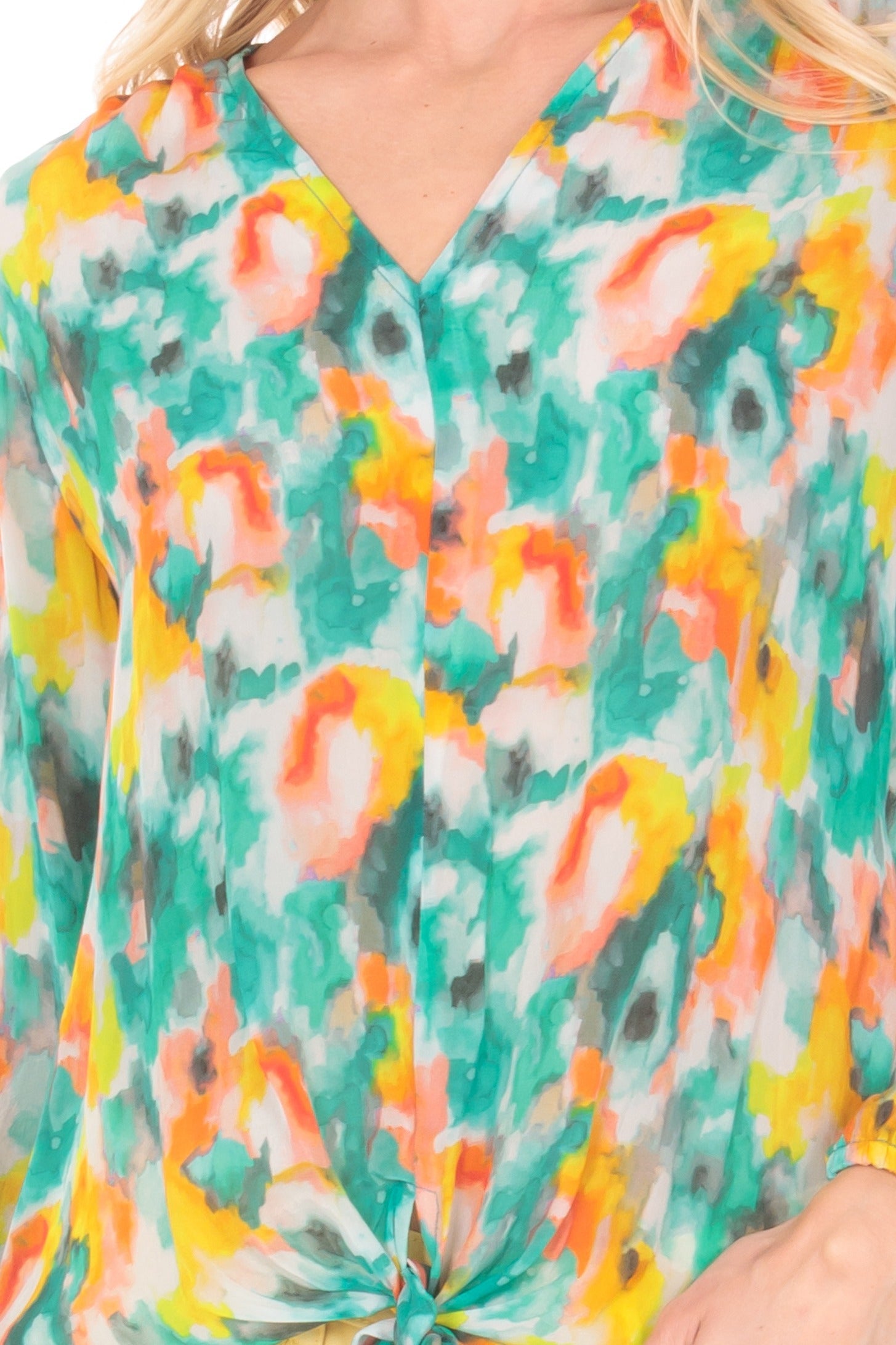 - V-Neck tie-front top.