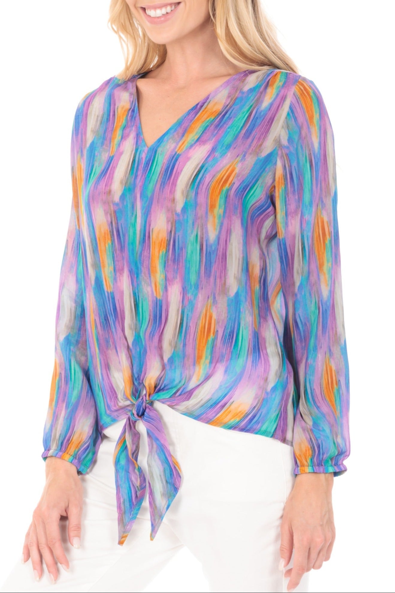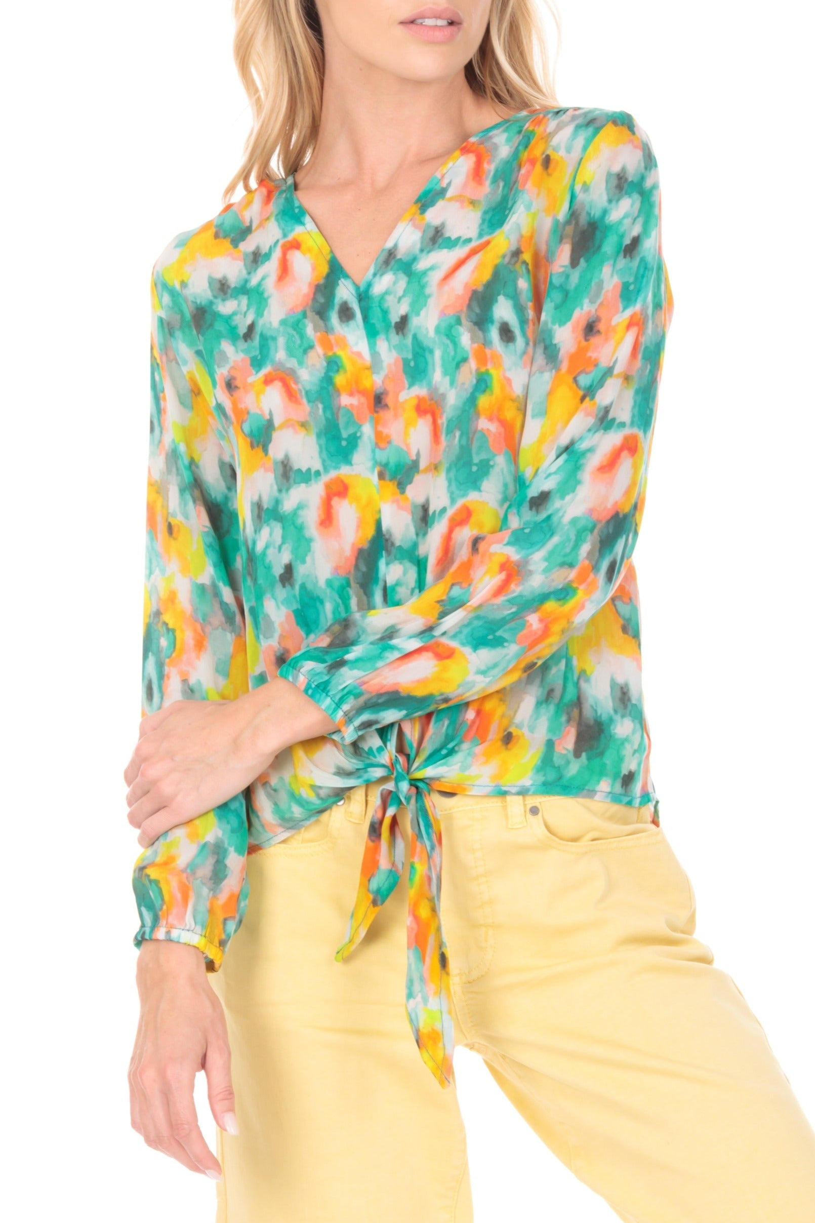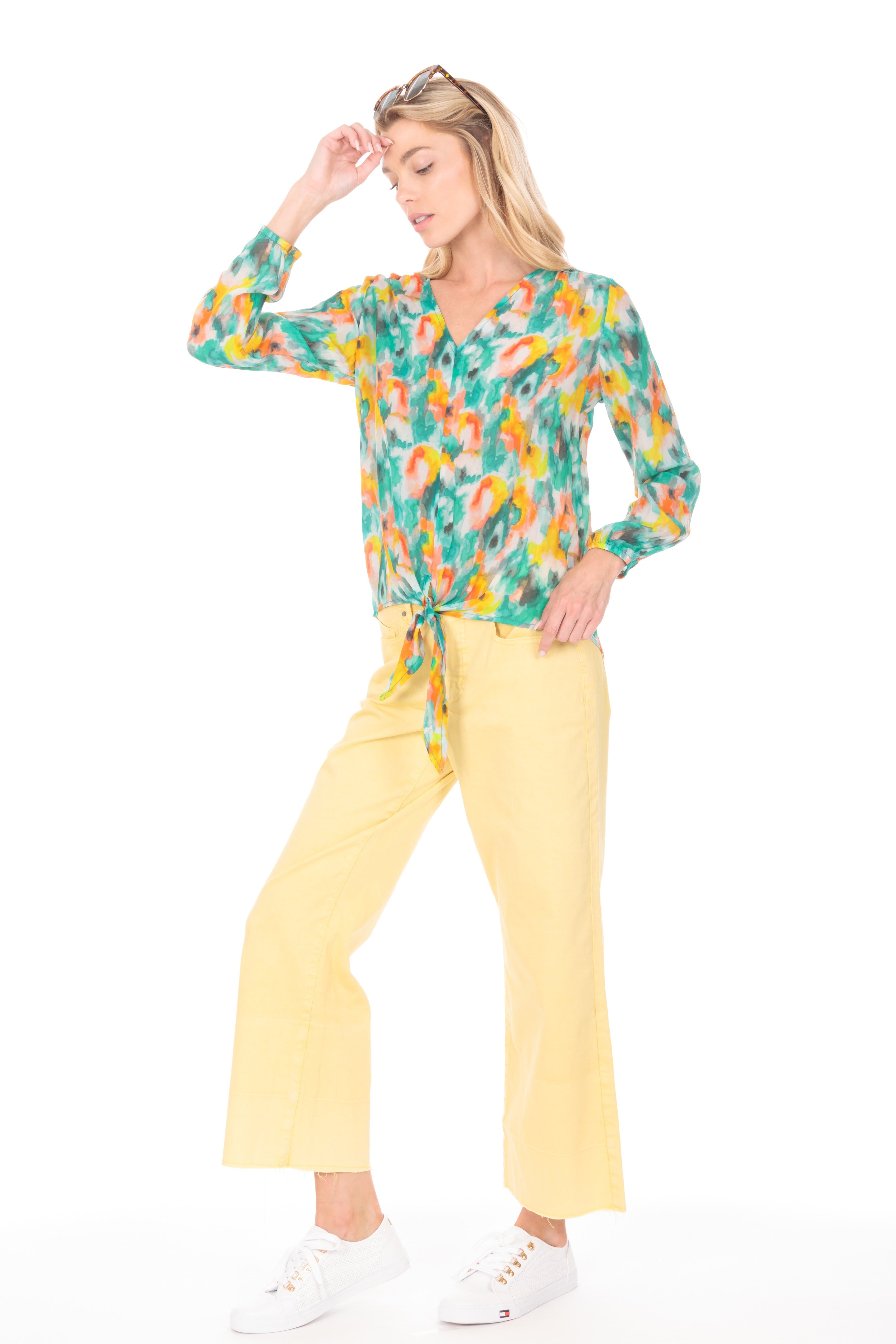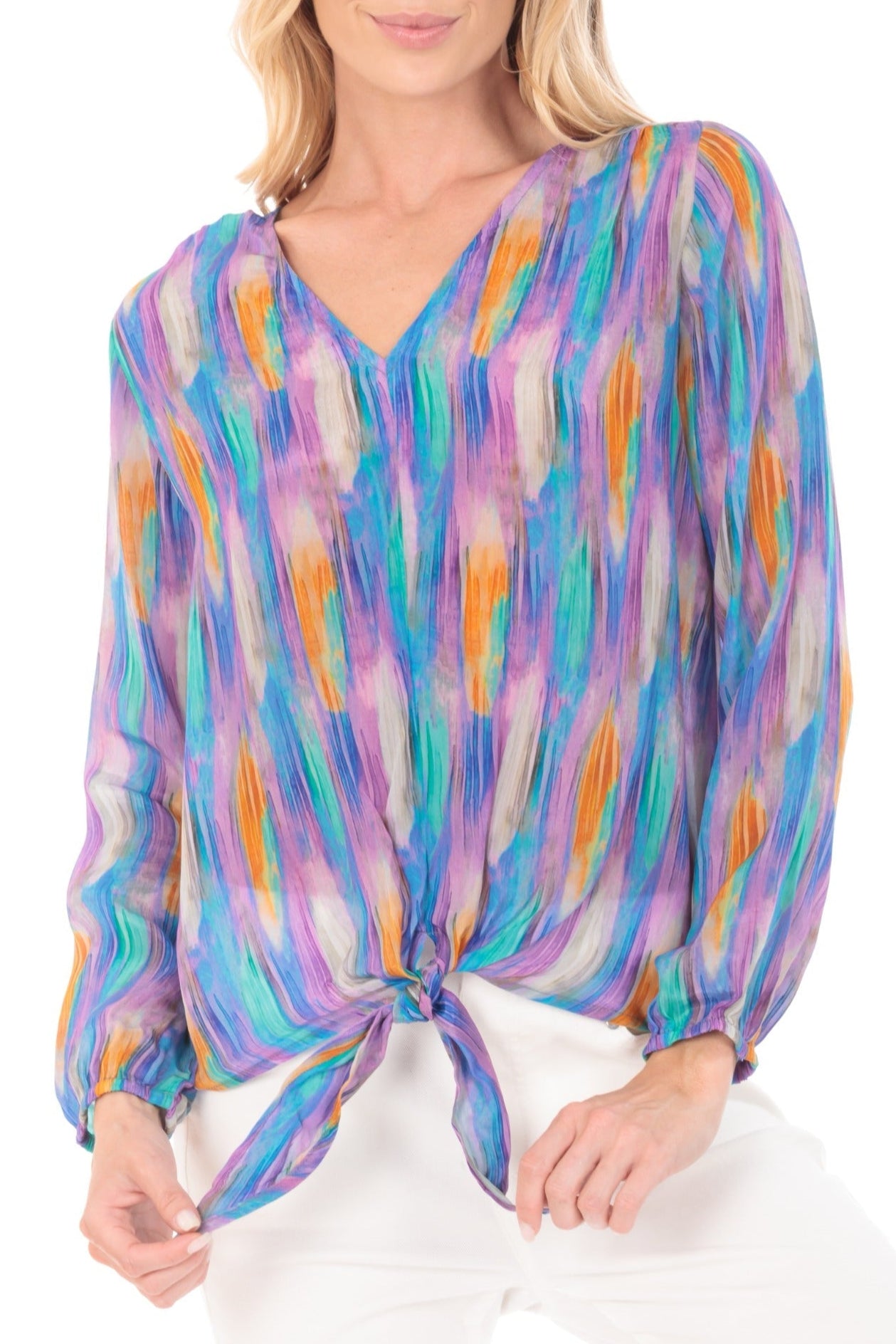 - V-Neck tie-front top.