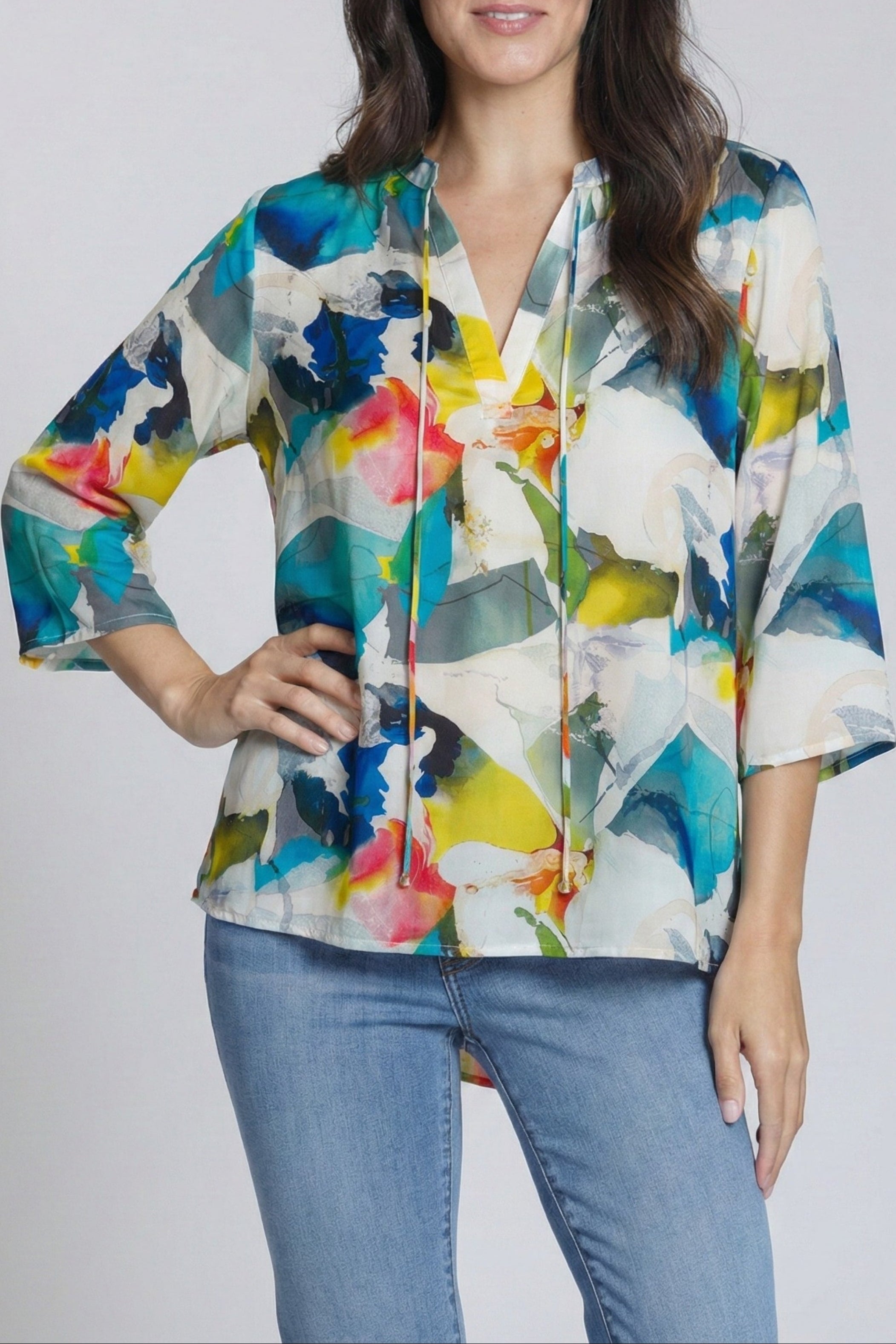 Add some style statement to your everyday look with V-neck printed blouses. From a cupro & viscose blend. This printed top with playful tassel details at the neckline. Super lightweight and beautifully draped, this soft fabric keeps you comfortable and sophisticated every time.