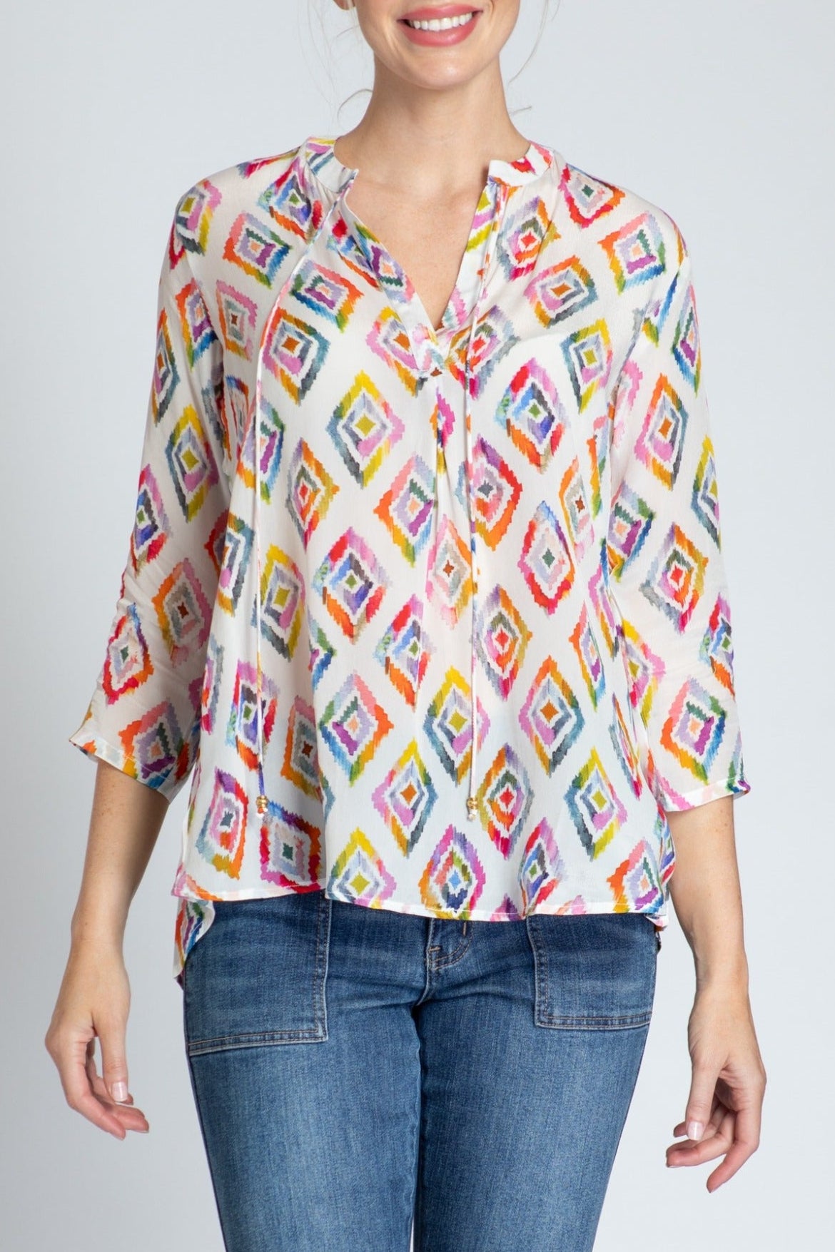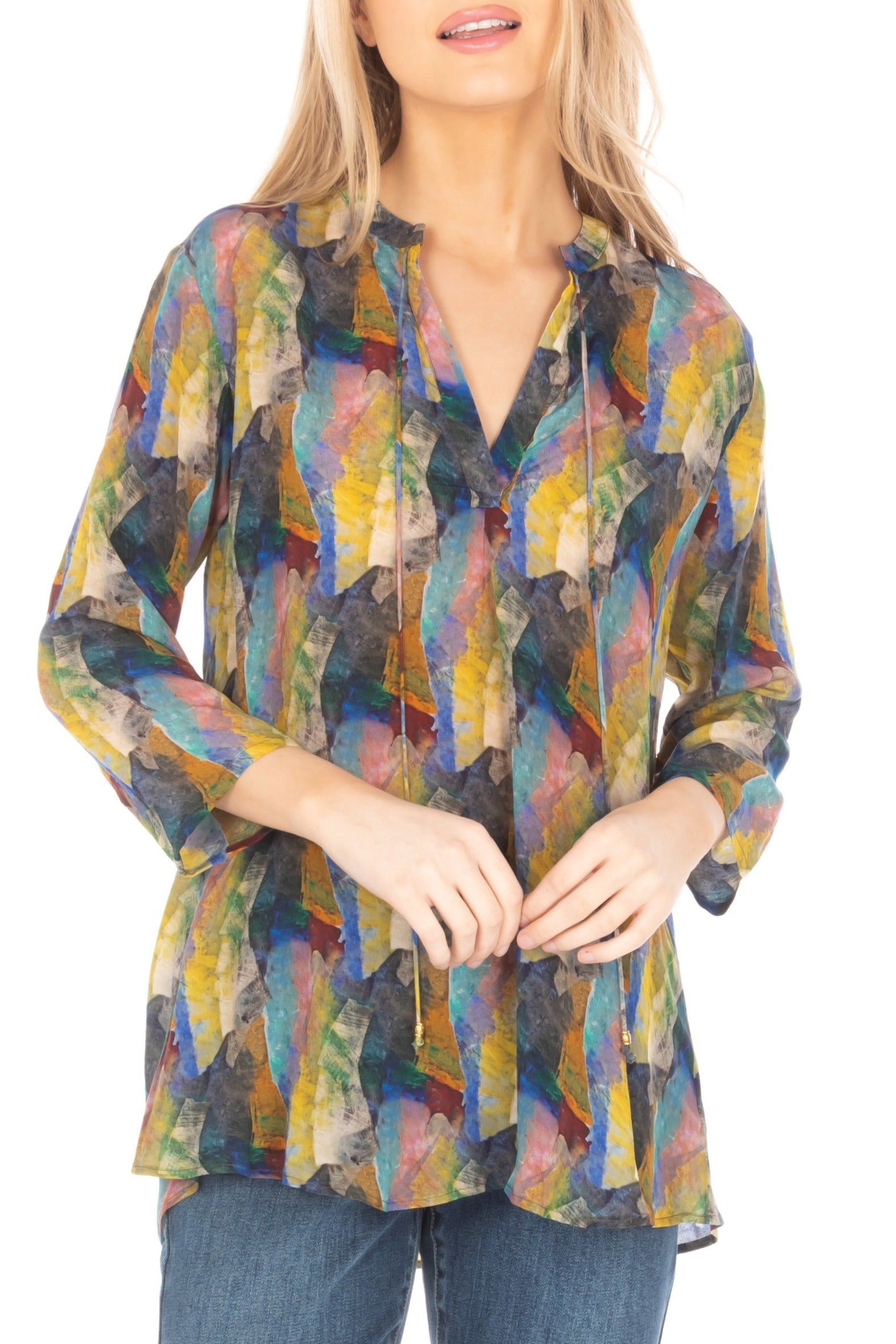 Add some style statement to your everyday look with V-neck printed blouses. From a cupro & viscose blend. This printed top with playful tassel details at the neckline. Super lightweight and beautifully draped, this soft fabric keeps you comfortable and sophisticated every time.