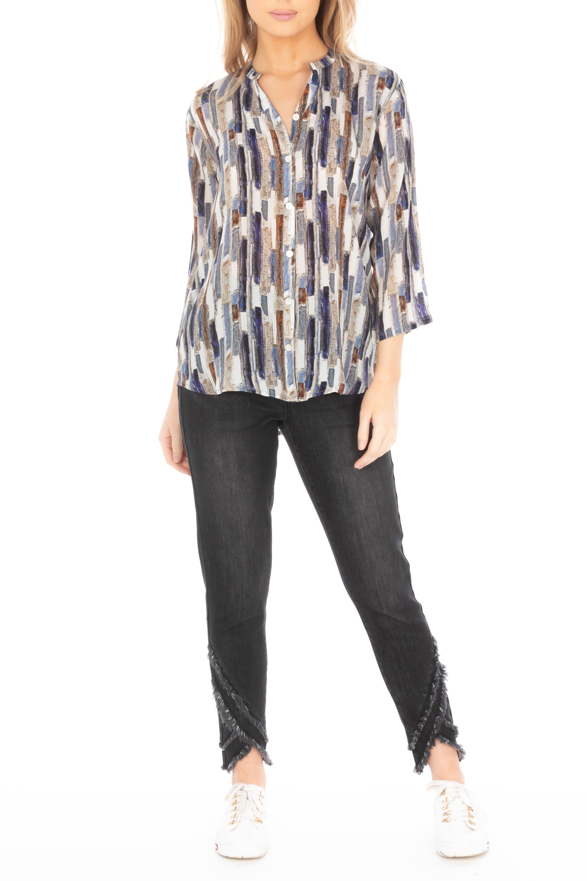 3/4 Sleeve Mandarin Collar Button-up Shirt
