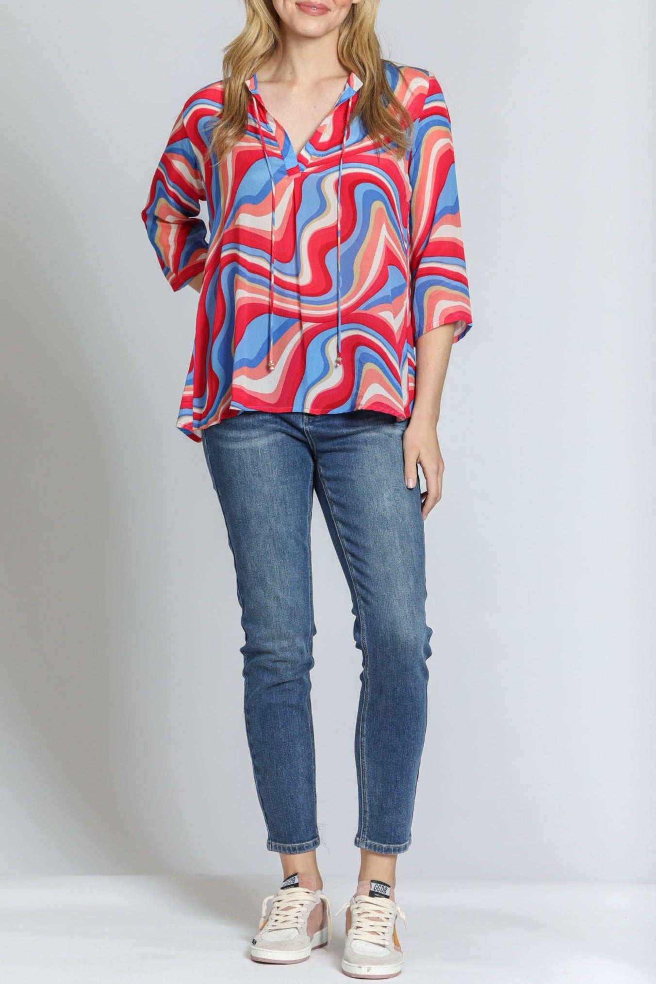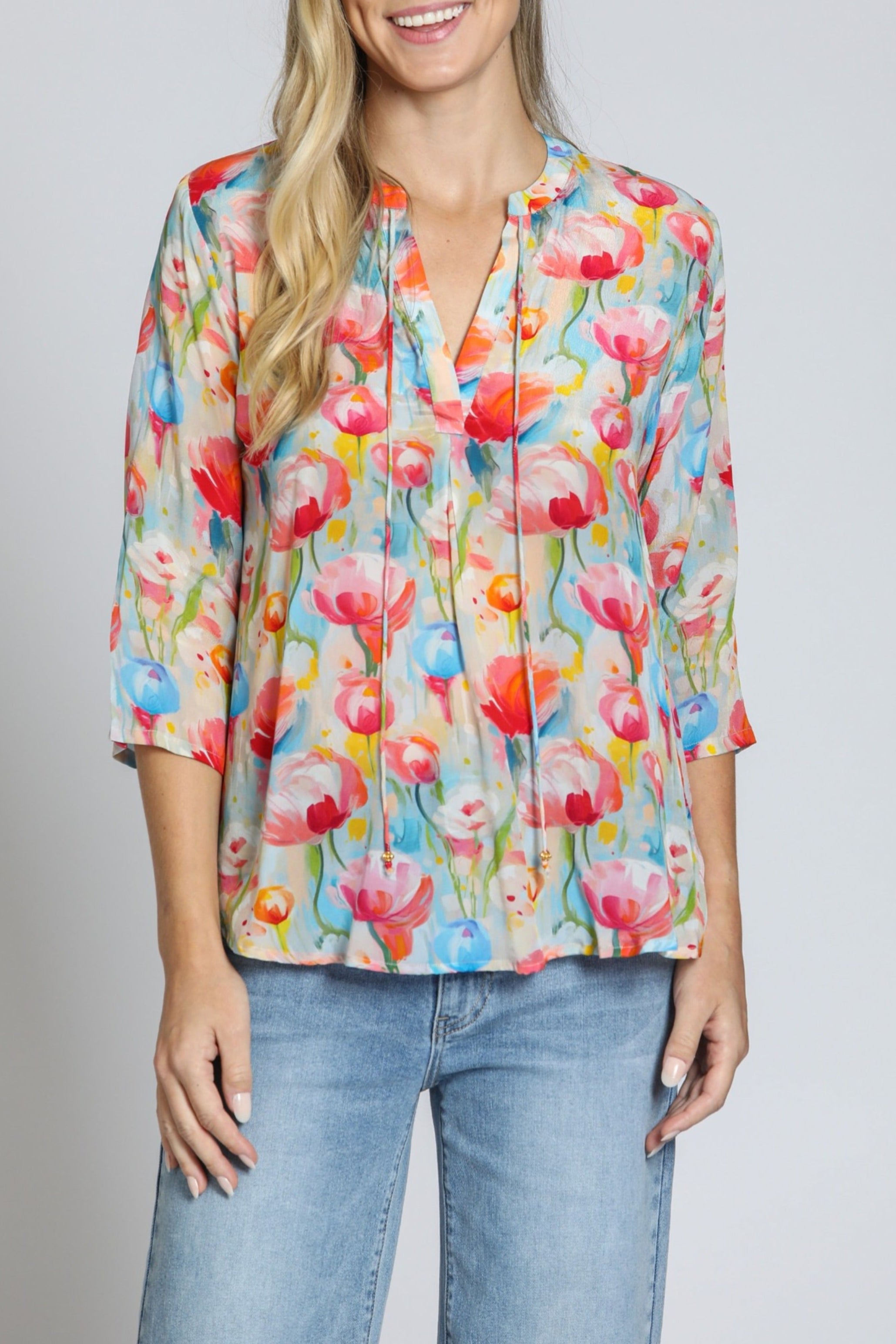 Add some style statement to your everyday look with V-neck printed blouses. From a cupro & viscose blend. This printed top with playful tassel details at the neckline. Super lightweight and beautifully draped, this soft fabric keeps you comfortable and sophisticated every time.