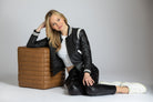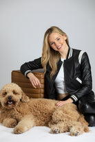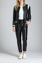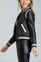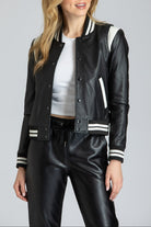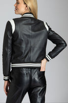 Varsity Leather Jacket With Stripe Rib Trim