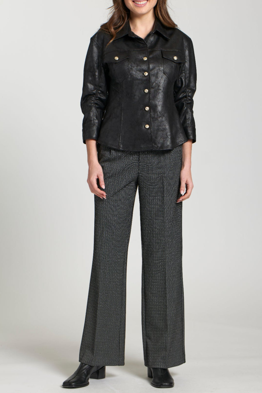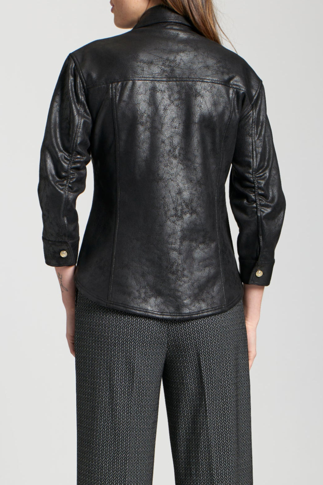 Vegan Leather Shirt Jacket With Crest Buttons