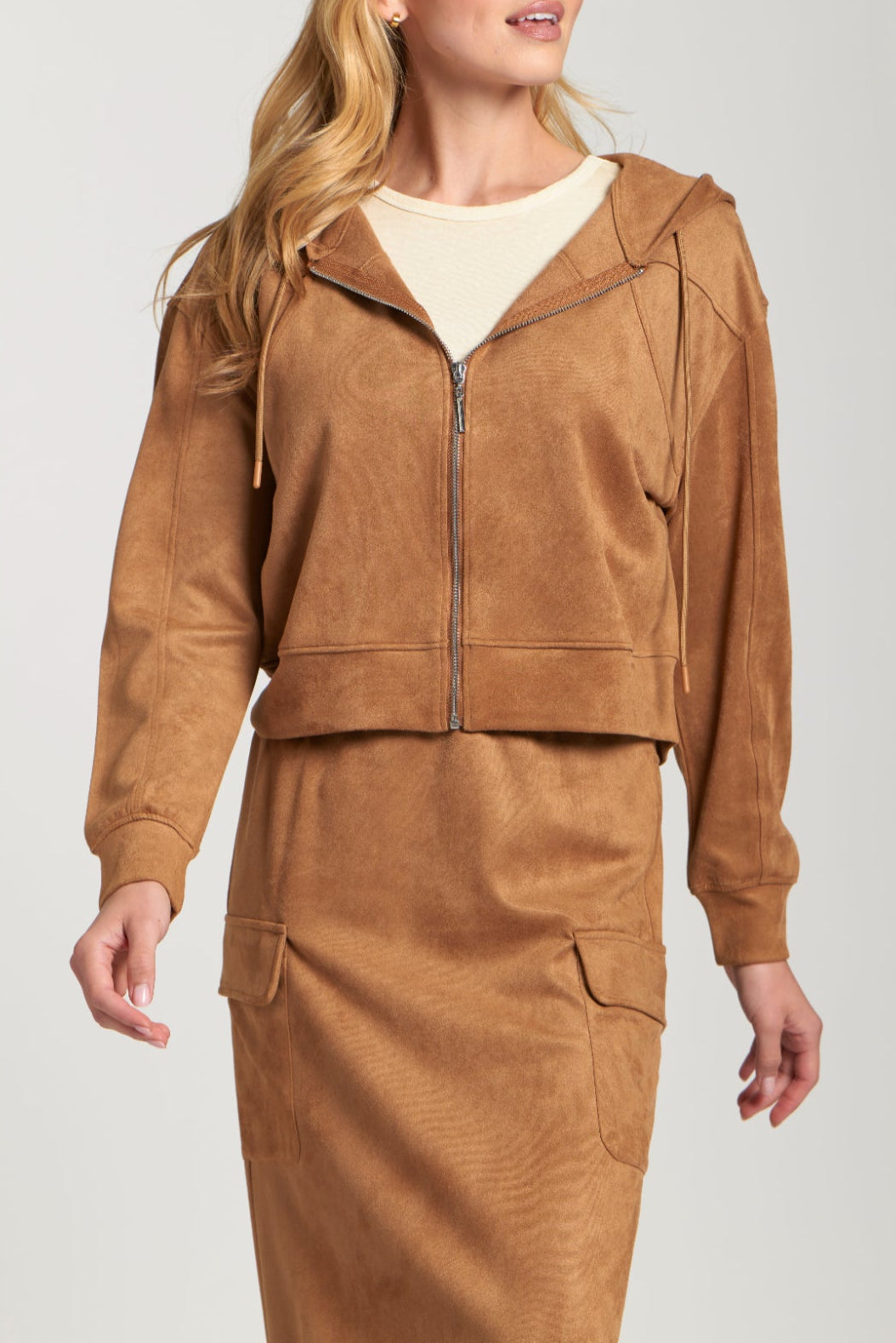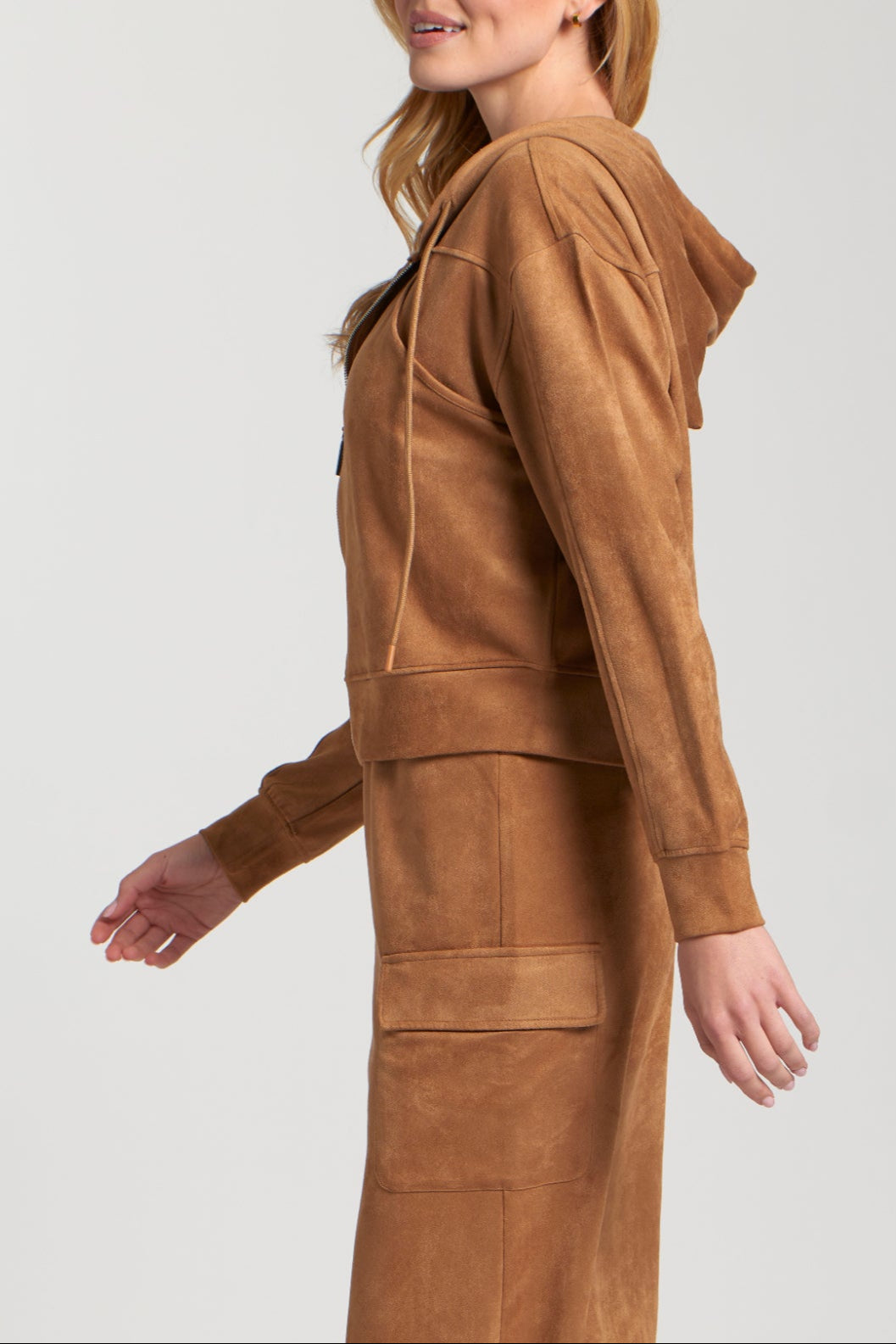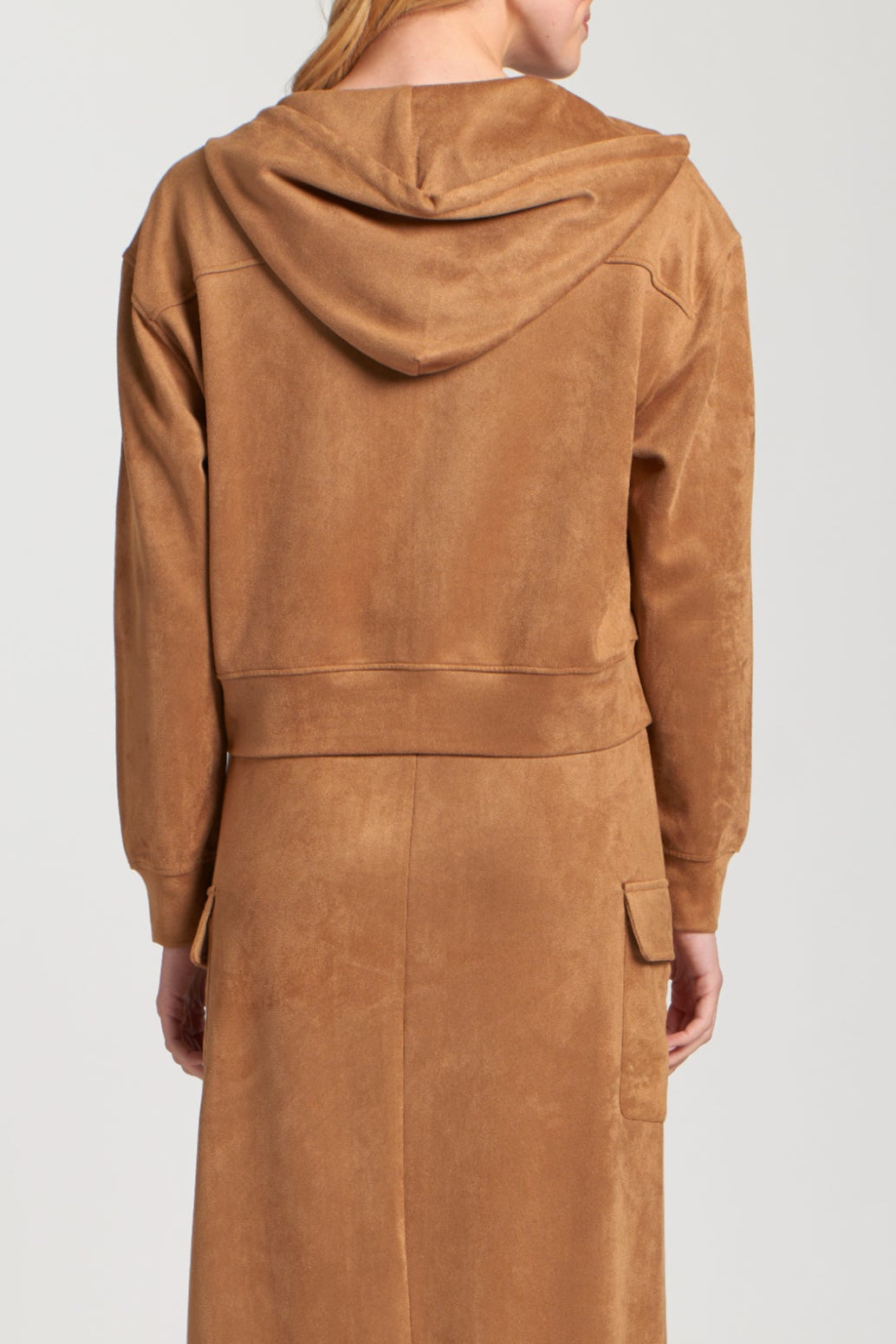Vegan Suede Zip Front Hooded Jacket
