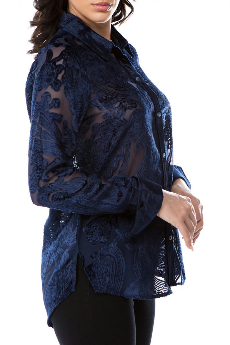 Velvet Burnout Button-Up