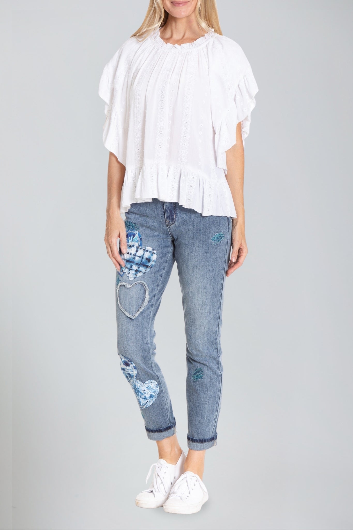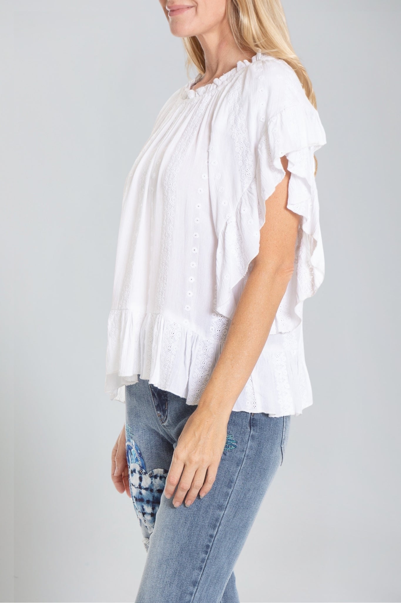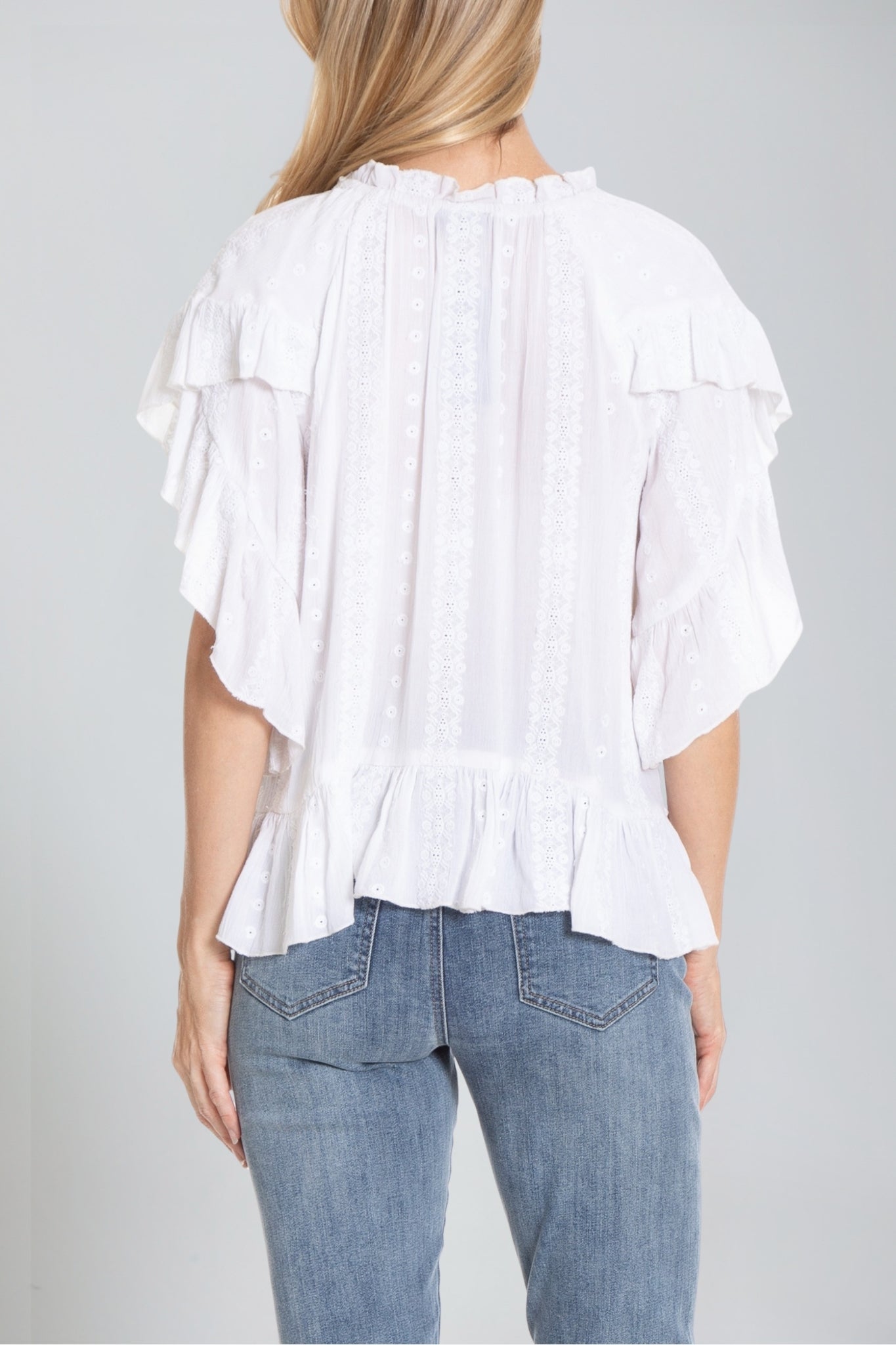 Wear 2-Ways Flounce Sleeve Embroidered Top