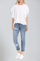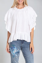 Discover ultimate versatility with this Wear 2-Ways Flounce Sleeve Embroidered Top. Designed to give you styling options, this top can be worn off-shoulder for a flirty, relaxed look or as a classic neckline for a more refined style. The flounce sleeves add a touch of drama, while the intricate embroidery lends a feminine and artistic flair. Made from soft, breathable fabric, this top is as comfortable as it is stylish. Perfect for pairing with jeans, skirts, or shorts, it’s ideal for both casual outings and special occasions. Elevate your wardrobe with this unique, multi-functional piece.