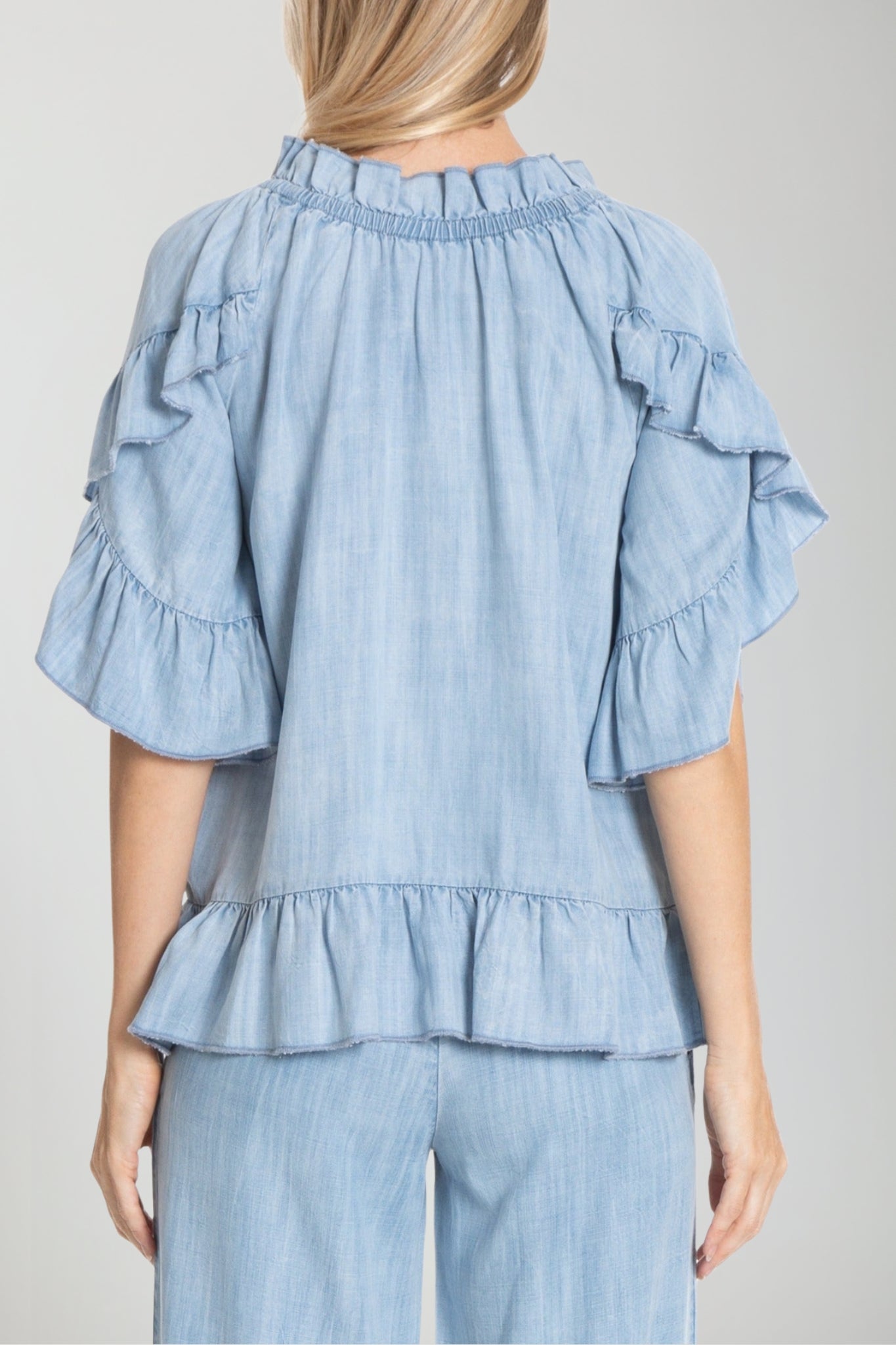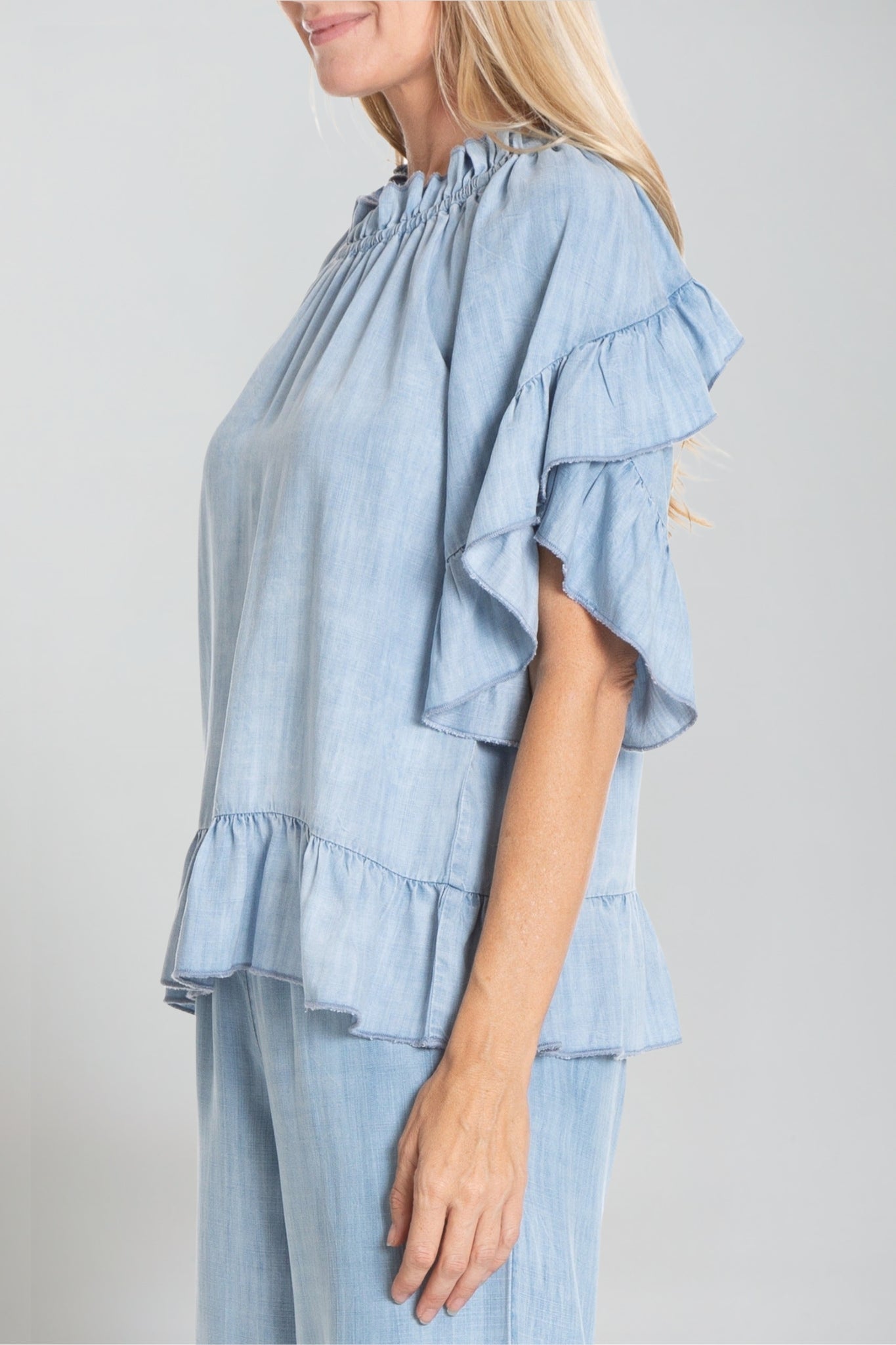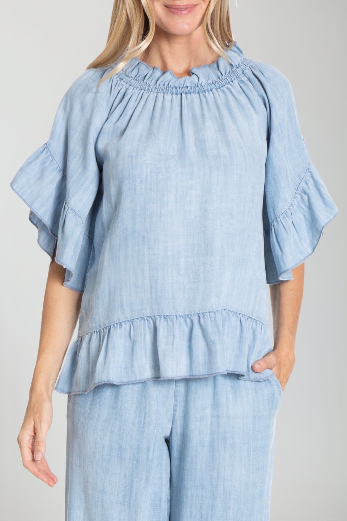 The "Wear 2-Ways Flounce Sleeve Top" is a versatile and stylish piece that offers two chic looks in one. This top features flounce sleeves that add a feminine, playful touch, while the unique design allows you to wear it in two different ways—front or back, giving you flexibility for different outfits. Crafted from soft, breathable fabric, this top is perfect for both casual and dressier occasions. Whether paired with jeans, skirts, or trousers, it offers endless styling possibilities and effortless elegance.
