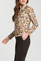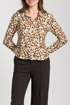 Inject Western flair into your everyday style with this chic Printed Western Shirt, a versatile button-front top featuring a detailed all-over motif on a dark background. The tailored silhouette includes a classic pointed collar and two chest flap pockets, giving it an authentic Western feel. Crafted from a comfortable fabric, this shirt offers a smooth drape and a flattering fit, perfect for pairing with denim, or as a statement piece under a blazer for an elevated look. It's a stylish way to embrace a timeless trend with a modern edge.