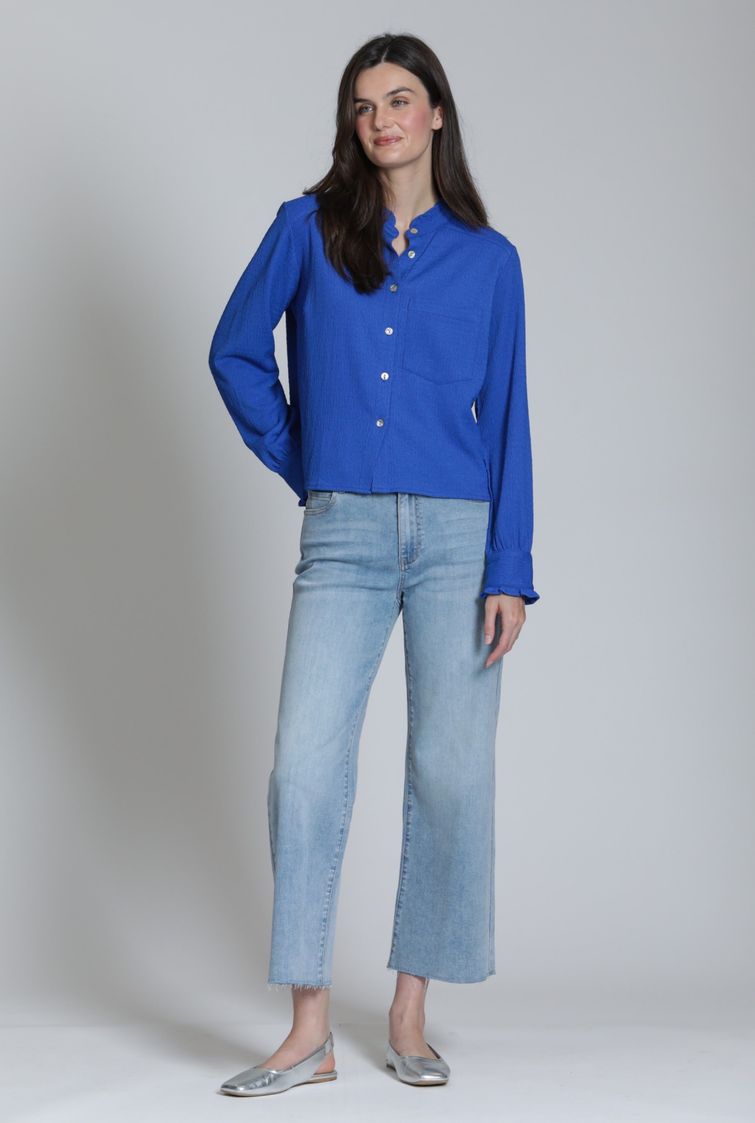 Wide Leg Crop Raw Edge Hem - Light Indigo