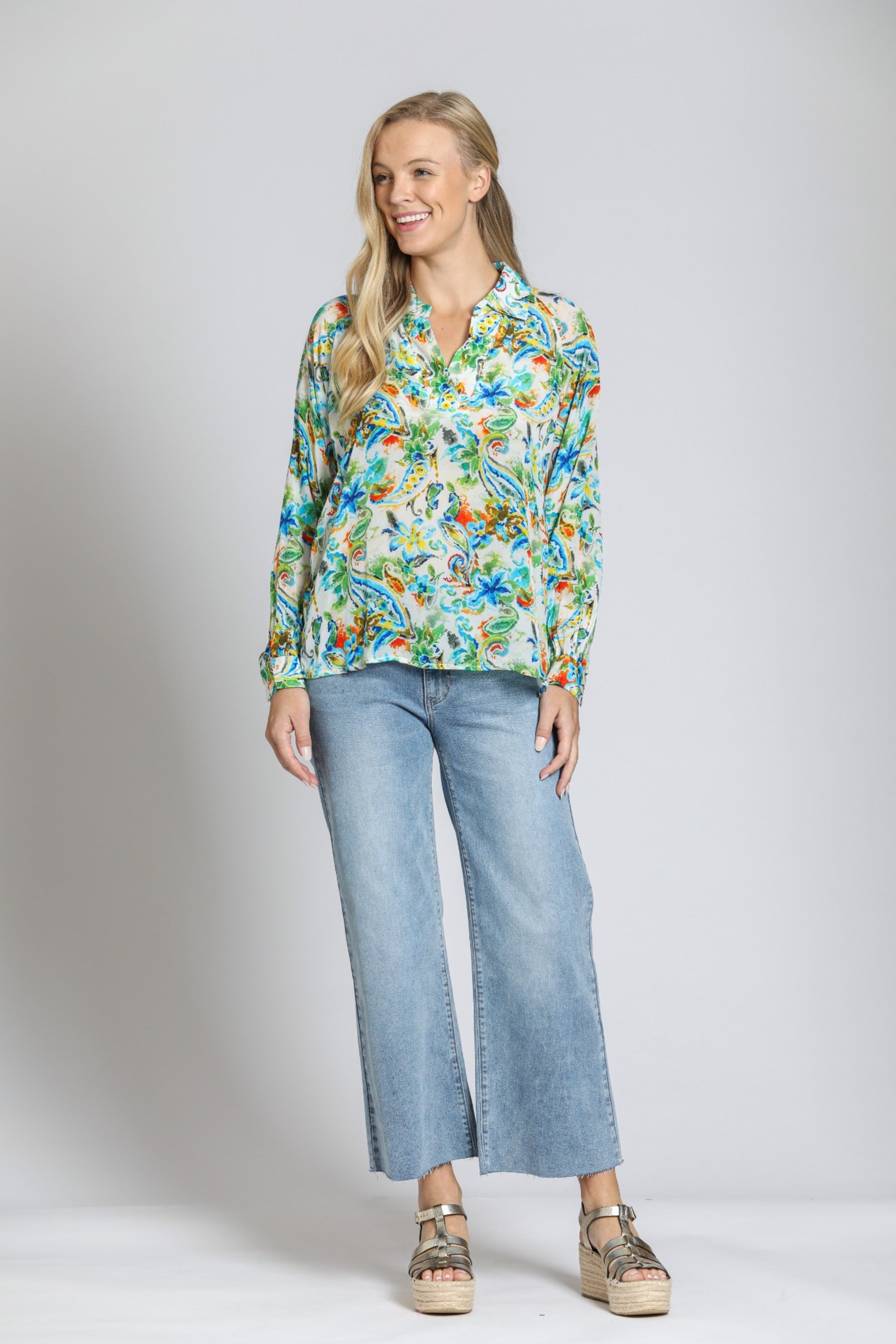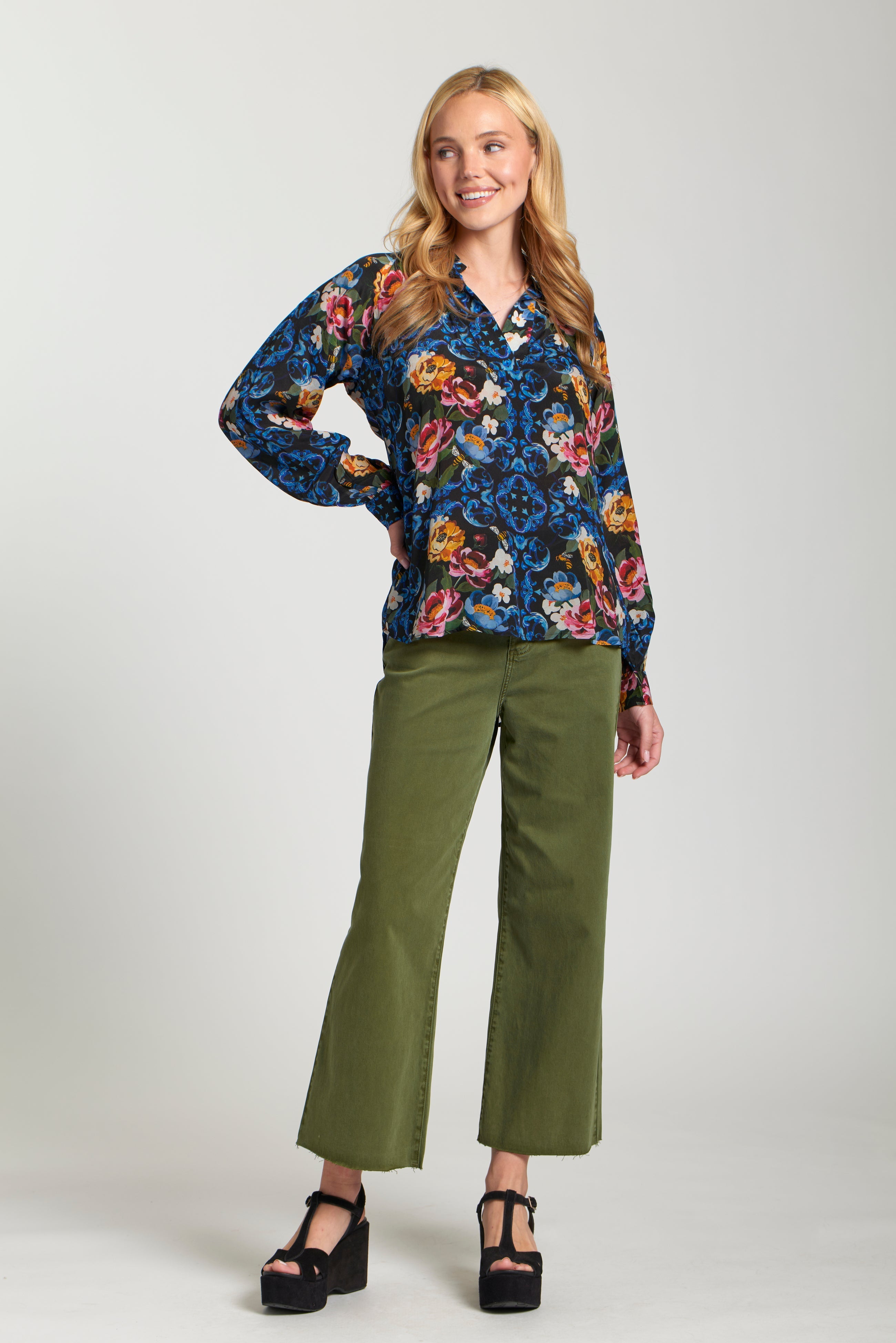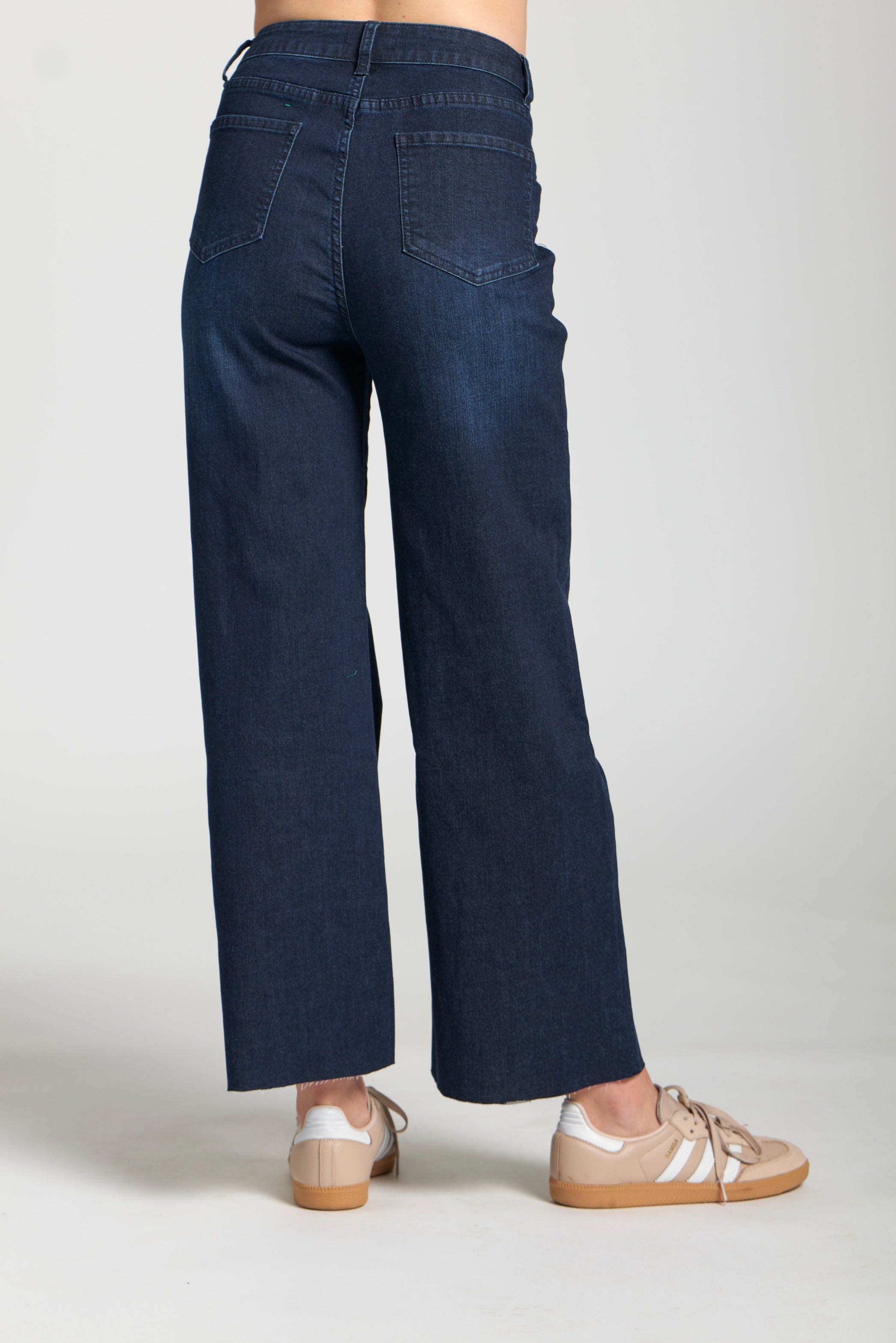 The Silver Chevron Printed Wide Leg Crop Jean blends contemporary style with everyday comfort. Featuring a striking metallic chevron print, a flattering wide-leg silhouette, and a cropped length, these jeans add a touch of modern glamour. Perfect for pairing with anything from sleek blouses to casual tees.