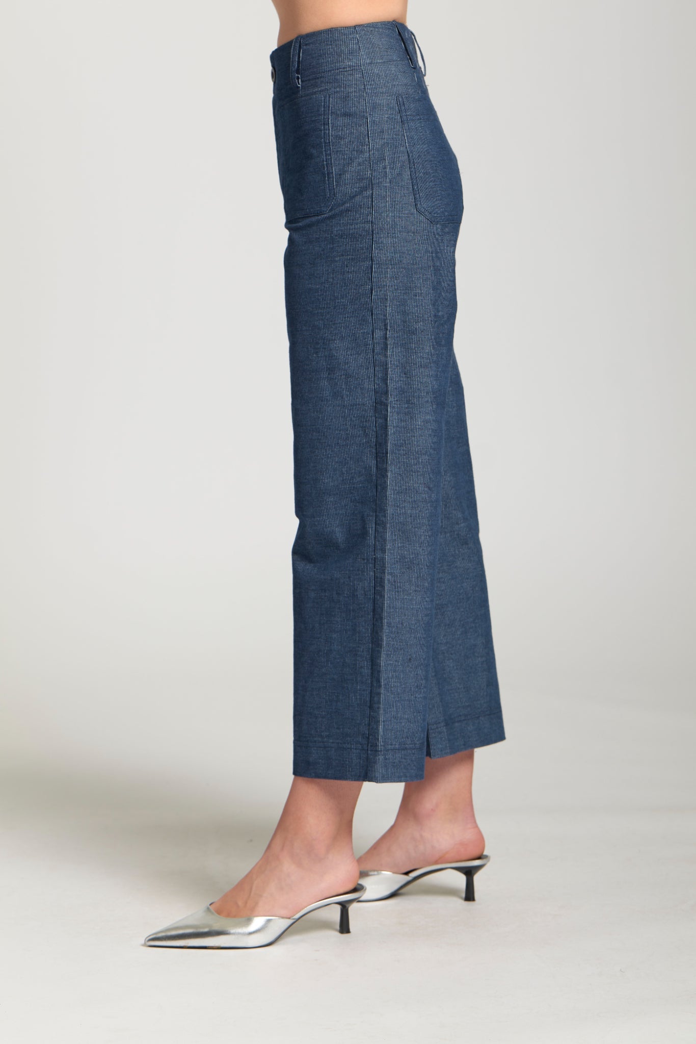 Step into comfort and sophistication with these Ponte Cropped Wide Leg Pants. Crafted from a soft, structured ponte knit, these pants feature a clean front with a concealed zip closure for a polished look.