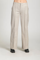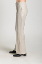 These beige tailored trousers feature a clean straight hemline for a polished and professional finish. The pocket style includes discreet side seam pockets located at the hips, adding functionality without disrupting the sleek silhouette. Designed with a zip fly and hook-and-bar closure, these trousers ensure a secure and smooth front, ideal for formal and office wear.